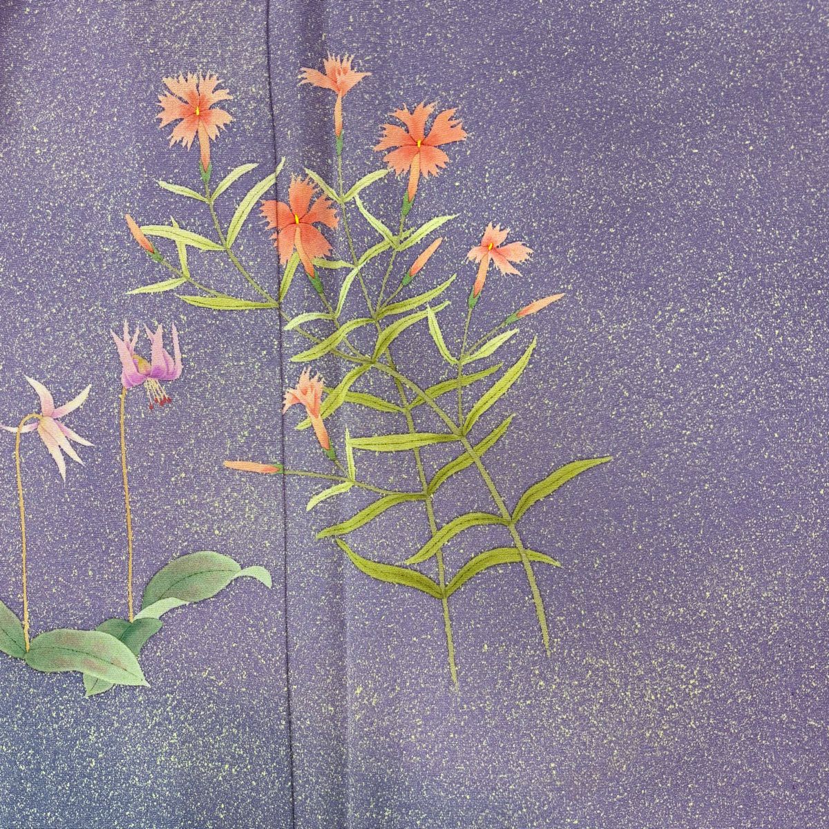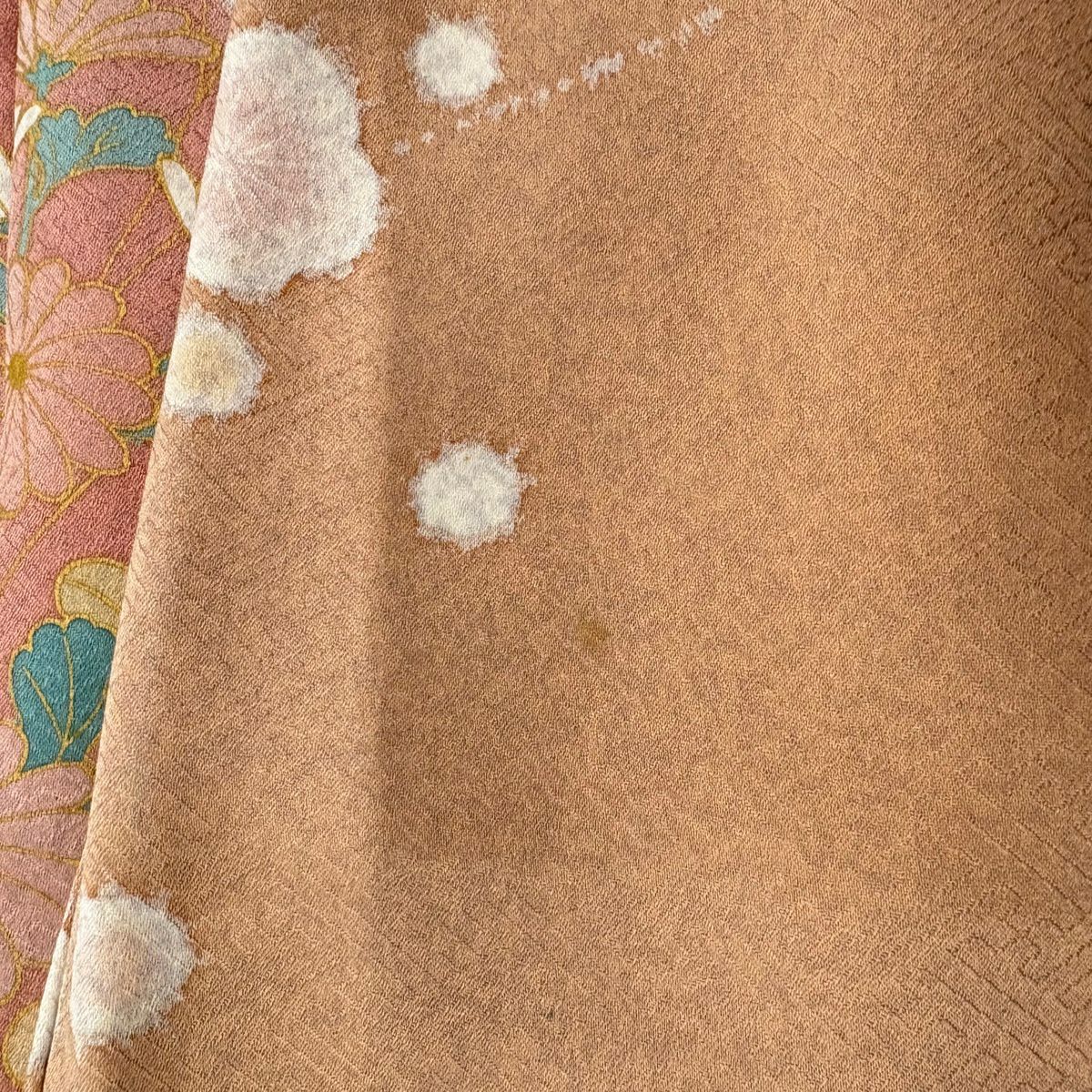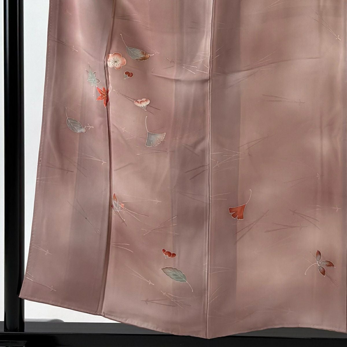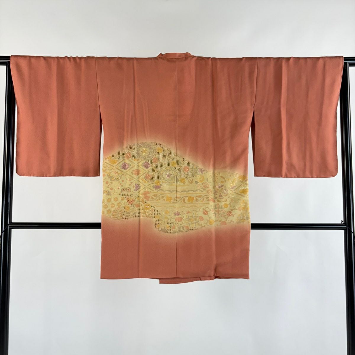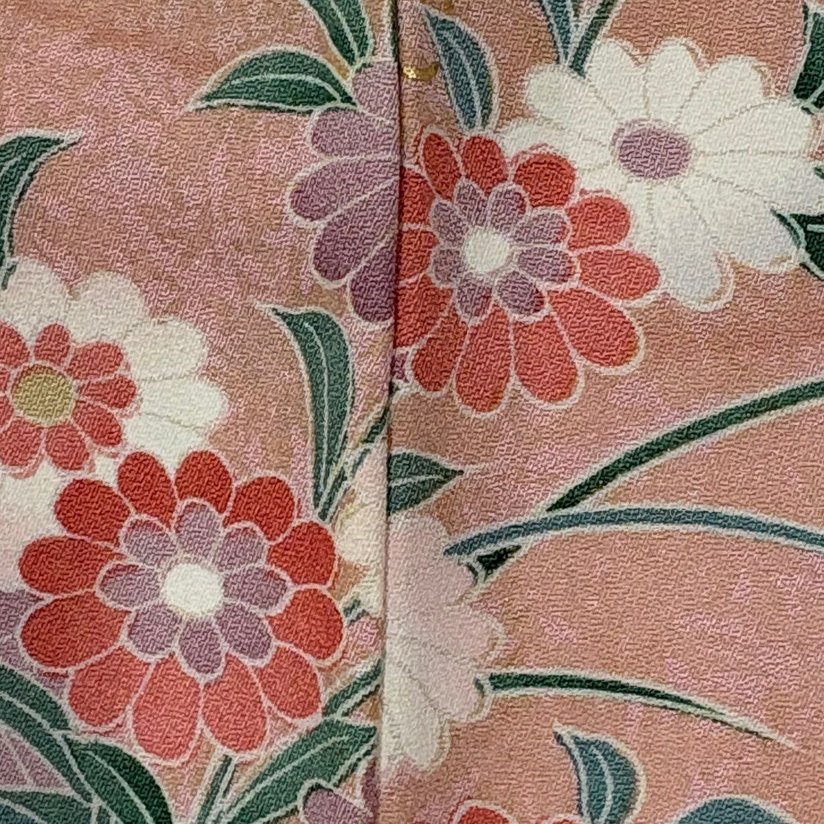 訪問着 身丈163.5cm 裄丈64cm M 袷 草花 道長取り 金彩 ぼかし サーモンピンク 正絹 秀品