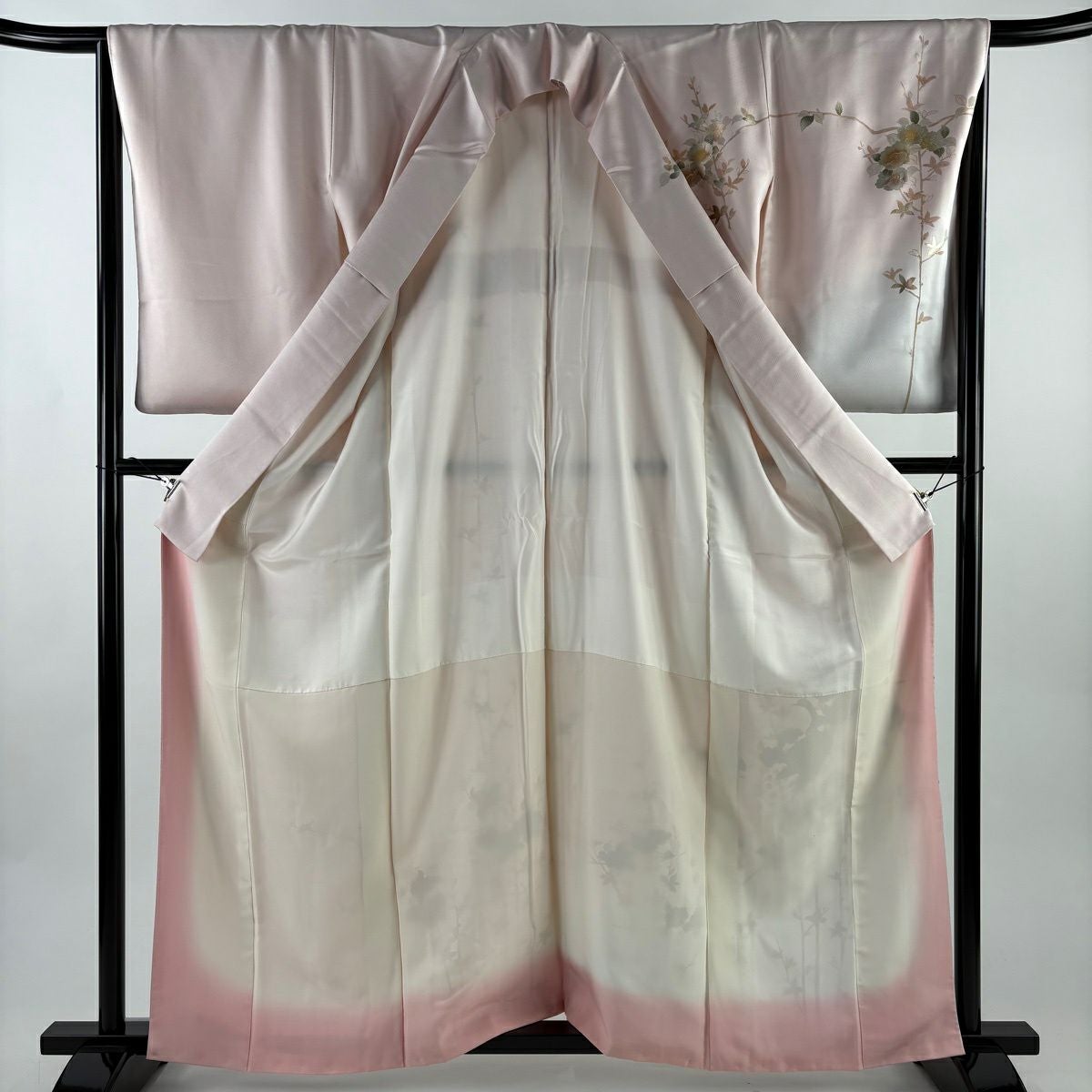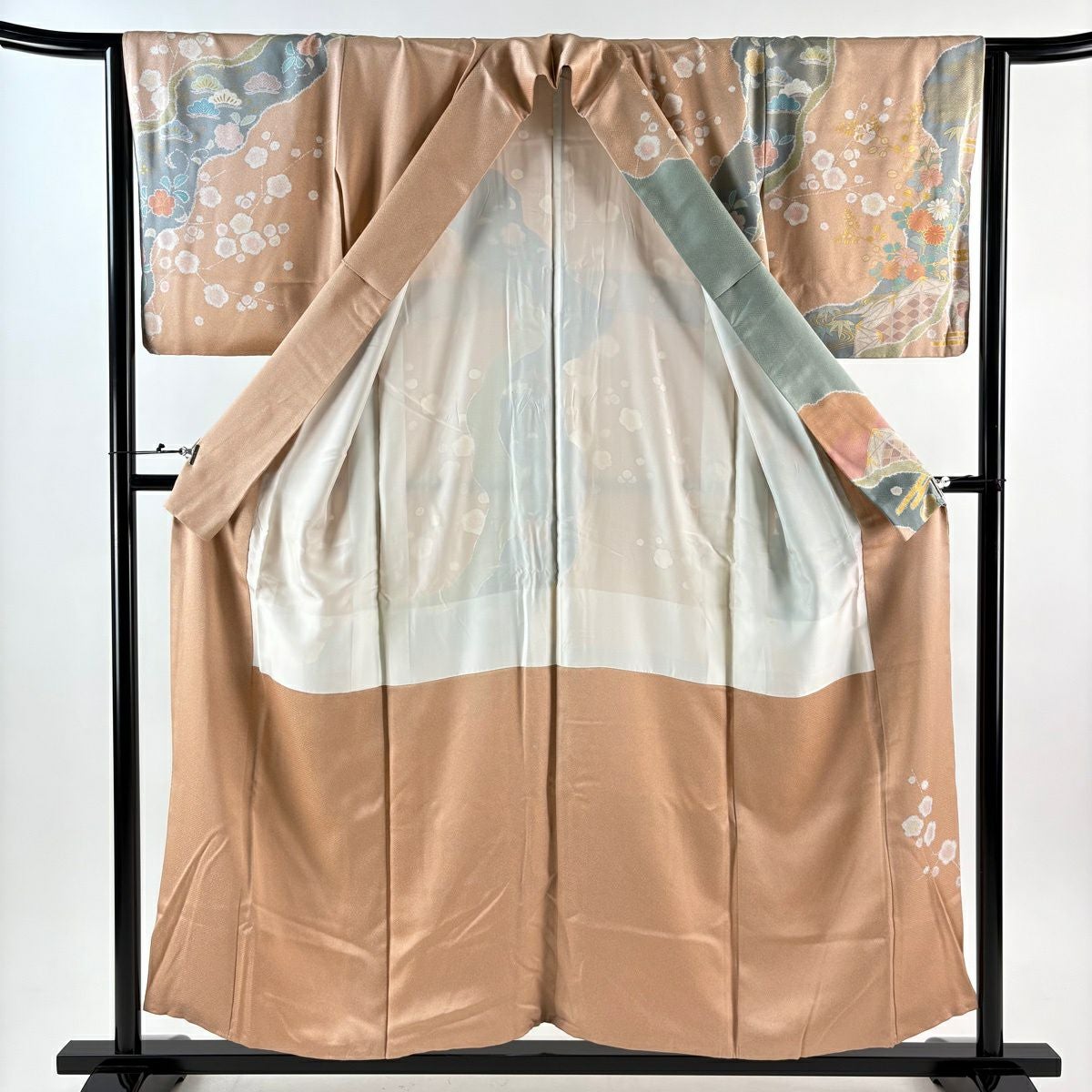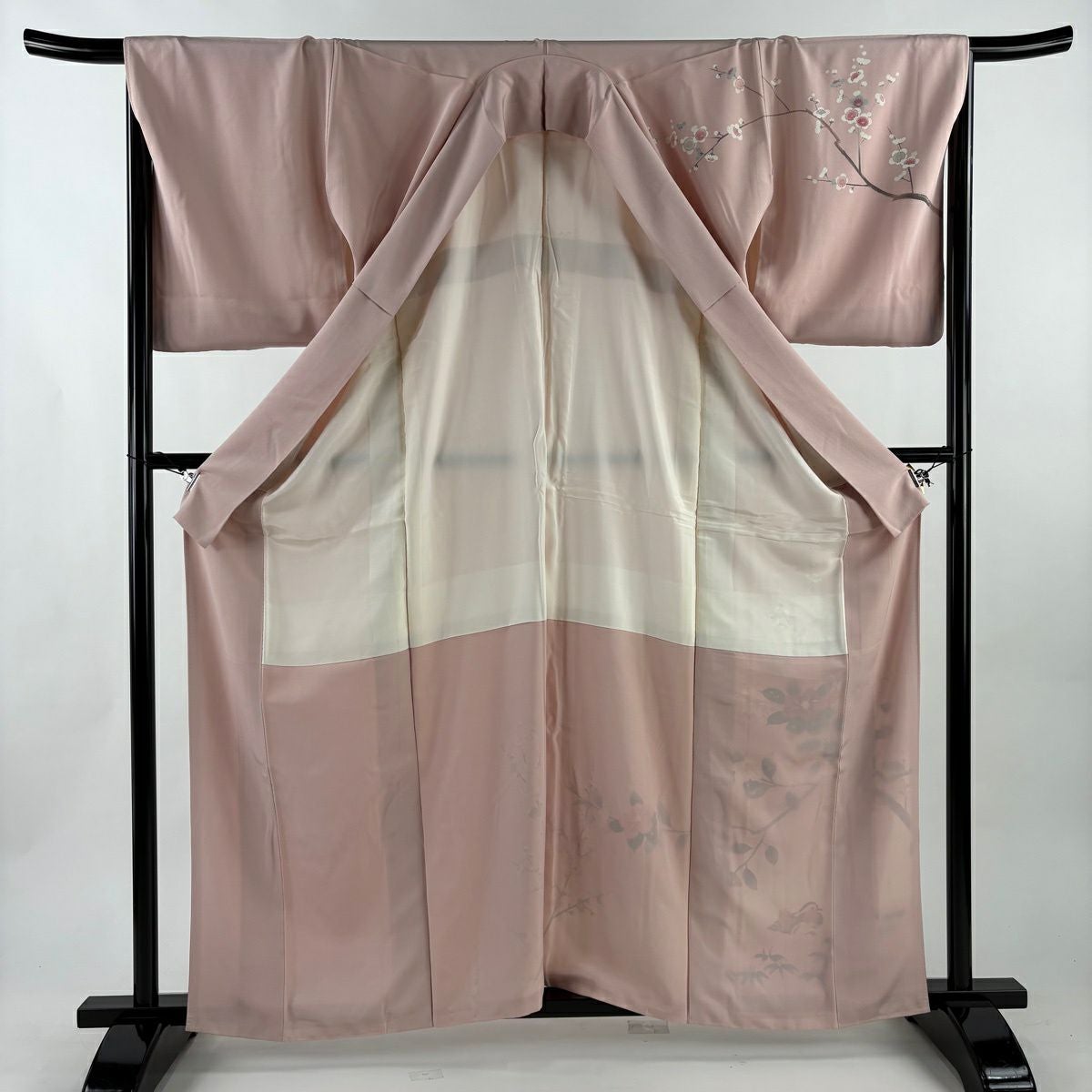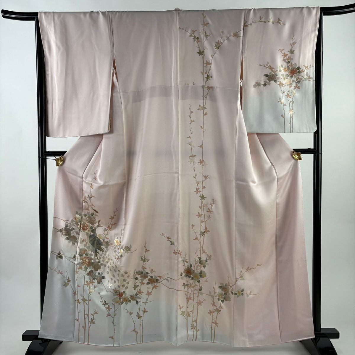 訪問着 身丈160cm 裄丈64.5cm M 袷 牡丹 枝梅 ぼかし 金糸 ピンクベージュ 正絹 秀品