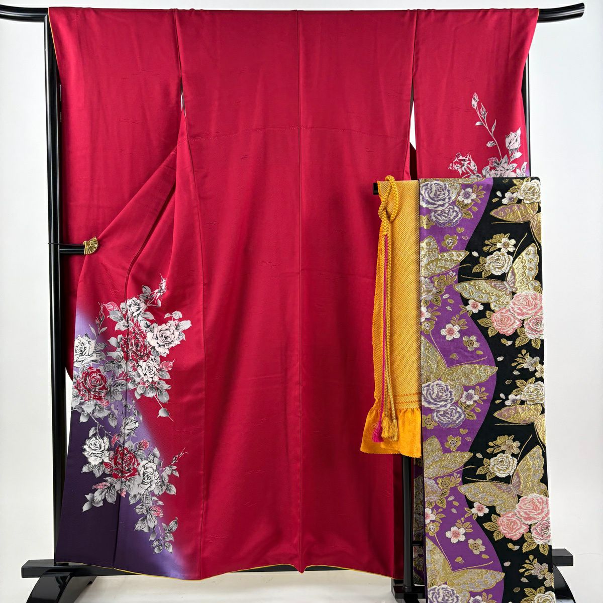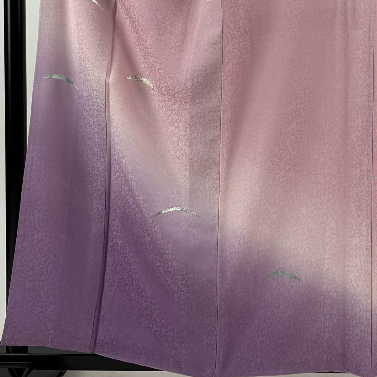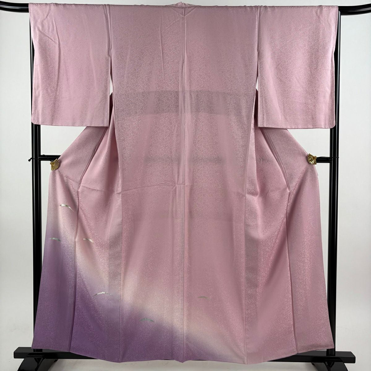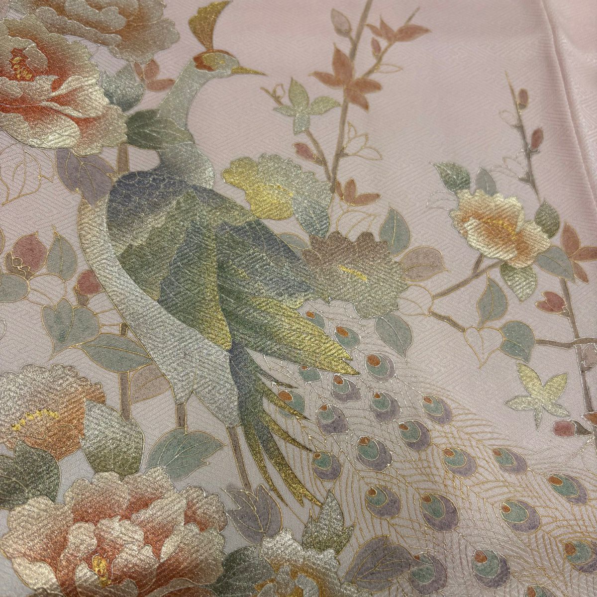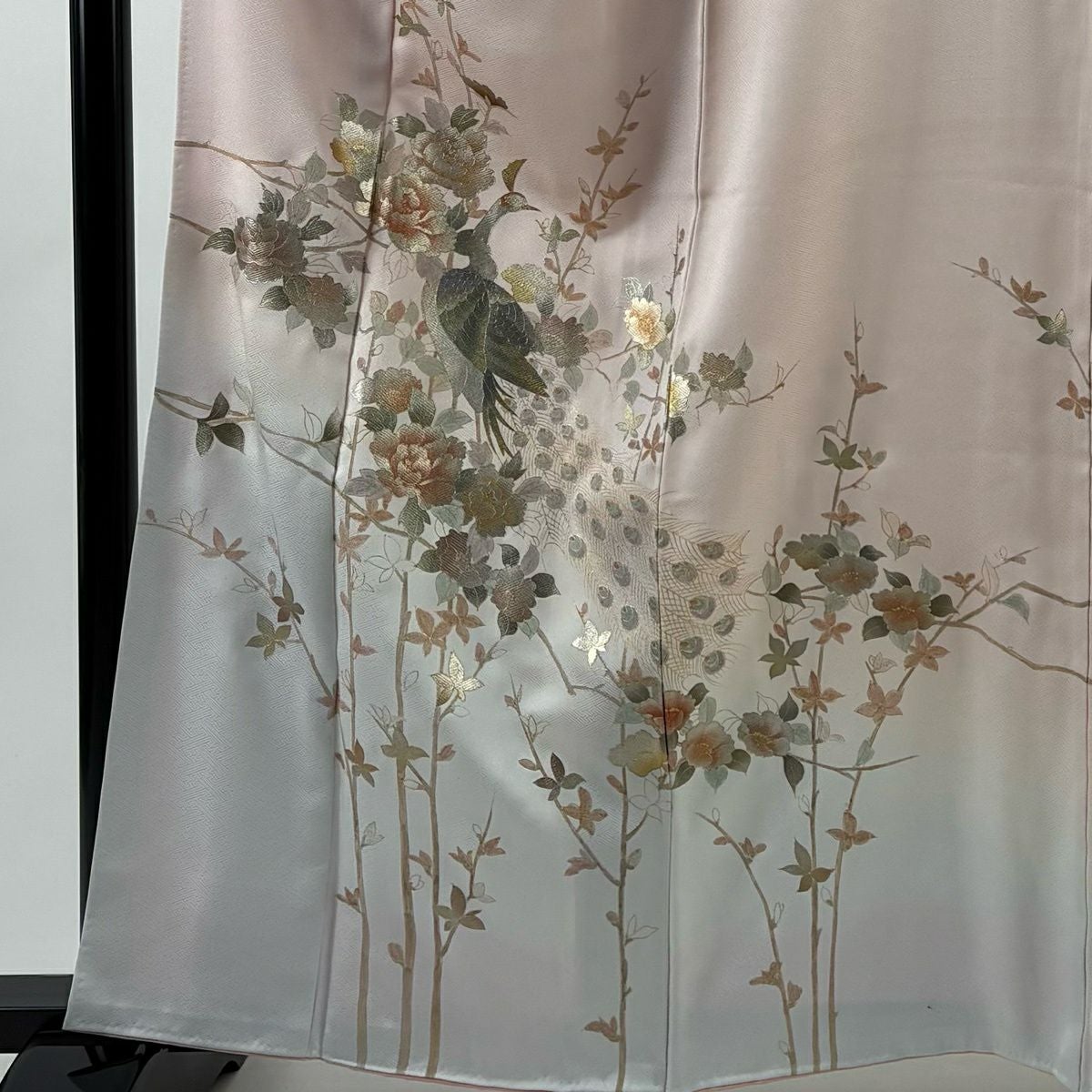 訪問着 身丈160.5cm 裄丈66cm M 袷 クジャク 牡丹 金銀彩 染め分け 薄ピンク 正絹 秀品