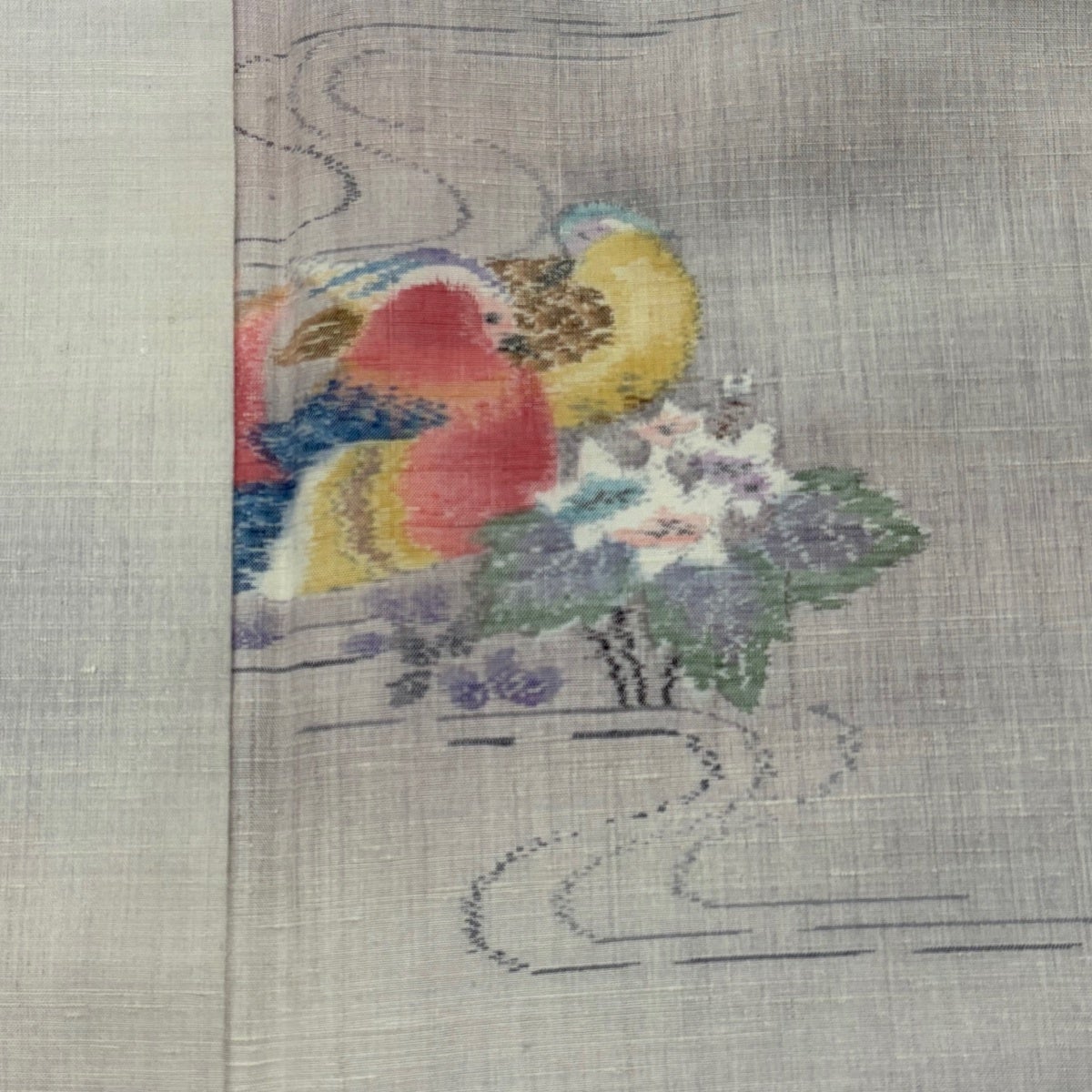 訪問着 身丈165cm 裄丈65.5cm M 袷 草花 鴛鴦 金銀彩 ぼかし 灰緑 正絹 秀品 一つ紋