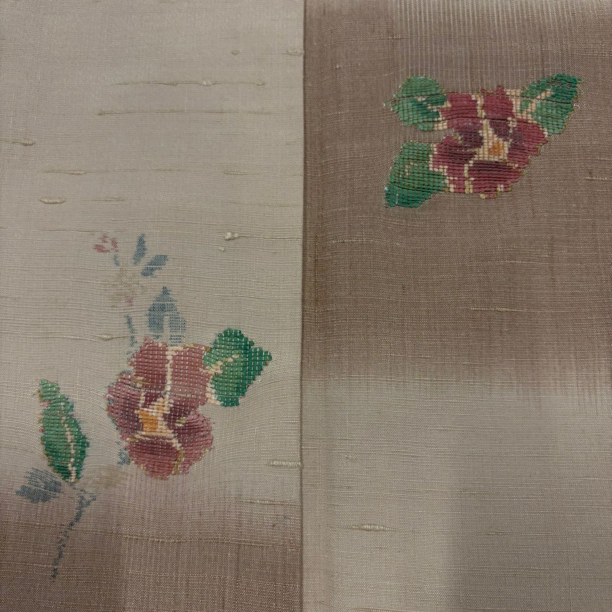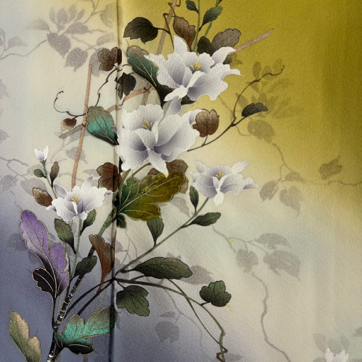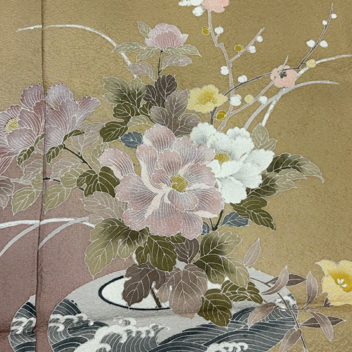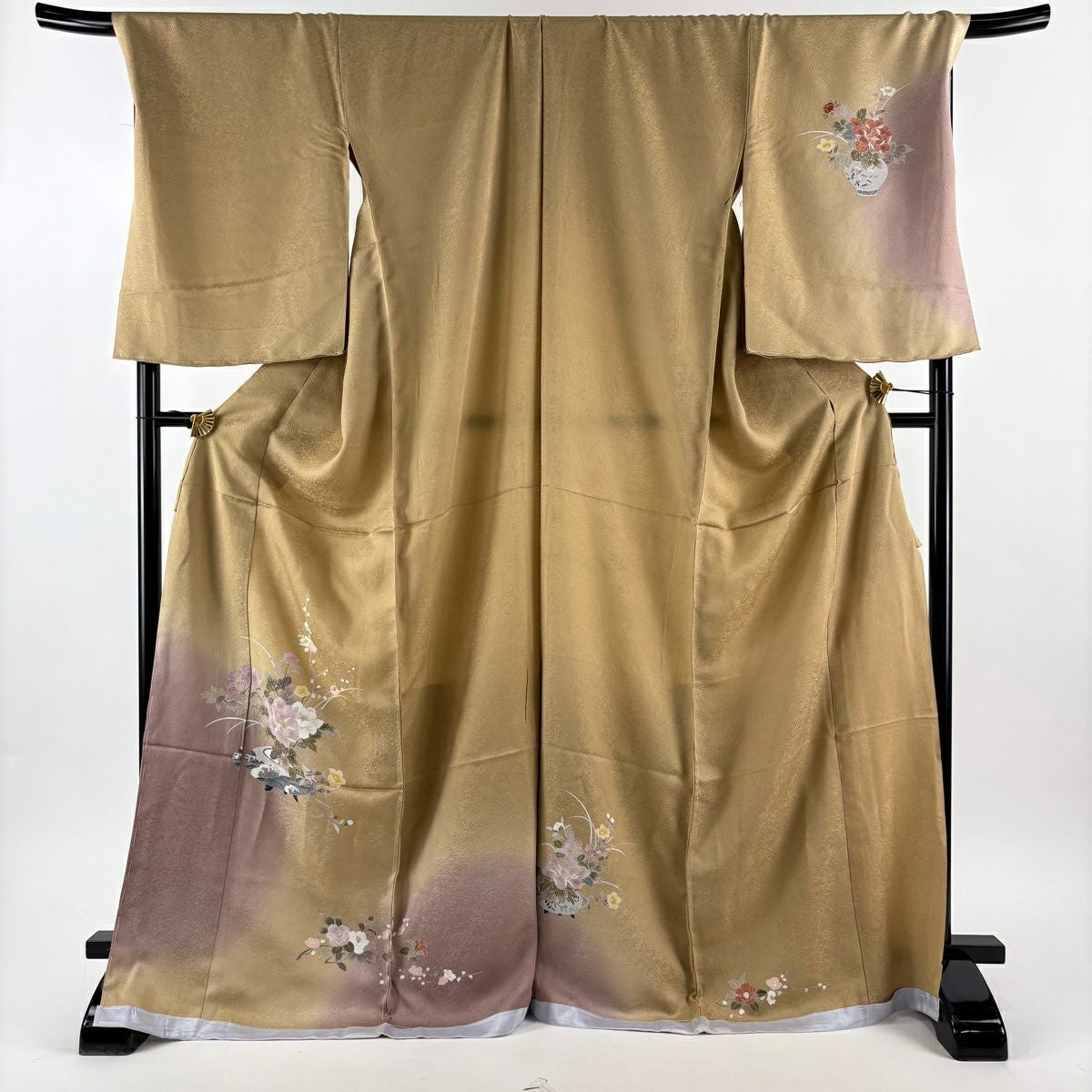 【美品】 付下げ 身丈170.5cm 裄丈72cm 未仕立て 仮絵羽 花器 草花 ぼかし 黄土色 正絹 秀品