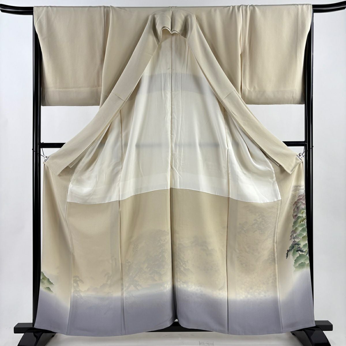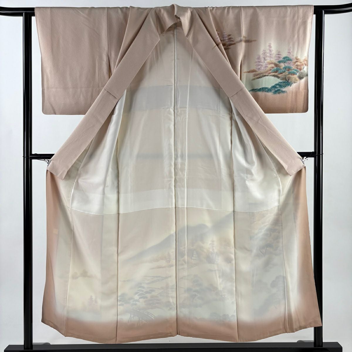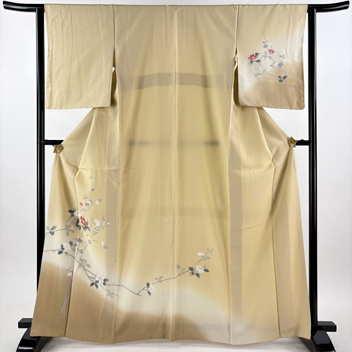 色留袖 身丈162cm 裄丈67cm M 袷 落款あり 遠山 枝桜 ぼかし ベージュ 正絹 秀品 三つ紋