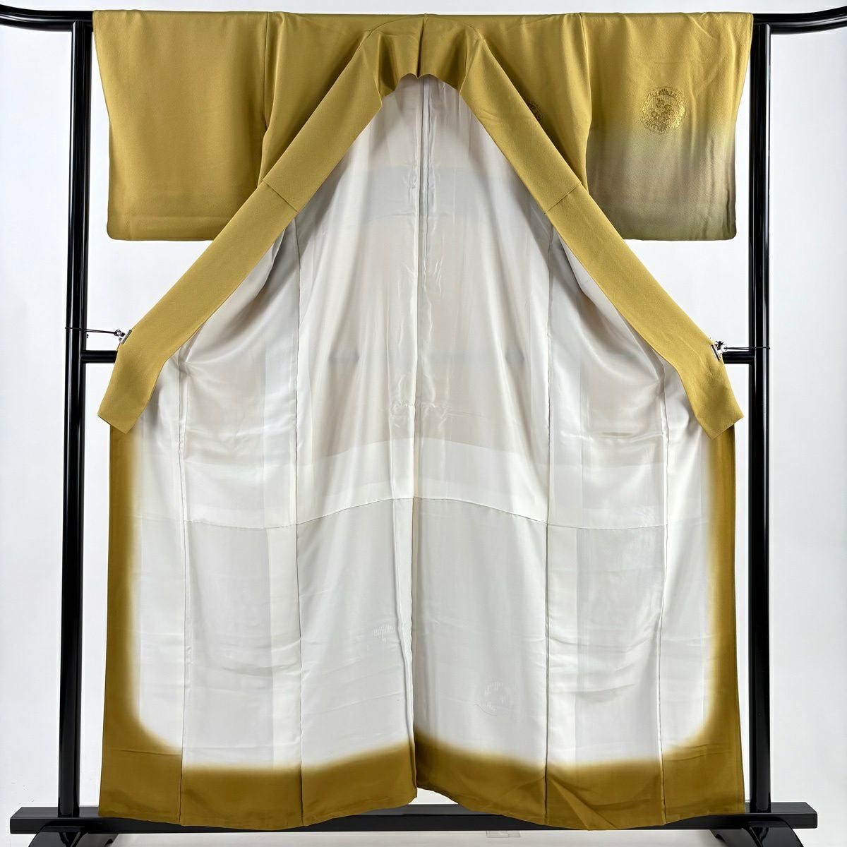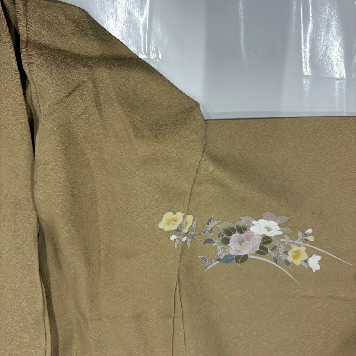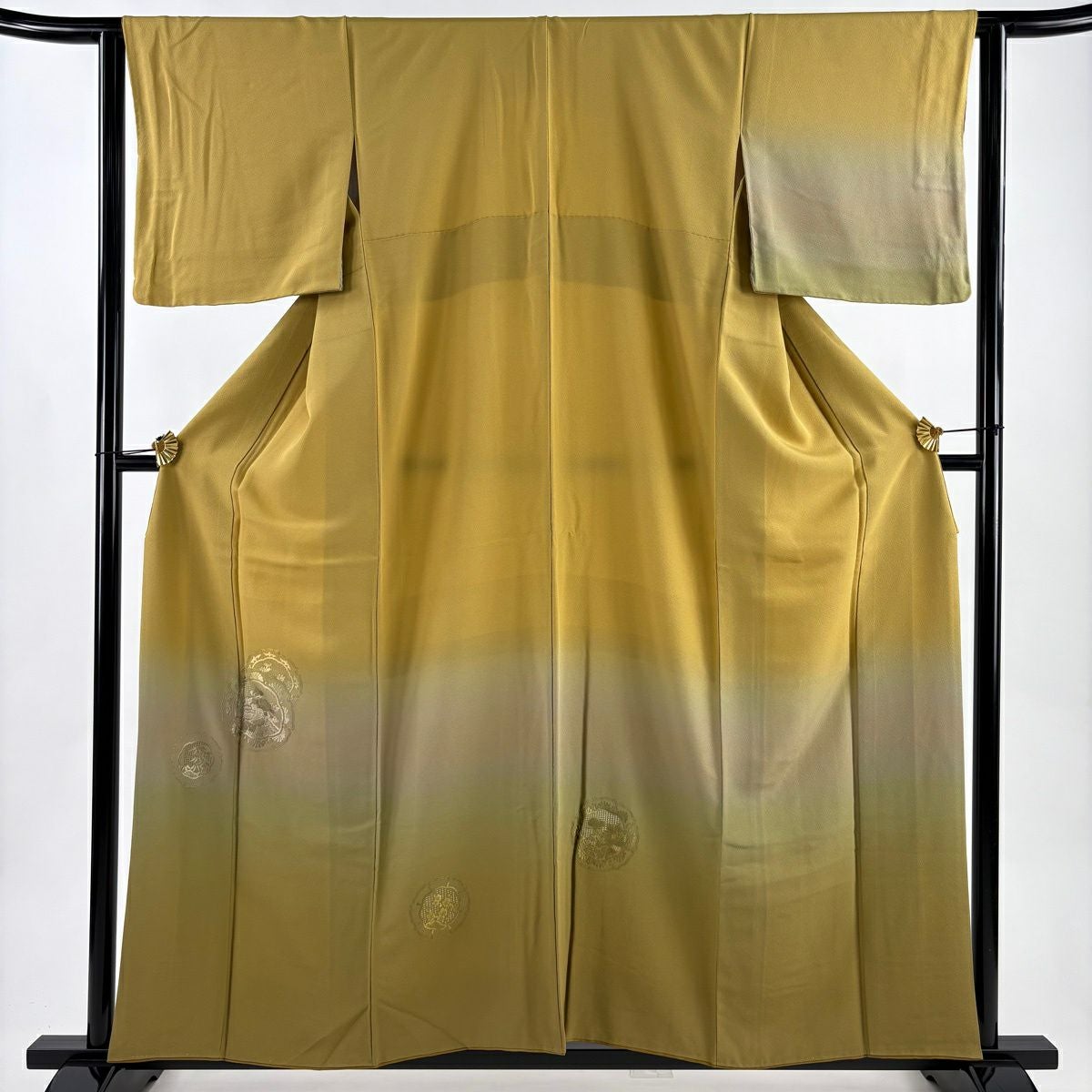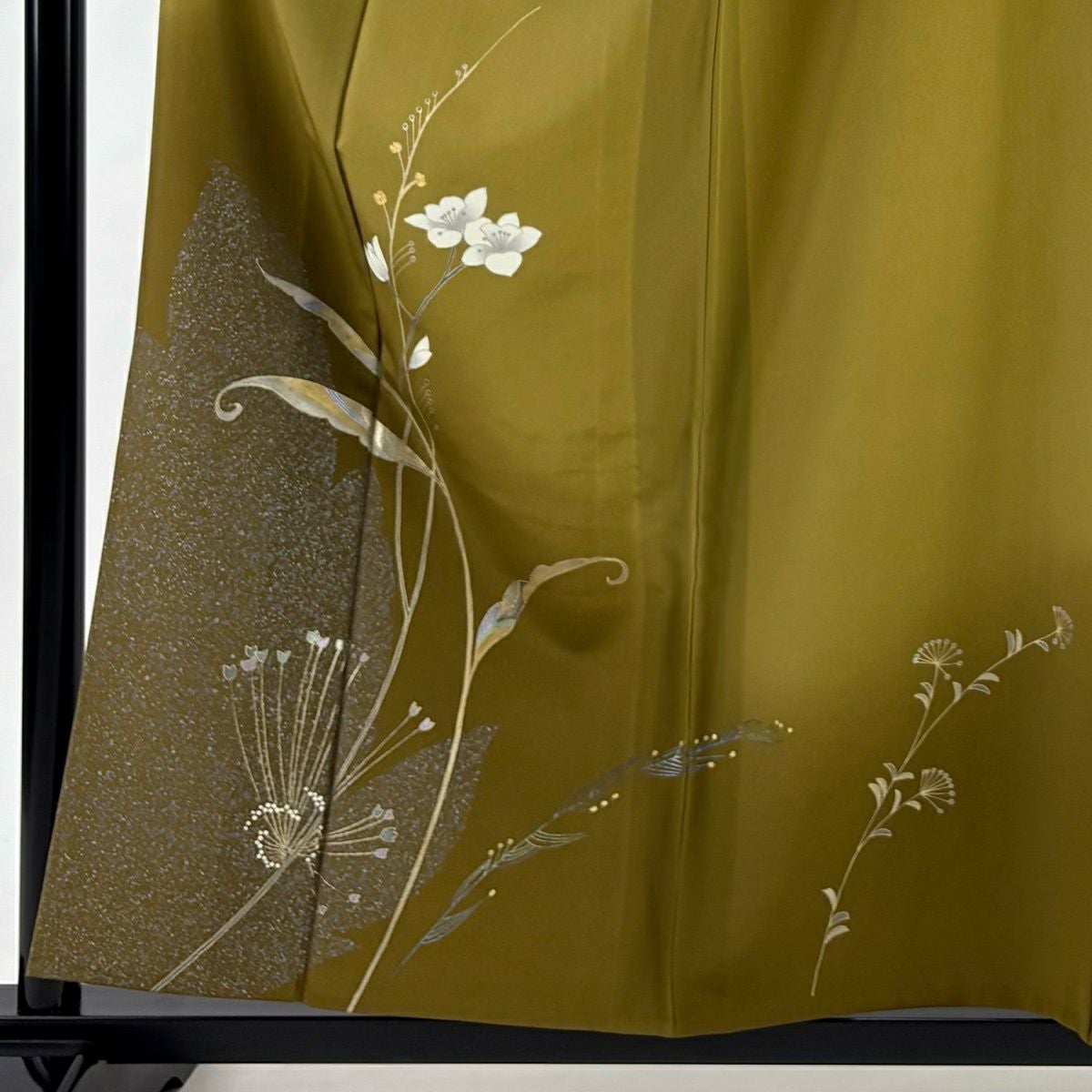 付下げ 身丈162cm 裄丈66cm M 袷 鈴乃屋 枝花 シルエット 金銀彩 ぼかし からし色 正絹 秀品