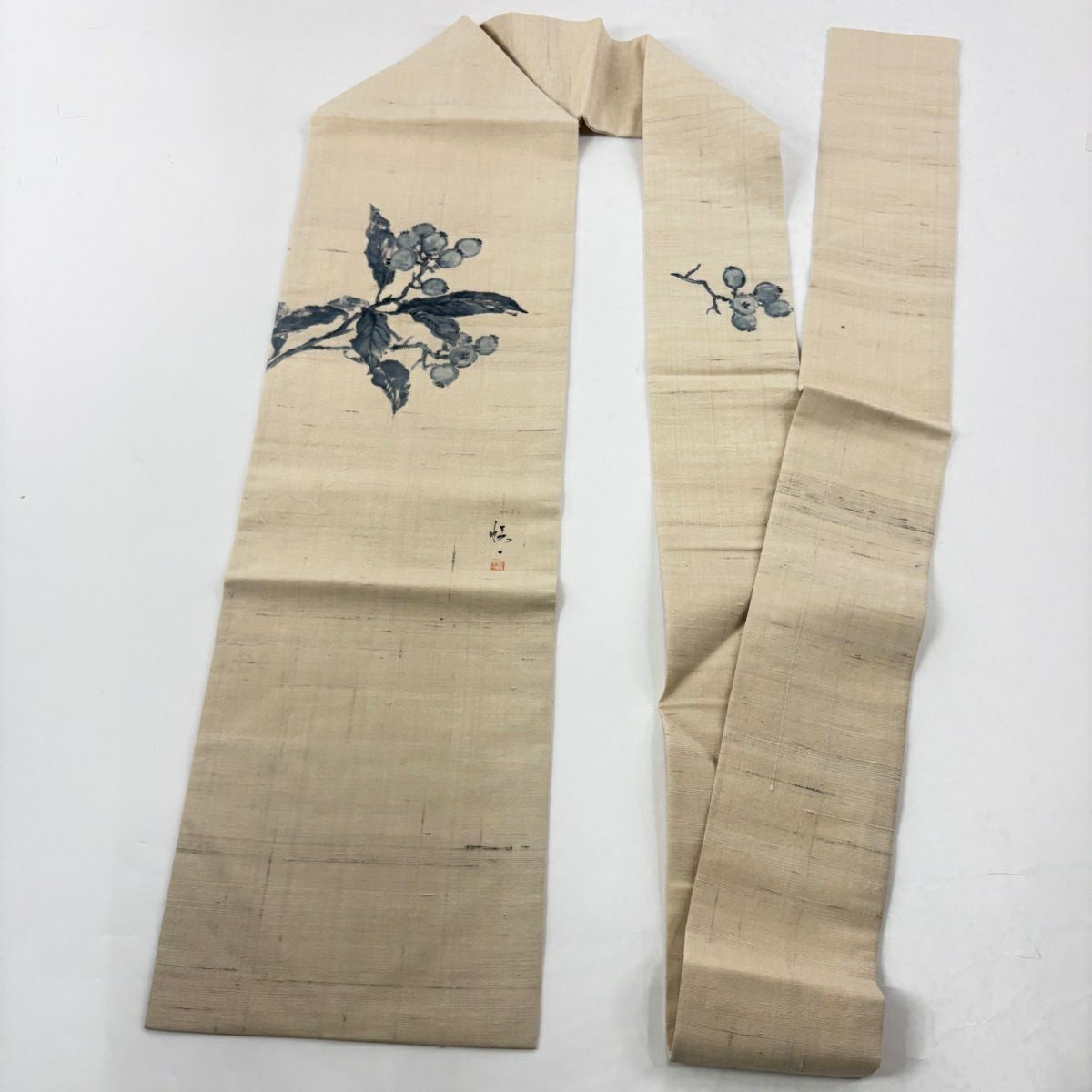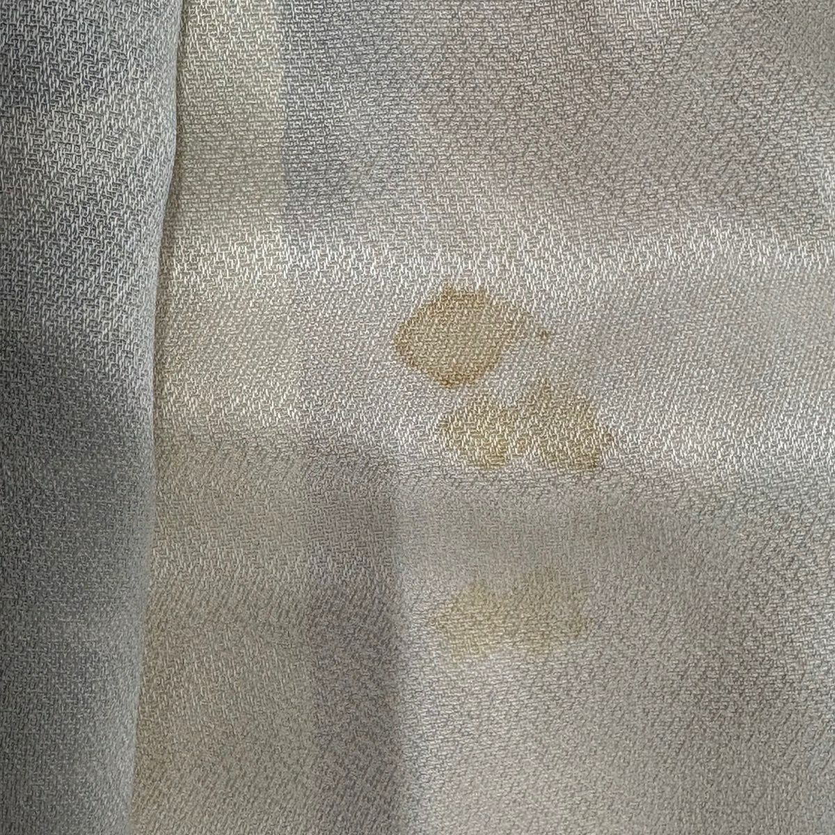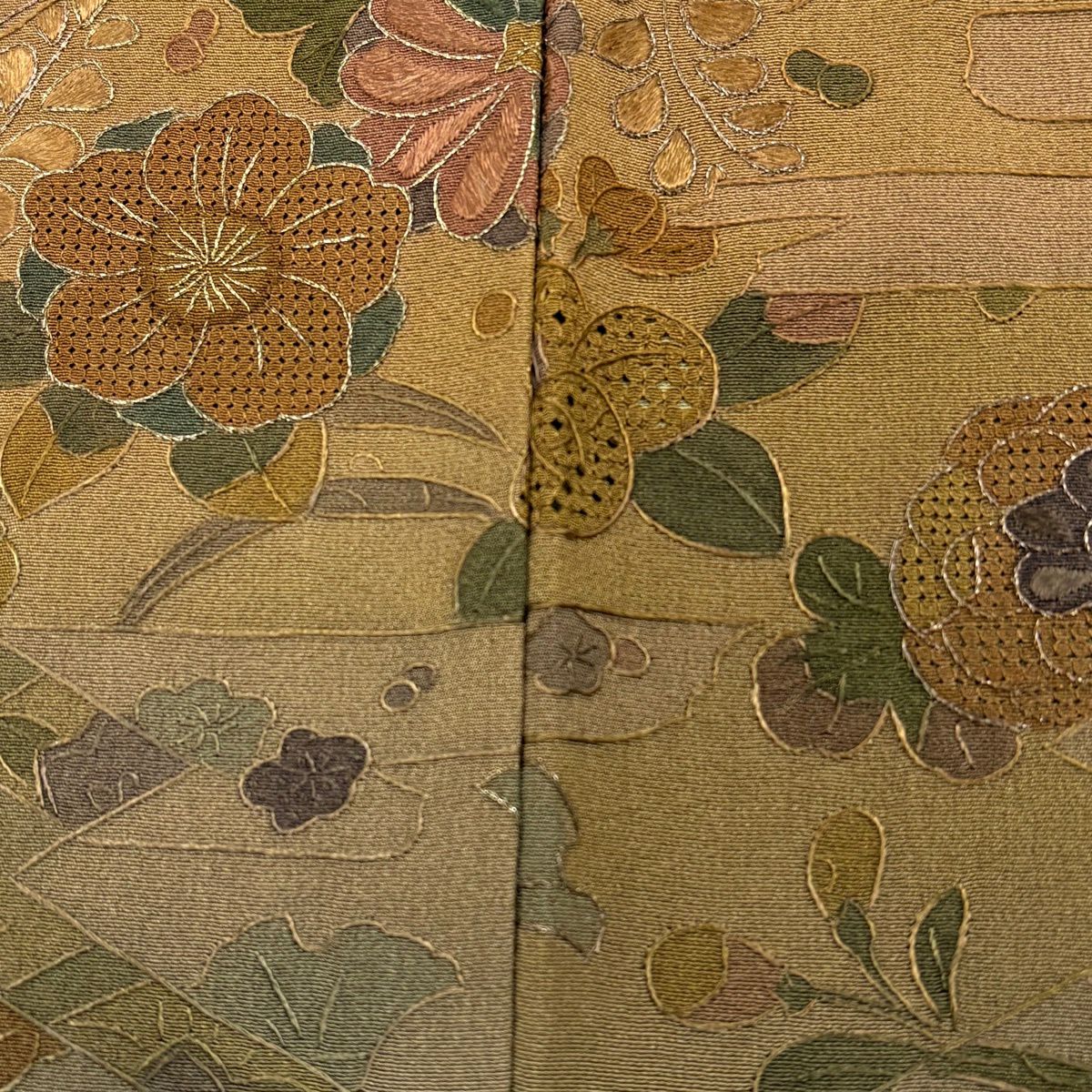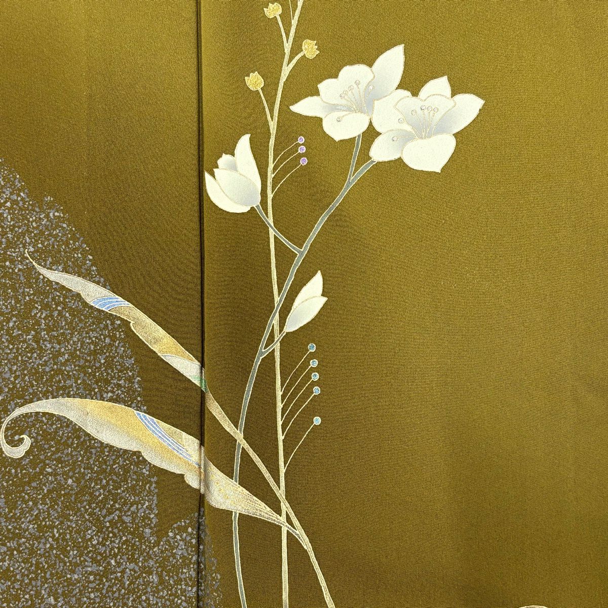 付下げ 身丈162cm 裄丈66cm M 袷 鈴乃屋 枝花 シルエット 金銀彩 ぼかし からし色 正絹 秀品