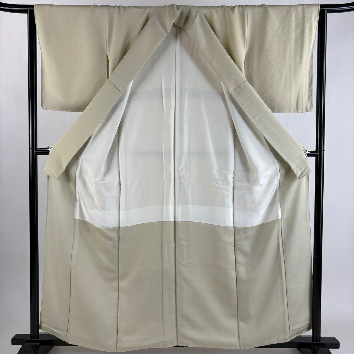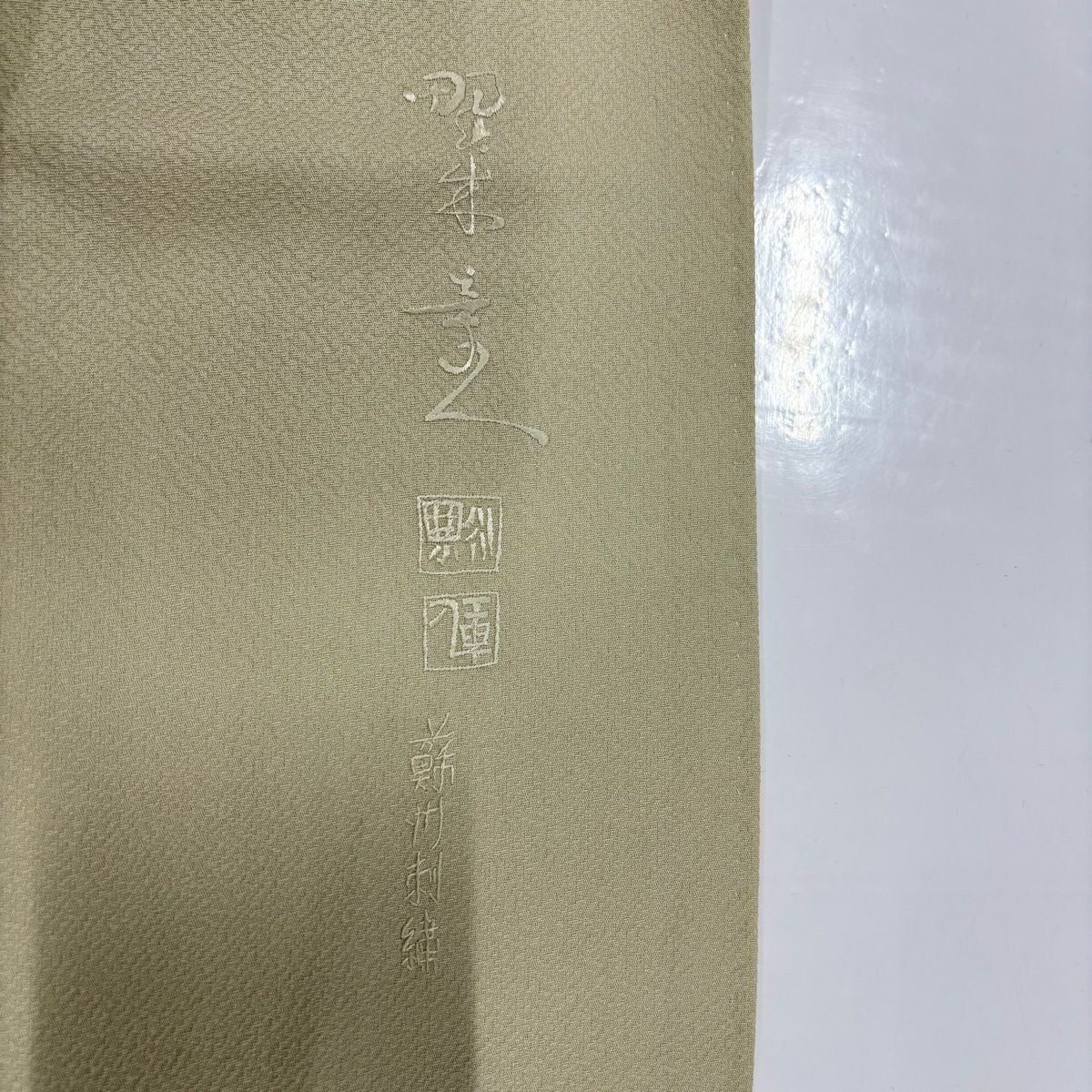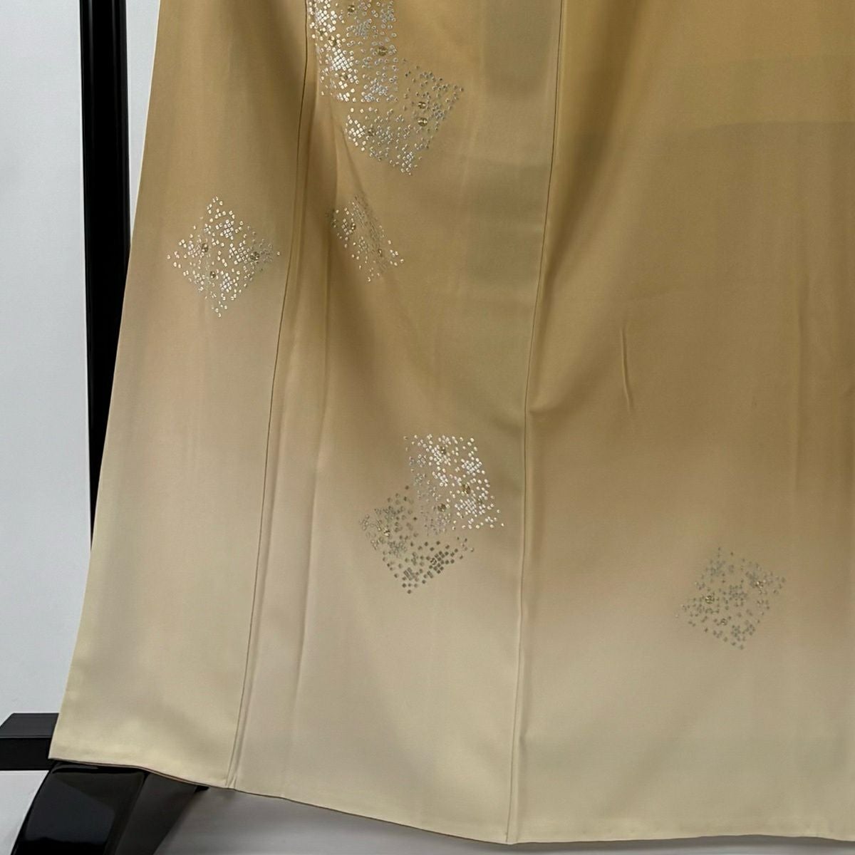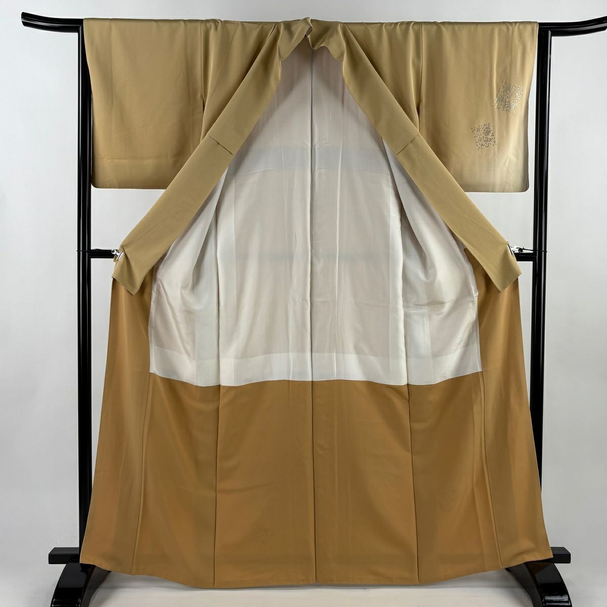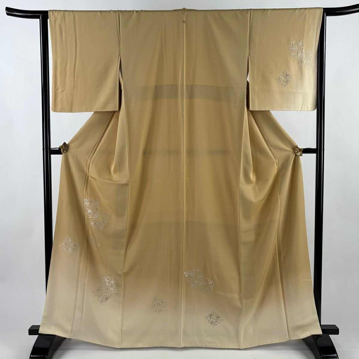 【美品】 付下げ 身丈164.5cm 裄丈64.5cm M 袷 幾何学模様 金糸 刺繍 薄黄土色 正絹 秀品 一つ紋