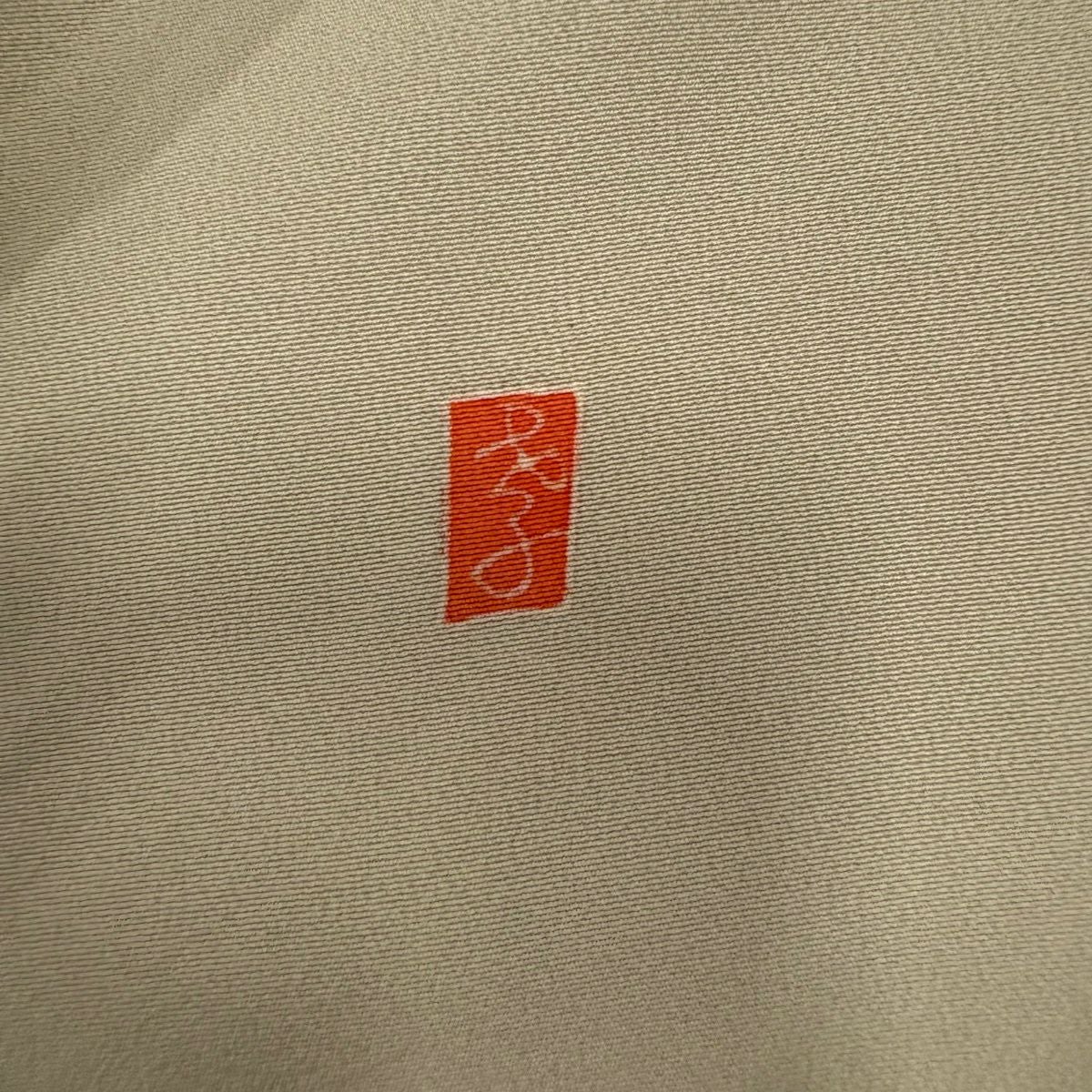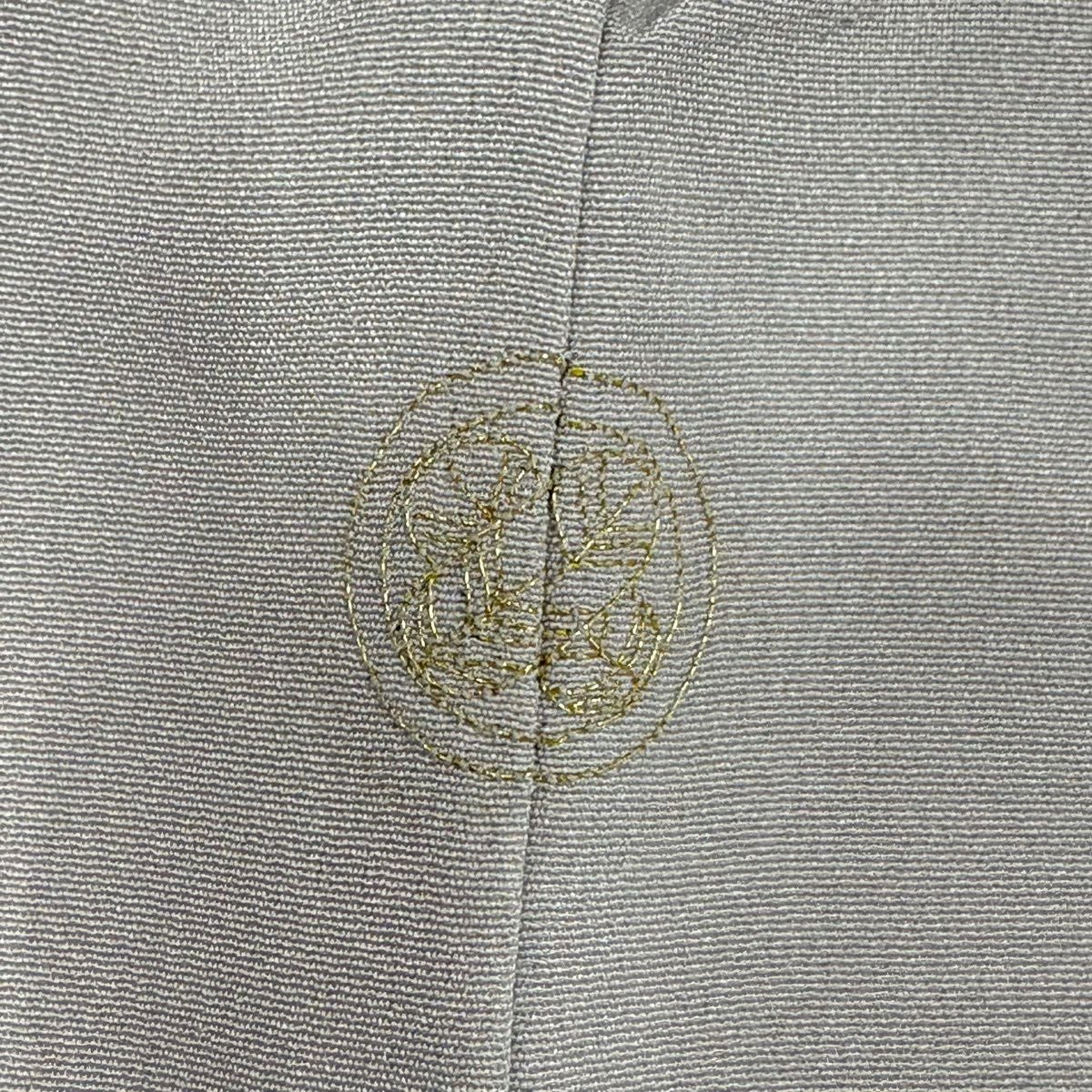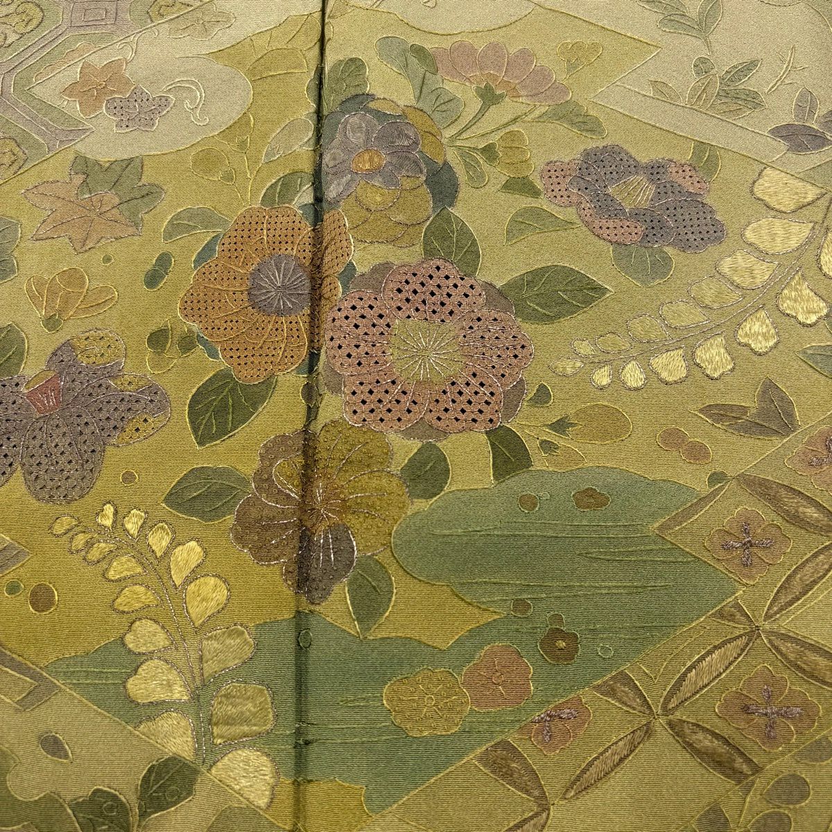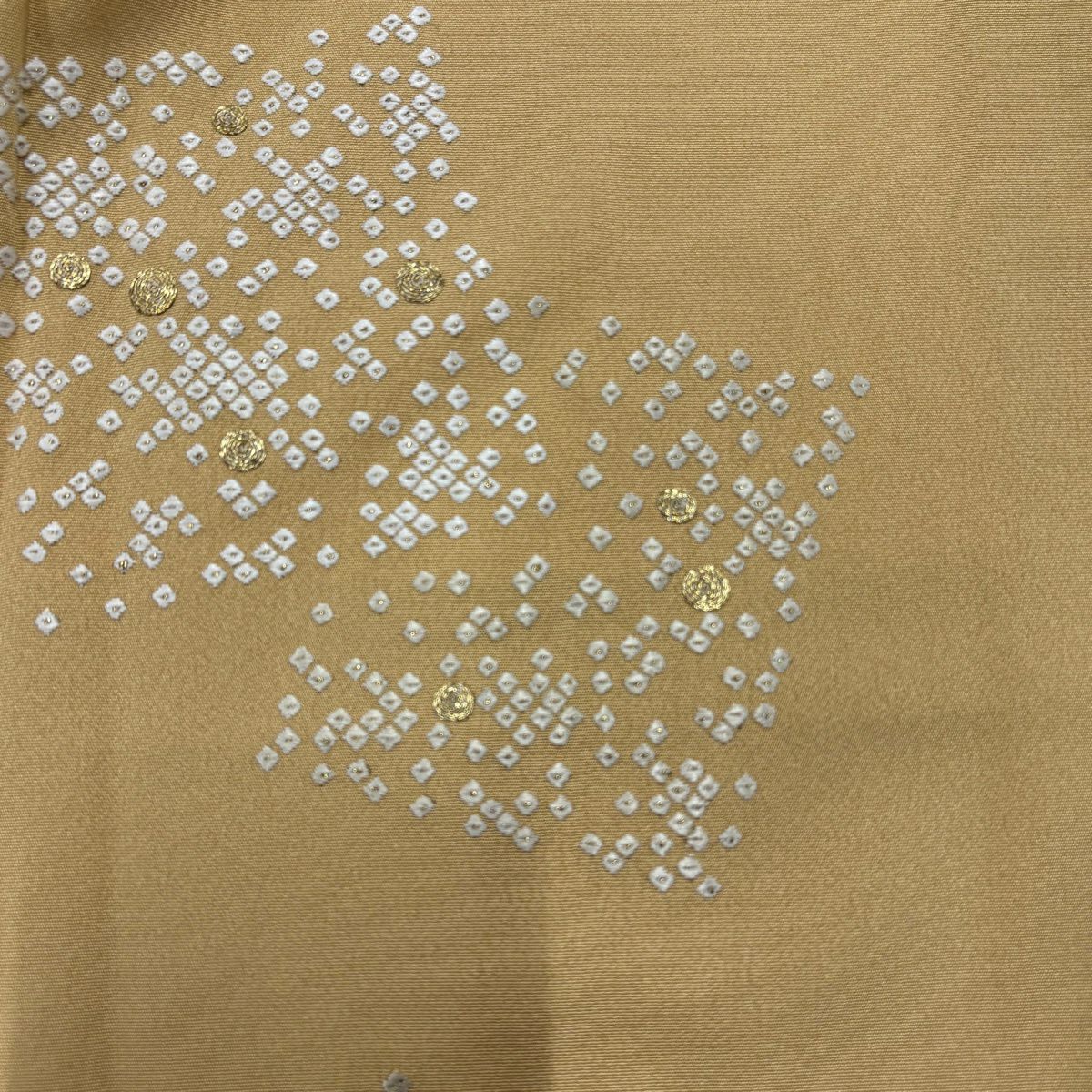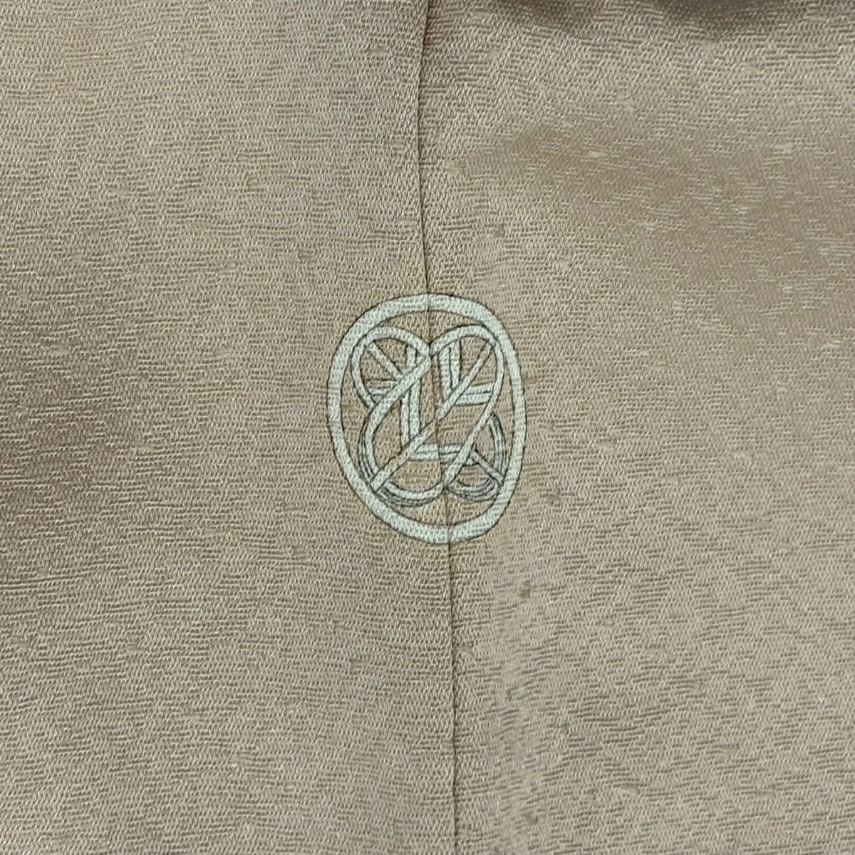 【美品】 付下げ 身丈164.5cm 裄丈64.5cm M 袷 幾何学模様 金糸 刺繍 薄黄土色 正絹 秀品 一つ紋