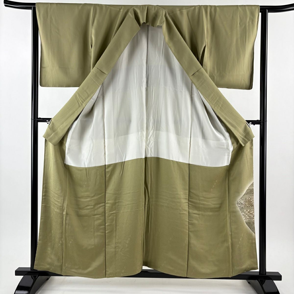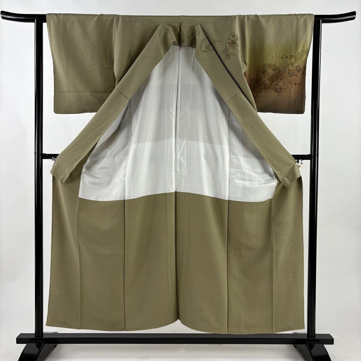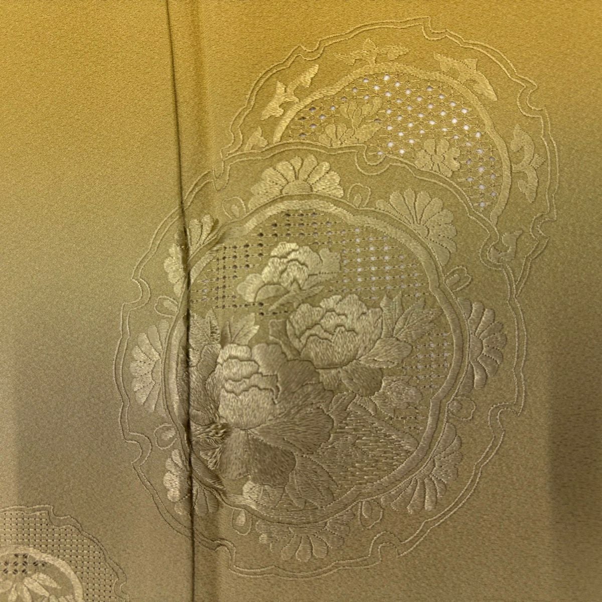 【美品】 訪問着 身丈164cm 裄丈65cm M 袷 花唐草 向かい鳥 金彩 ぼかし 薄黄土色 正絹 秀品
