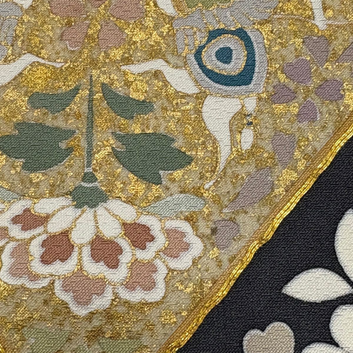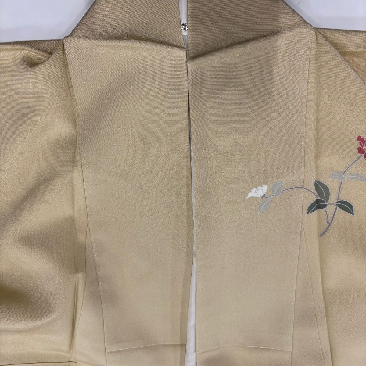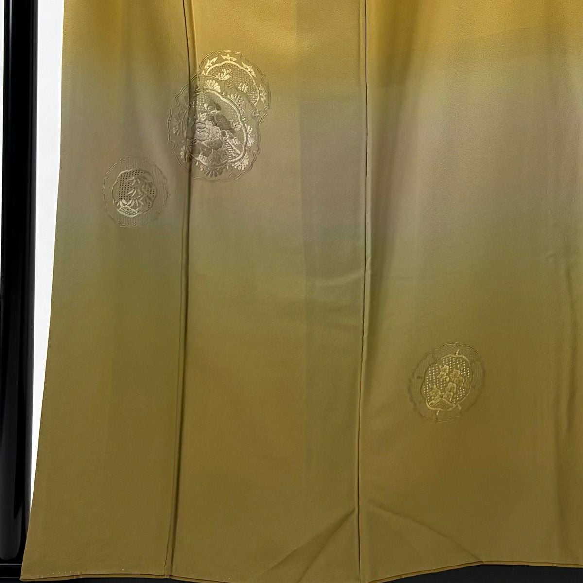 【美品】 訪問着 身丈164cm 裄丈65cm M 袷 花唐草 向かい鳥 金彩 ぼかし 薄黄土色 正絹 秀品