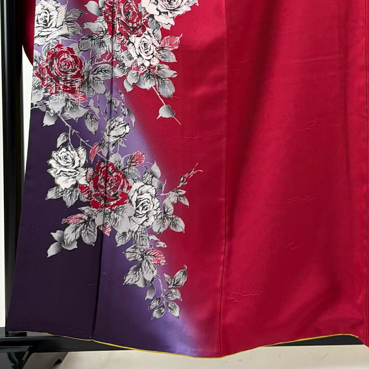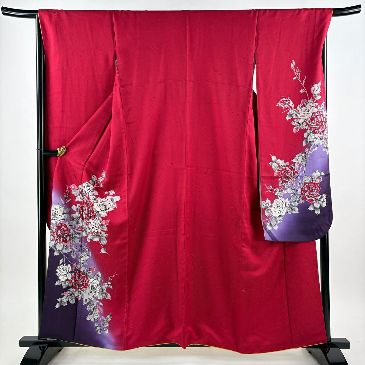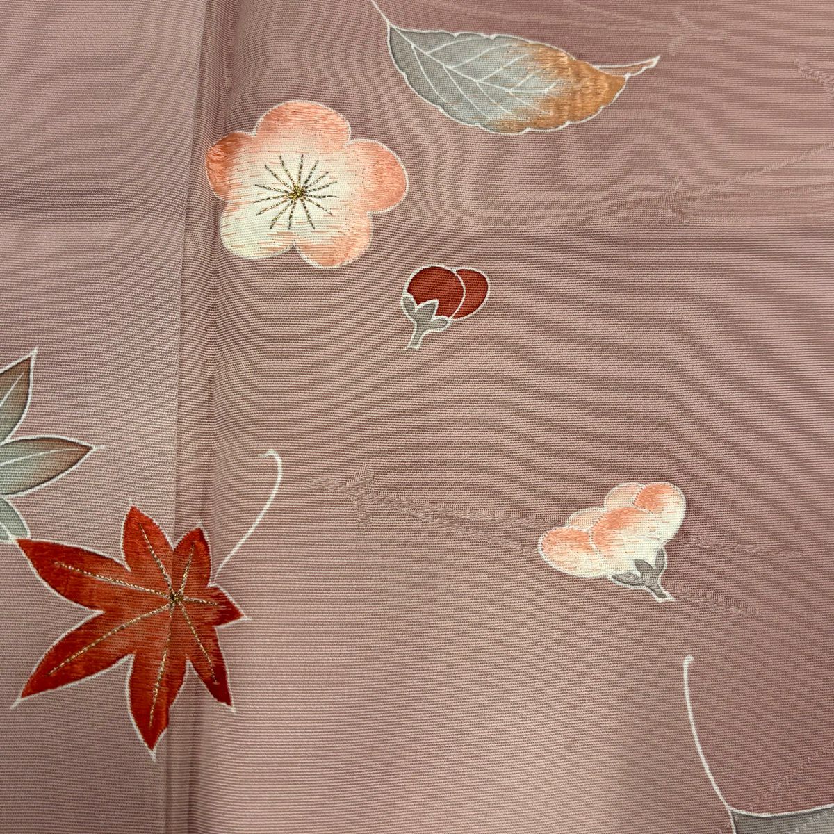 【美品】 付下げ 身丈156cm 裄丈62.5cm S 袷 吹き寄せ 地紋 刺繍 ぼかし 小豆色 正絹 秀品