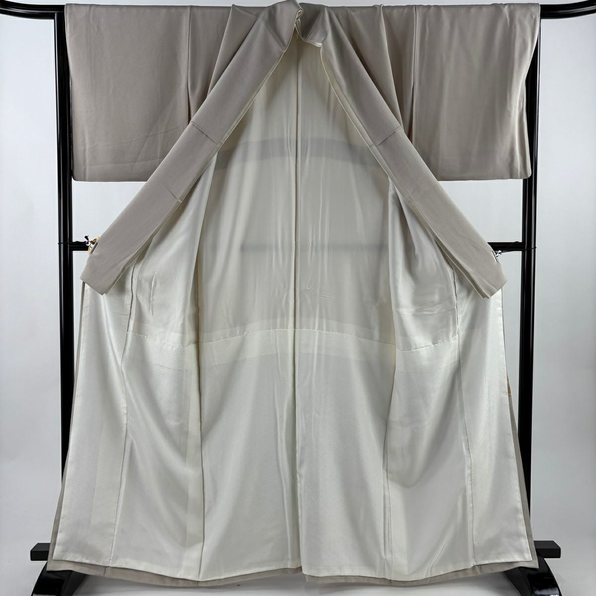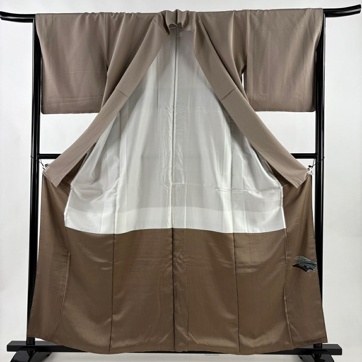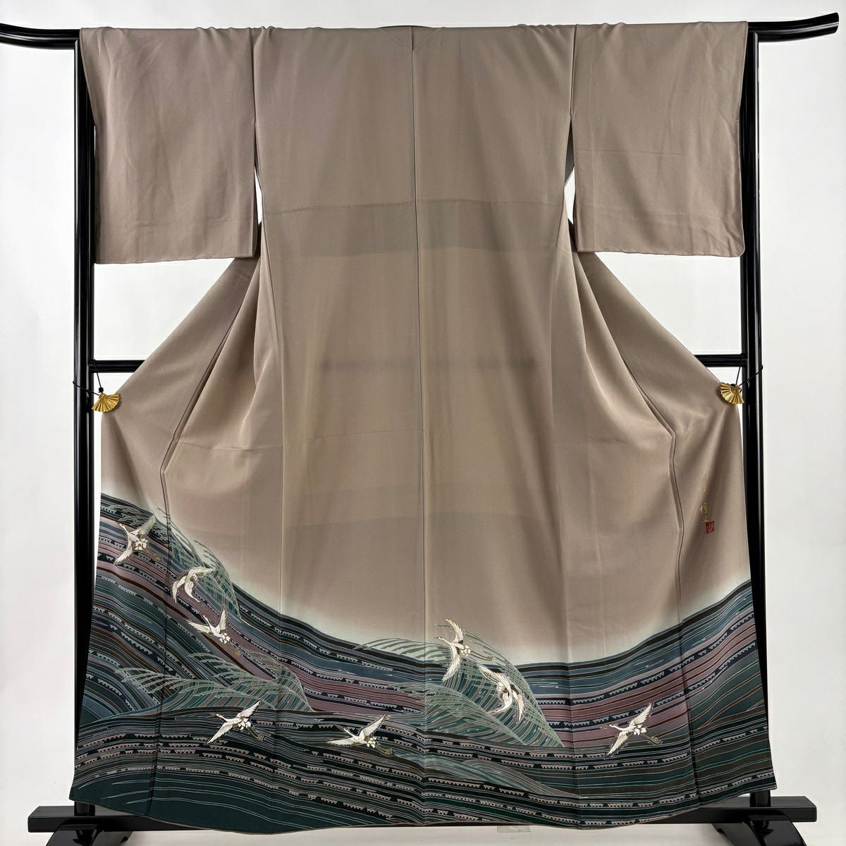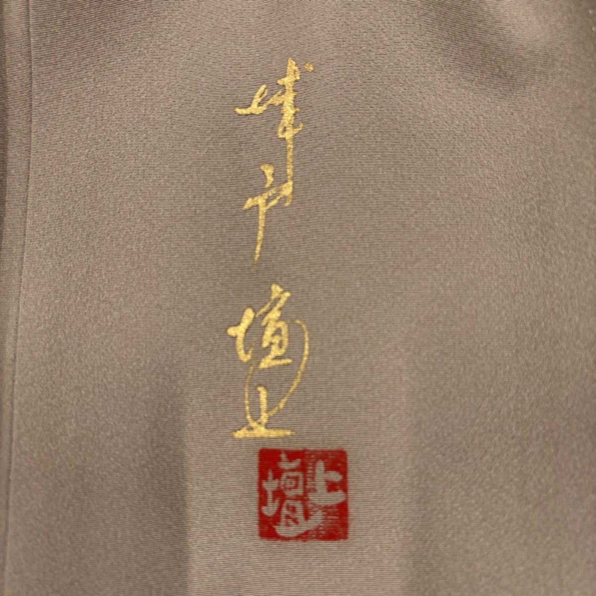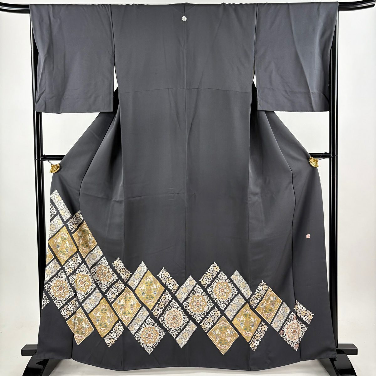 色留袖 身丈164cm 裄丈66cm M 袷 松尾光琳 落款あり 屏風 草花 金彩 灰茶 正絹 秀品 三つ紋