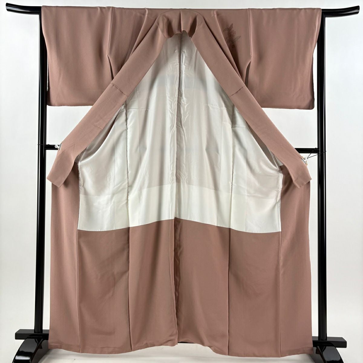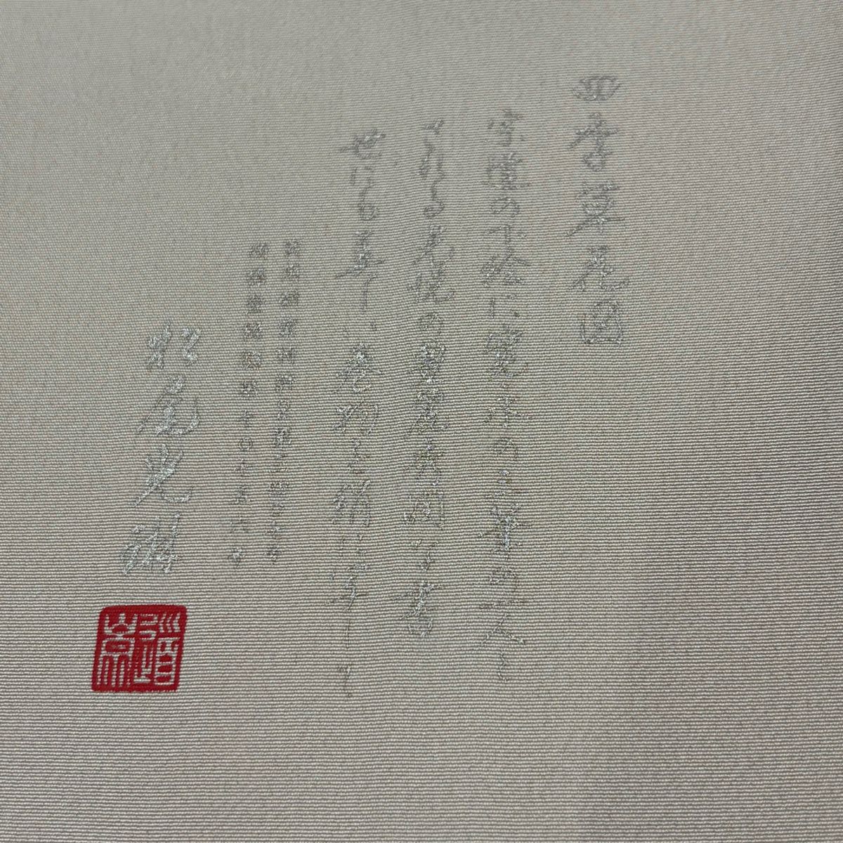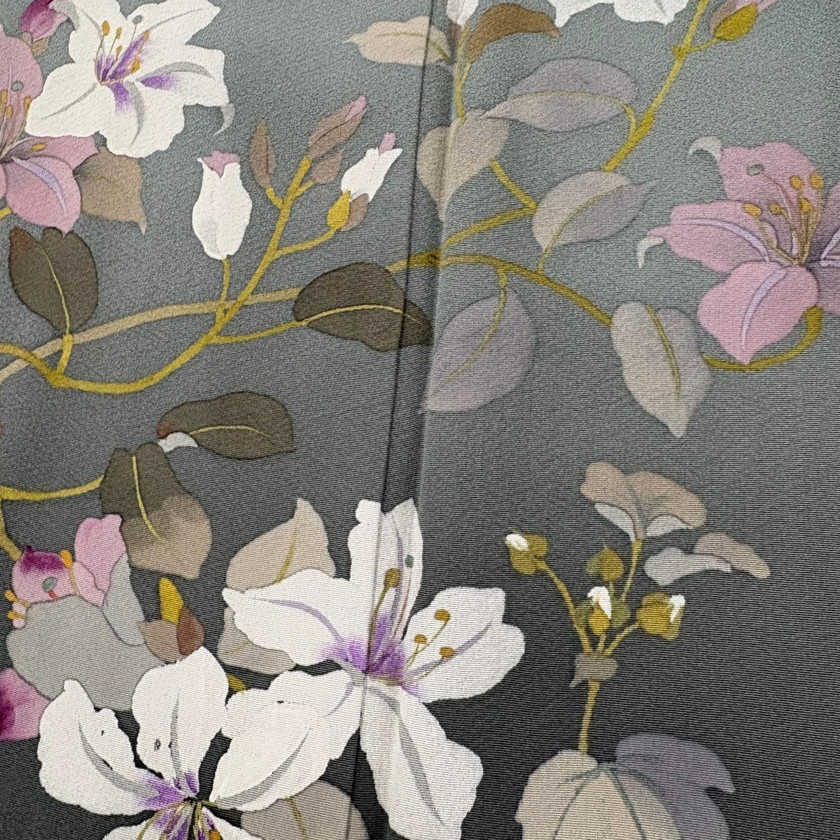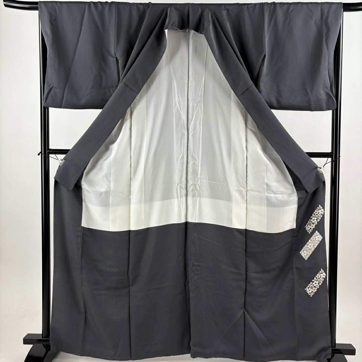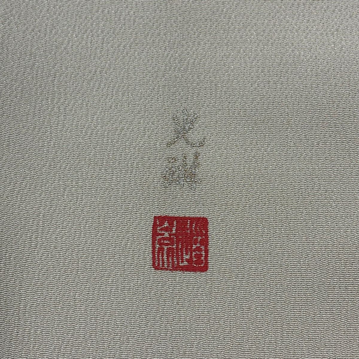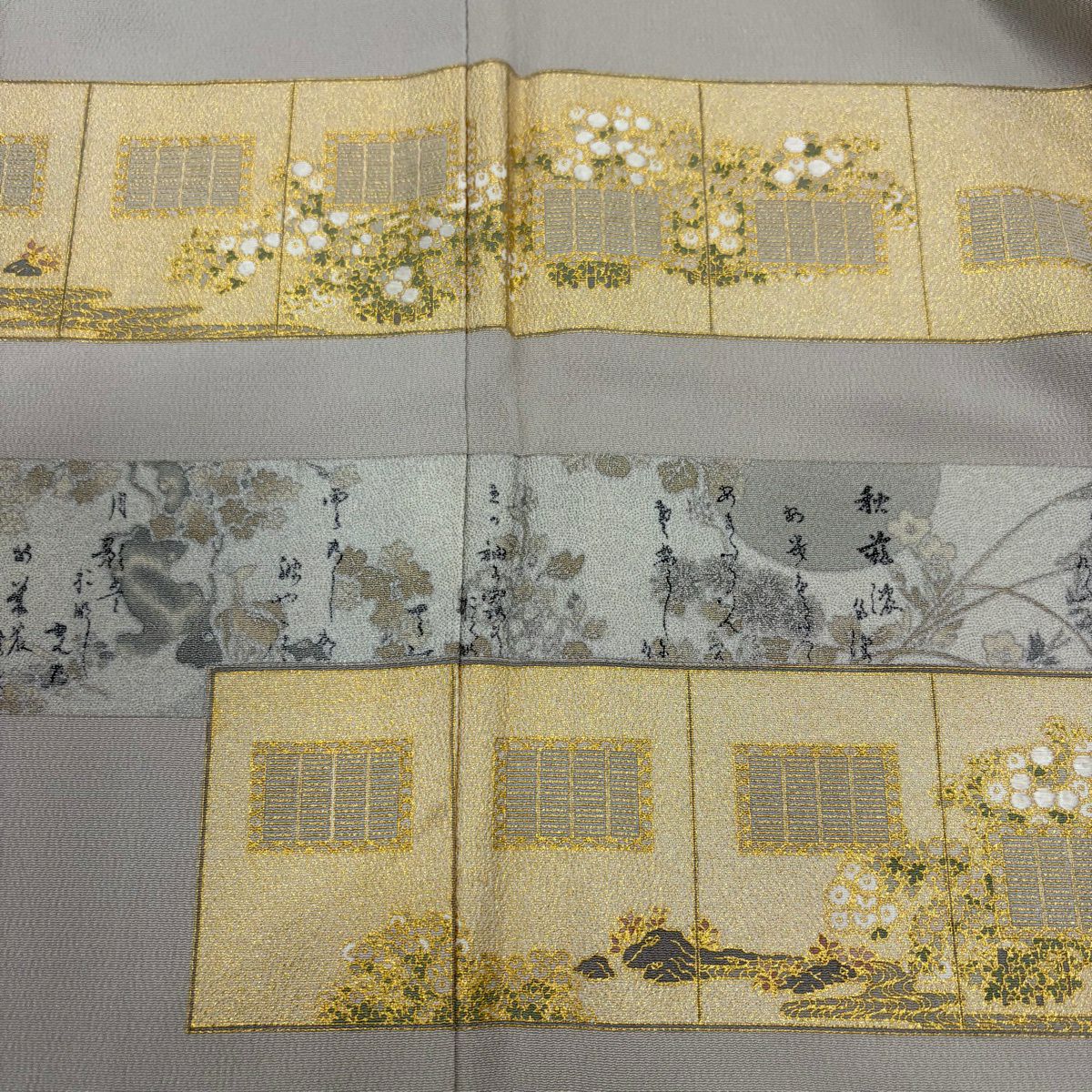 色留袖 身丈164cm 裄丈66cm M 袷 松尾光琳 落款あり 屏風 草花 金彩 灰茶 正絹 秀品 三つ紋