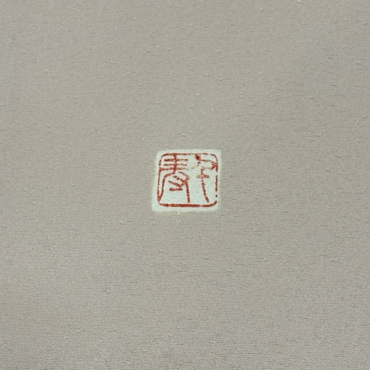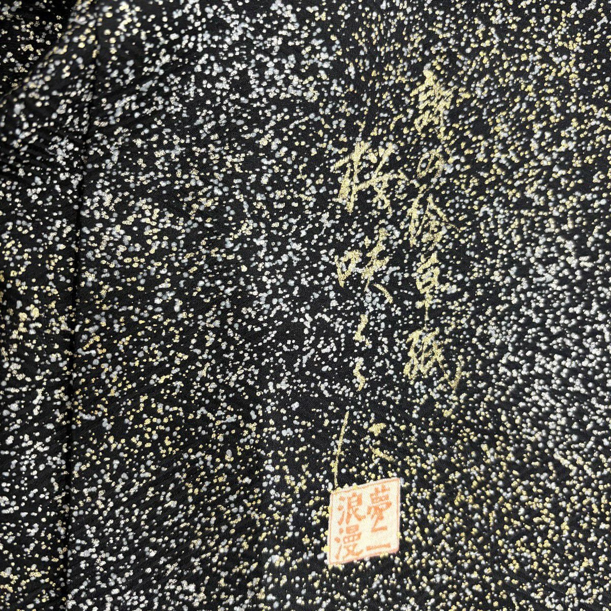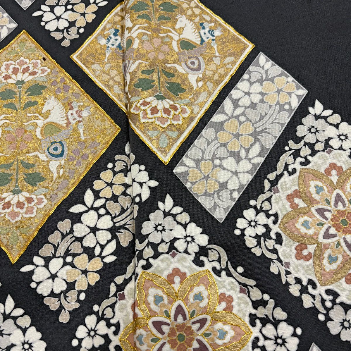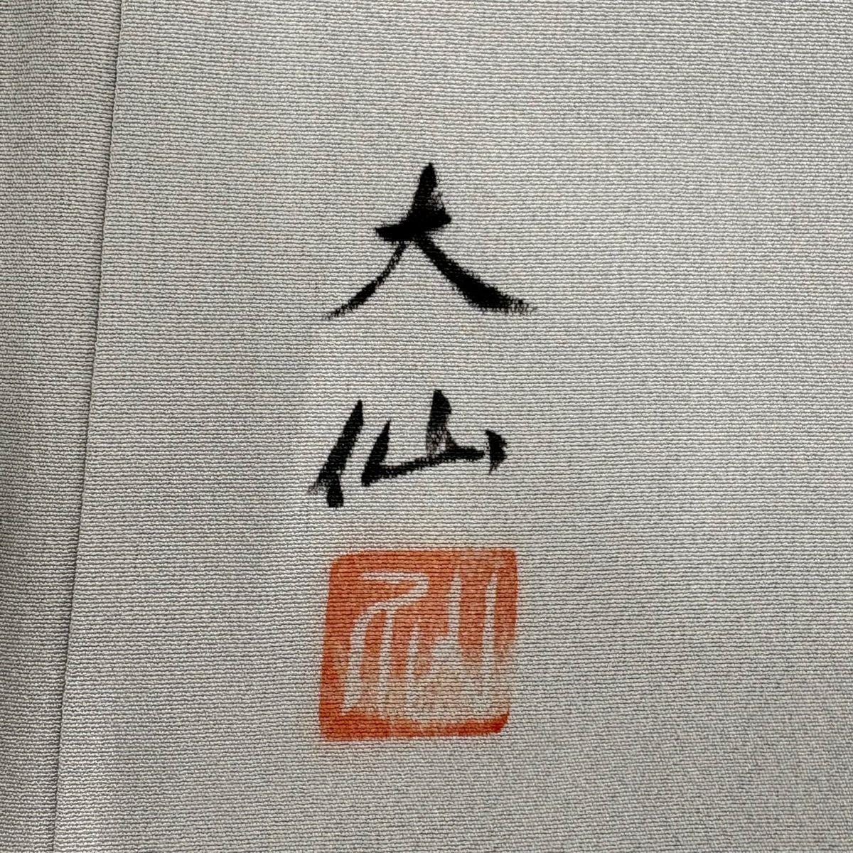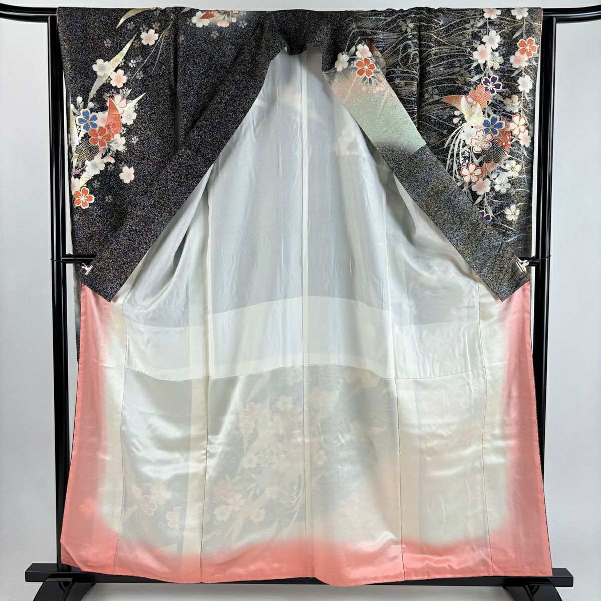 色留袖 身丈164cm 裄丈66cm M 袷 松尾光琳 落款あり 屏風 草花 金彩 灰茶 正絹 秀品 三つ紋