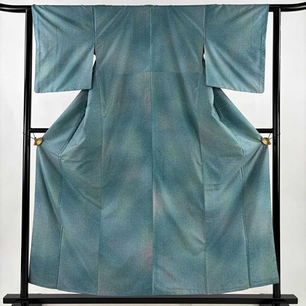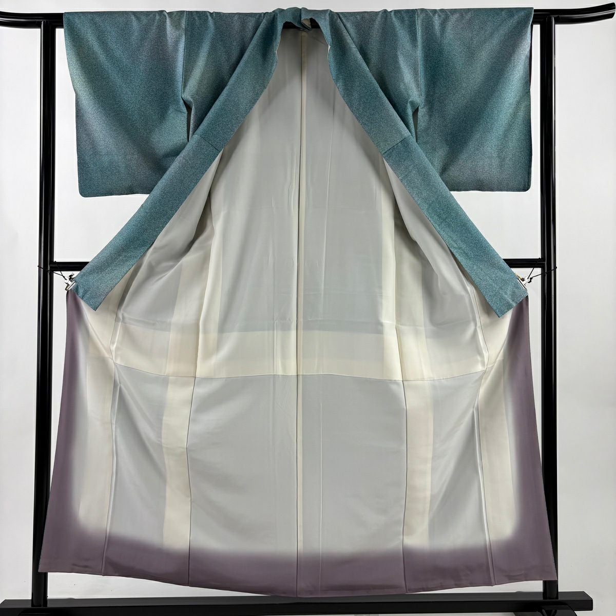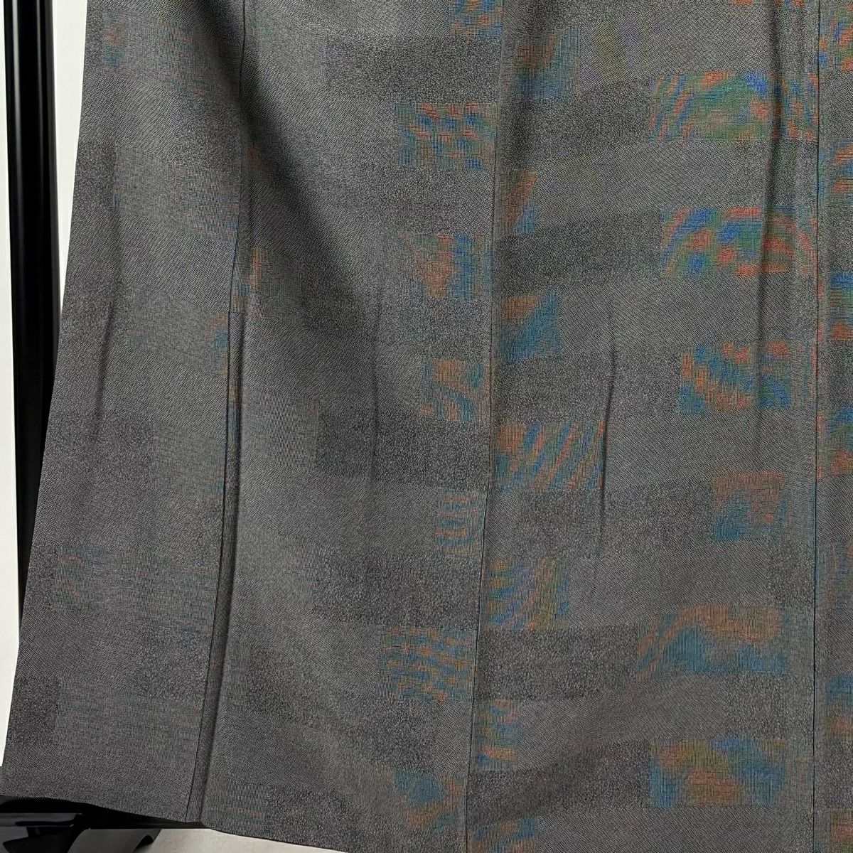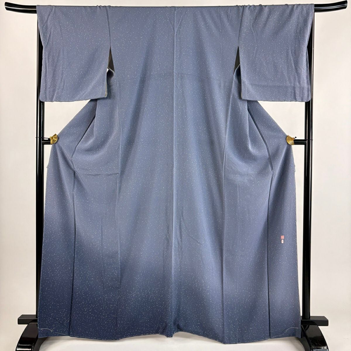 付下げ 身丈166.5cm 裄丈66.5cm M 袷 岡村岳人 落款あり 幾何学模様 裾ぼかし柄 青灰色 正絹 秀品