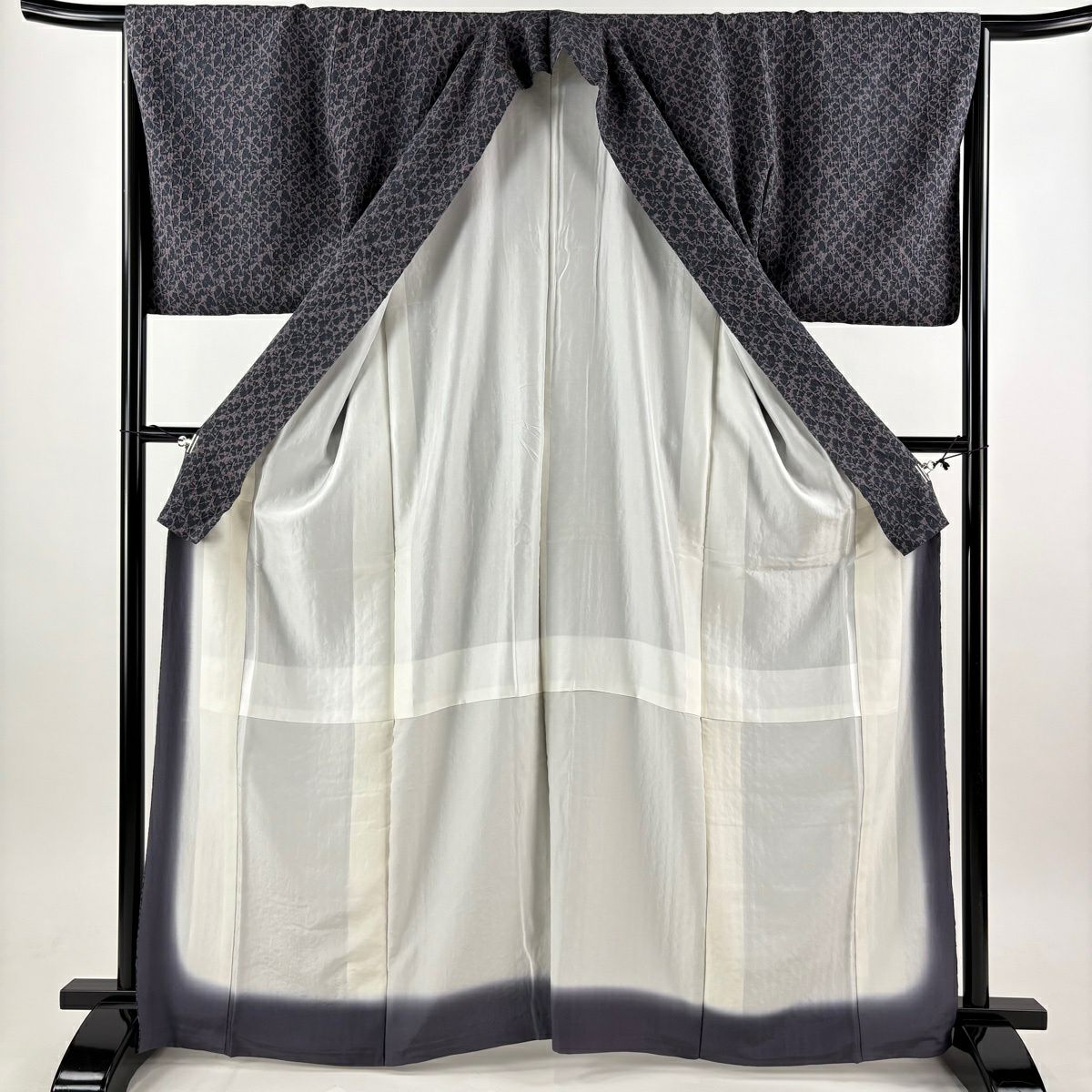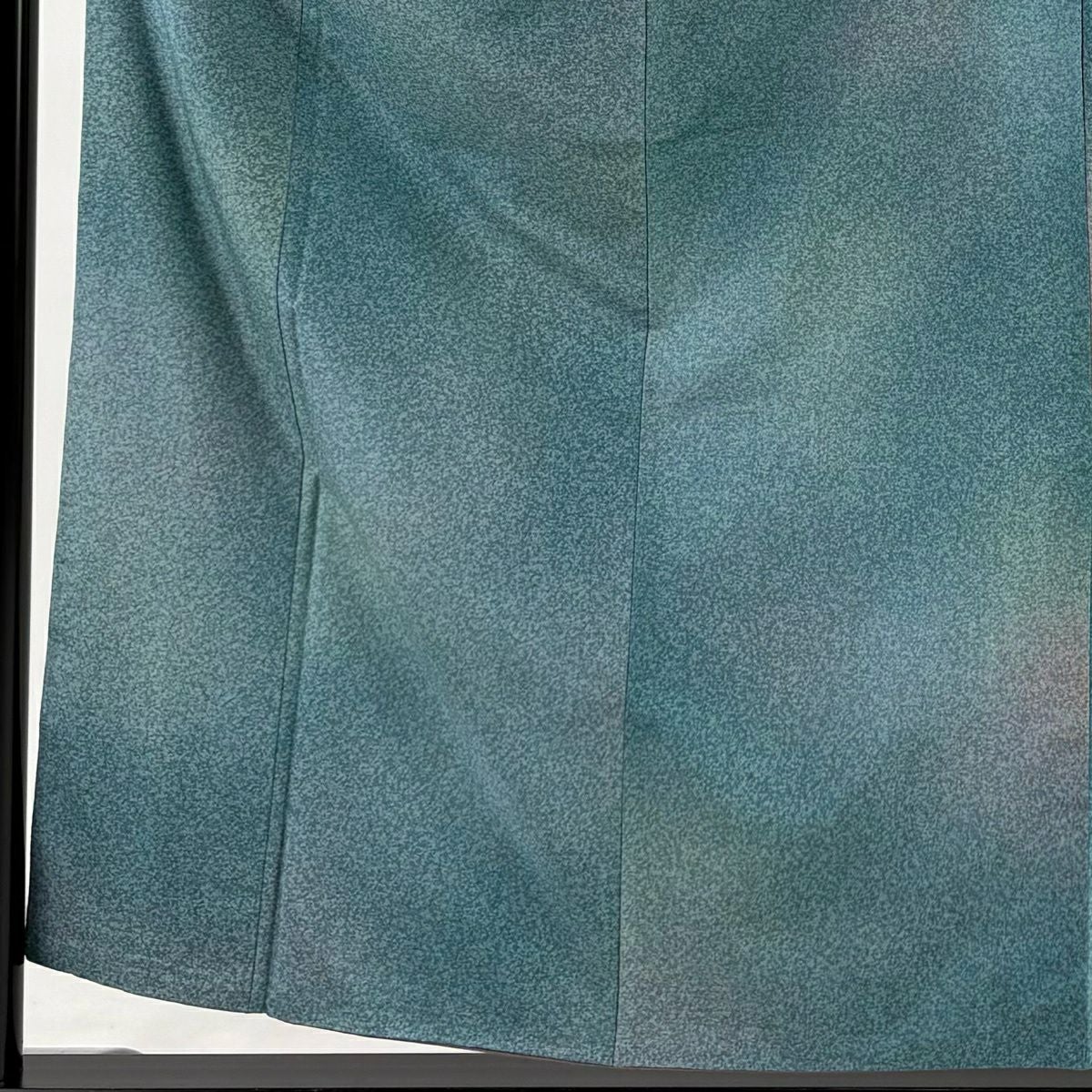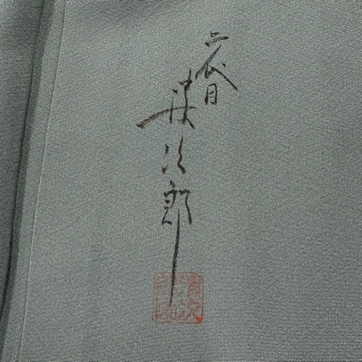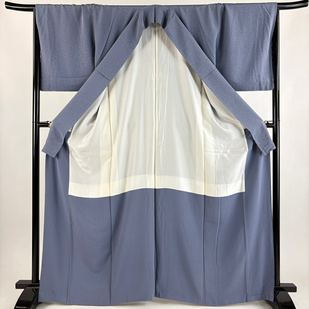 付下げ 身丈166.5cm 裄丈66.5cm M 袷 岡村岳人 落款あり 幾何学模様 裾ぼかし柄 青灰色 正絹 秀品