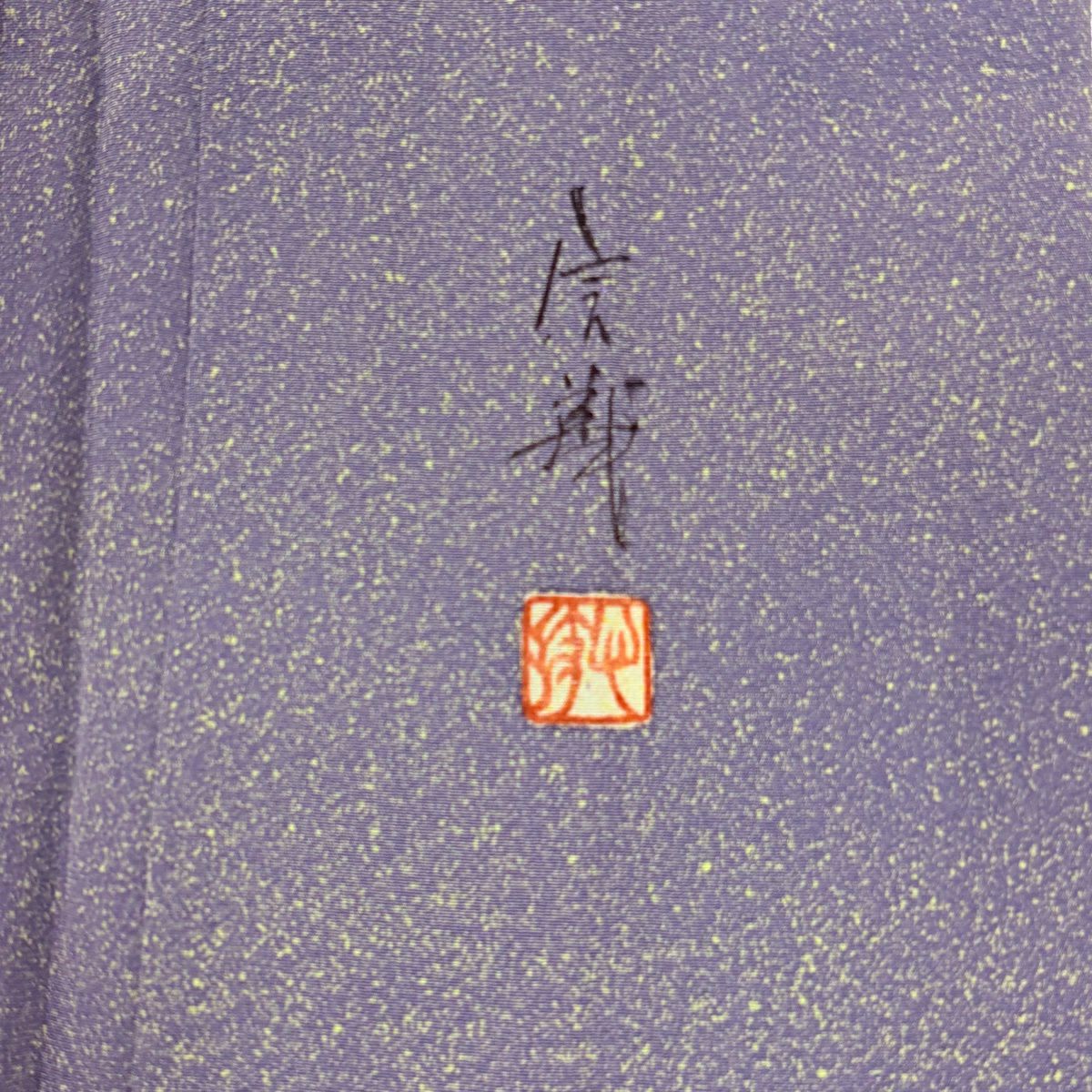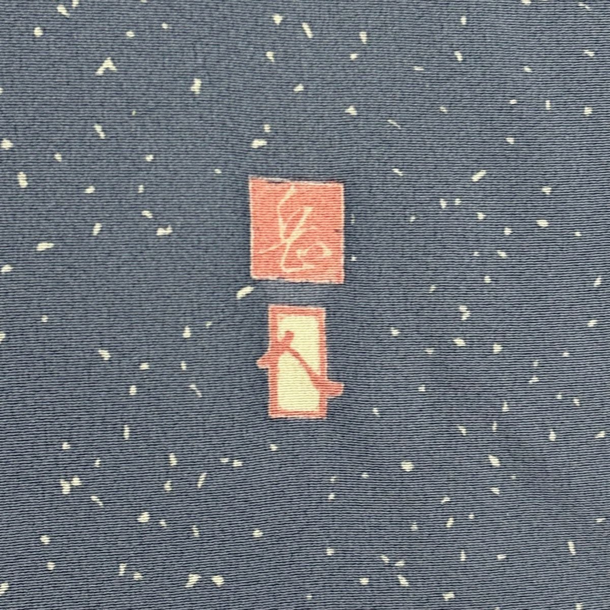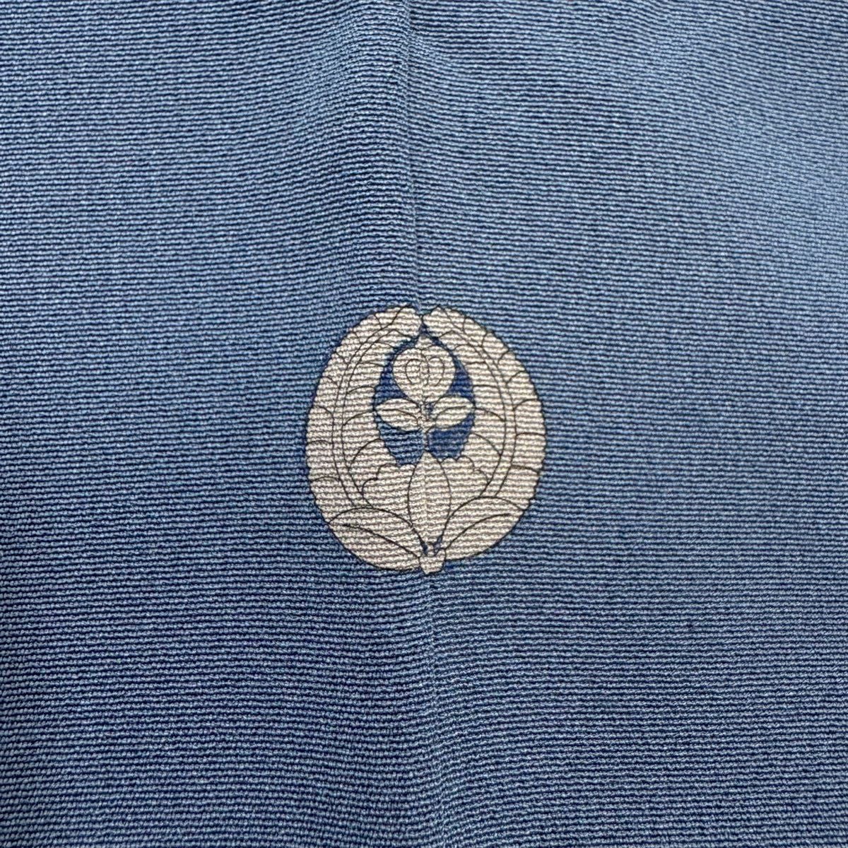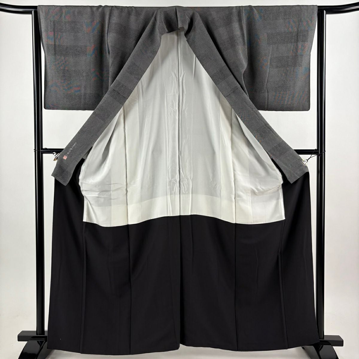 付下げ 身丈166.5cm 裄丈66.5cm M 袷 岡村岳人 落款あり 幾何学模様 裾ぼかし柄 青灰色 正絹 秀品