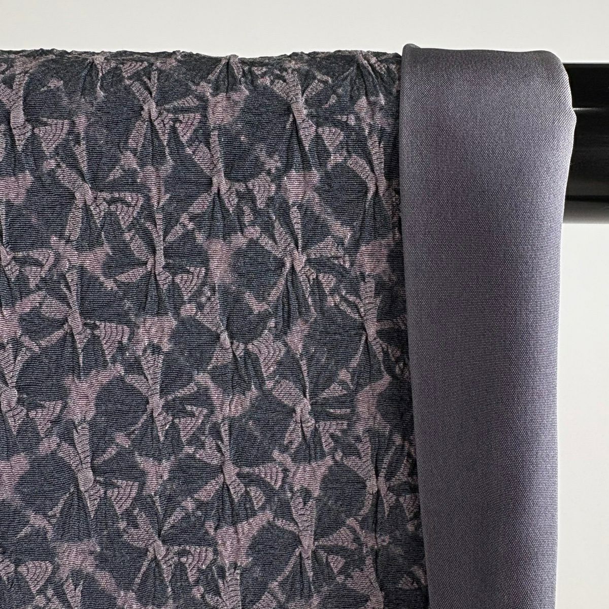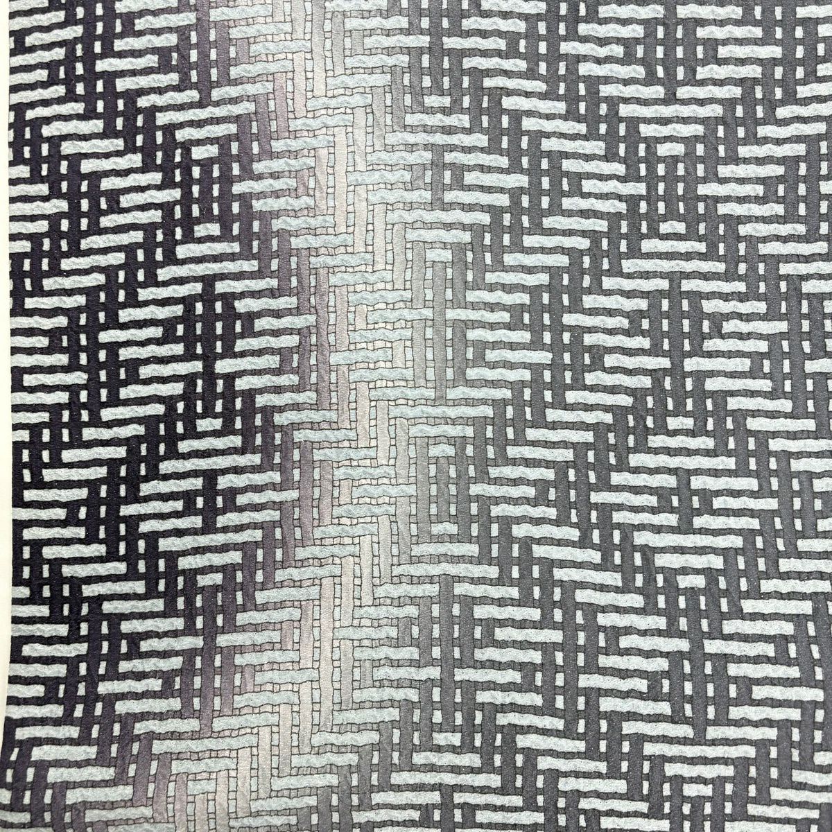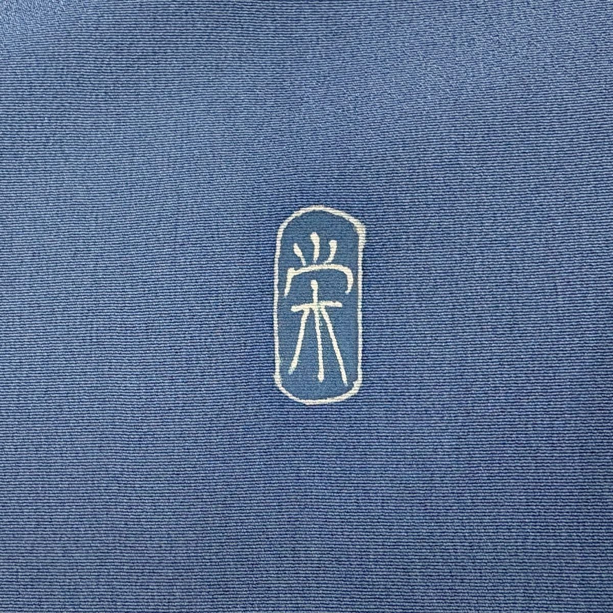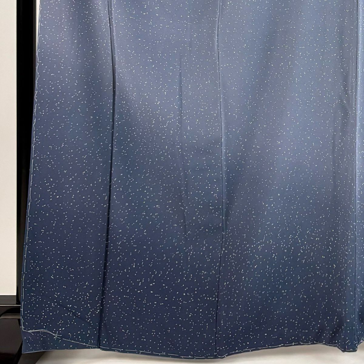 付下げ 身丈166.5cm 裄丈66.5cm M 袷 岡村岳人 落款あり 幾何学模様 裾ぼかし柄 青灰色 正絹 秀品