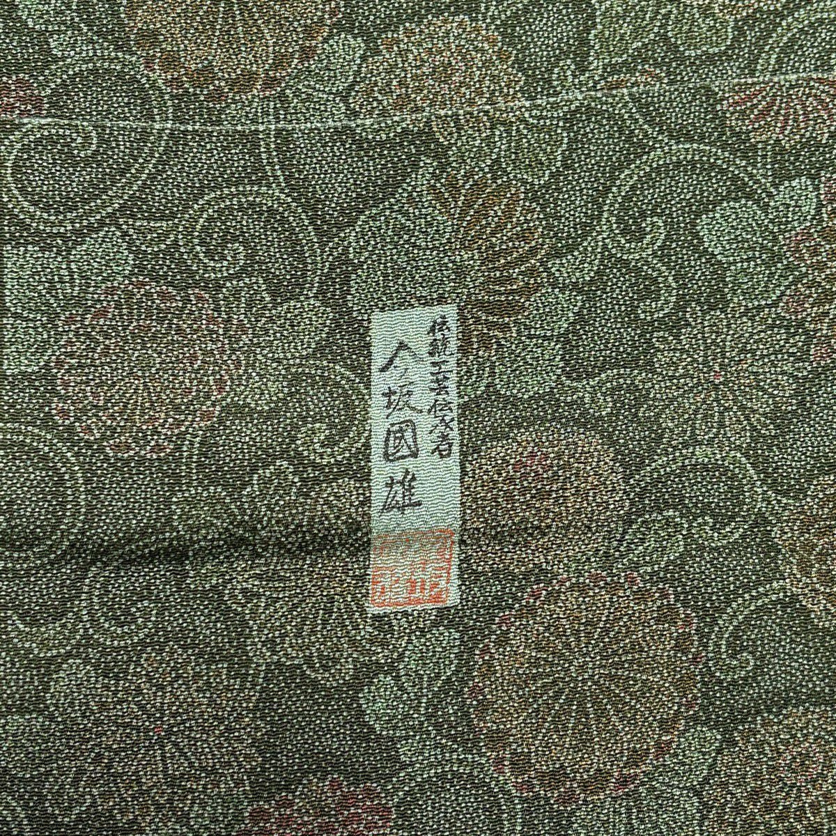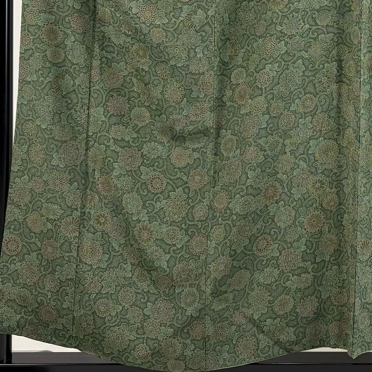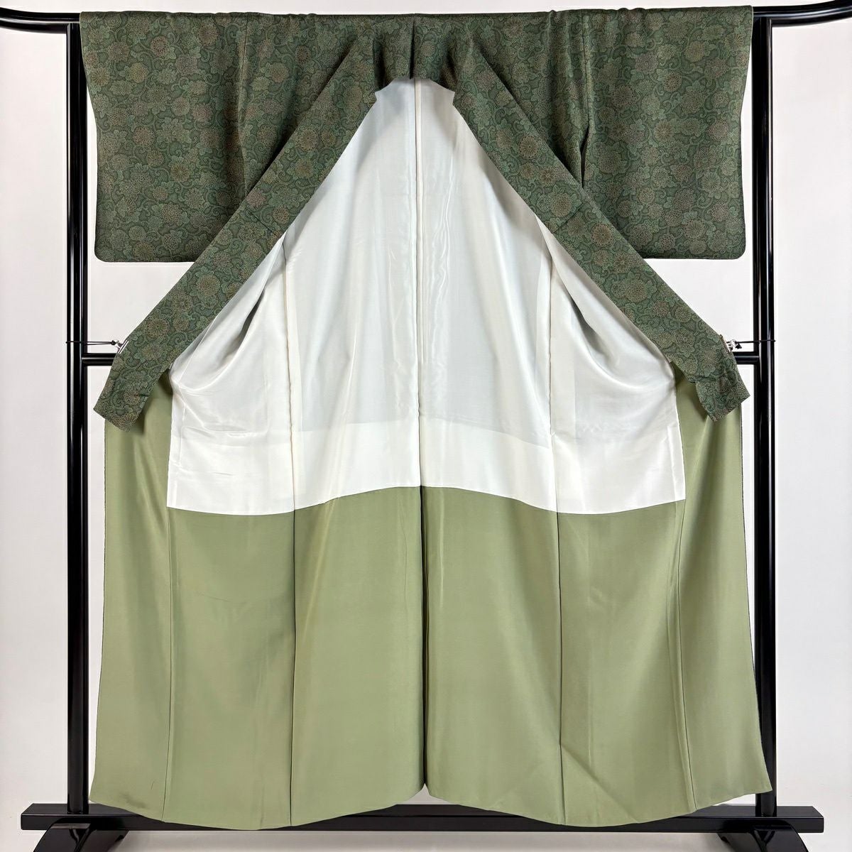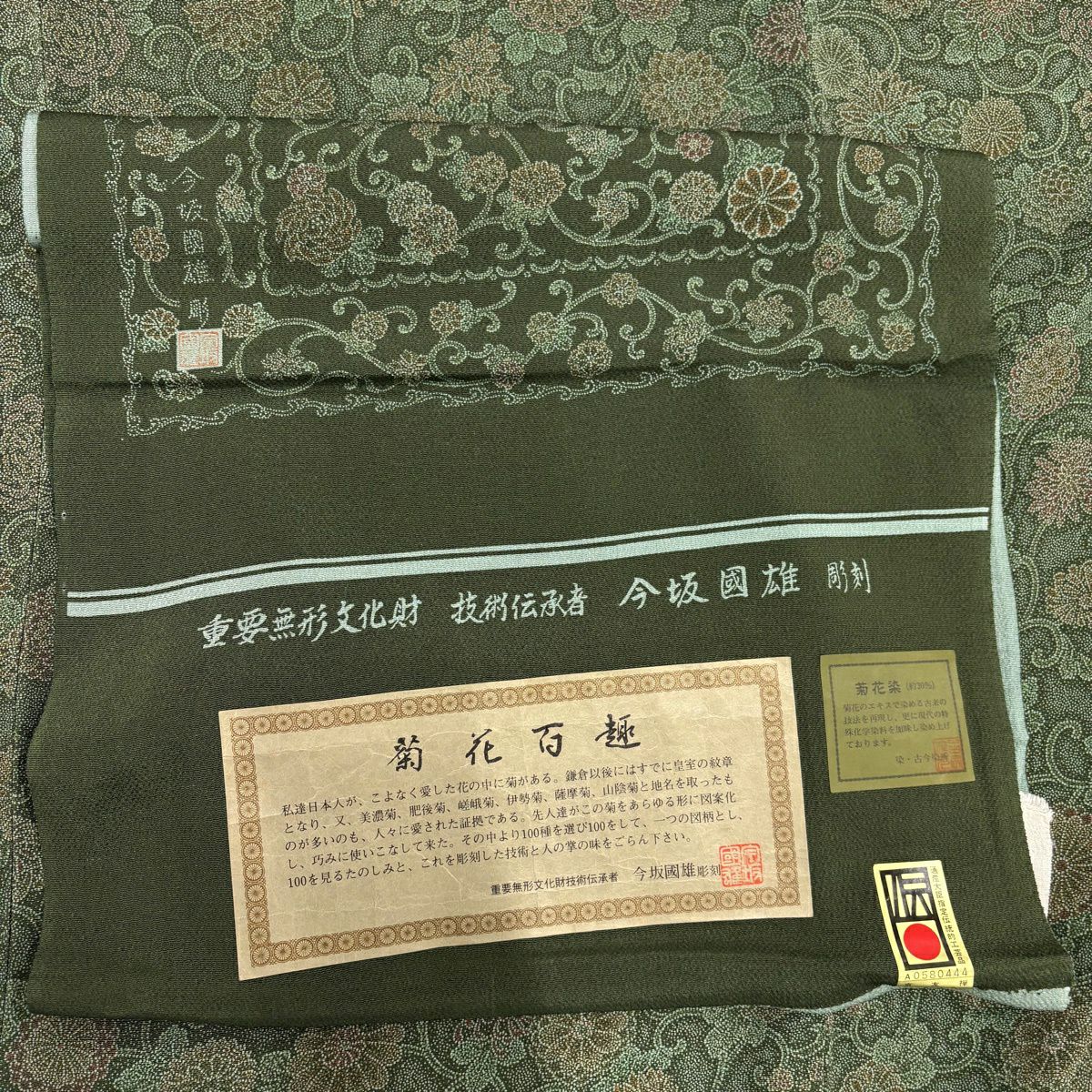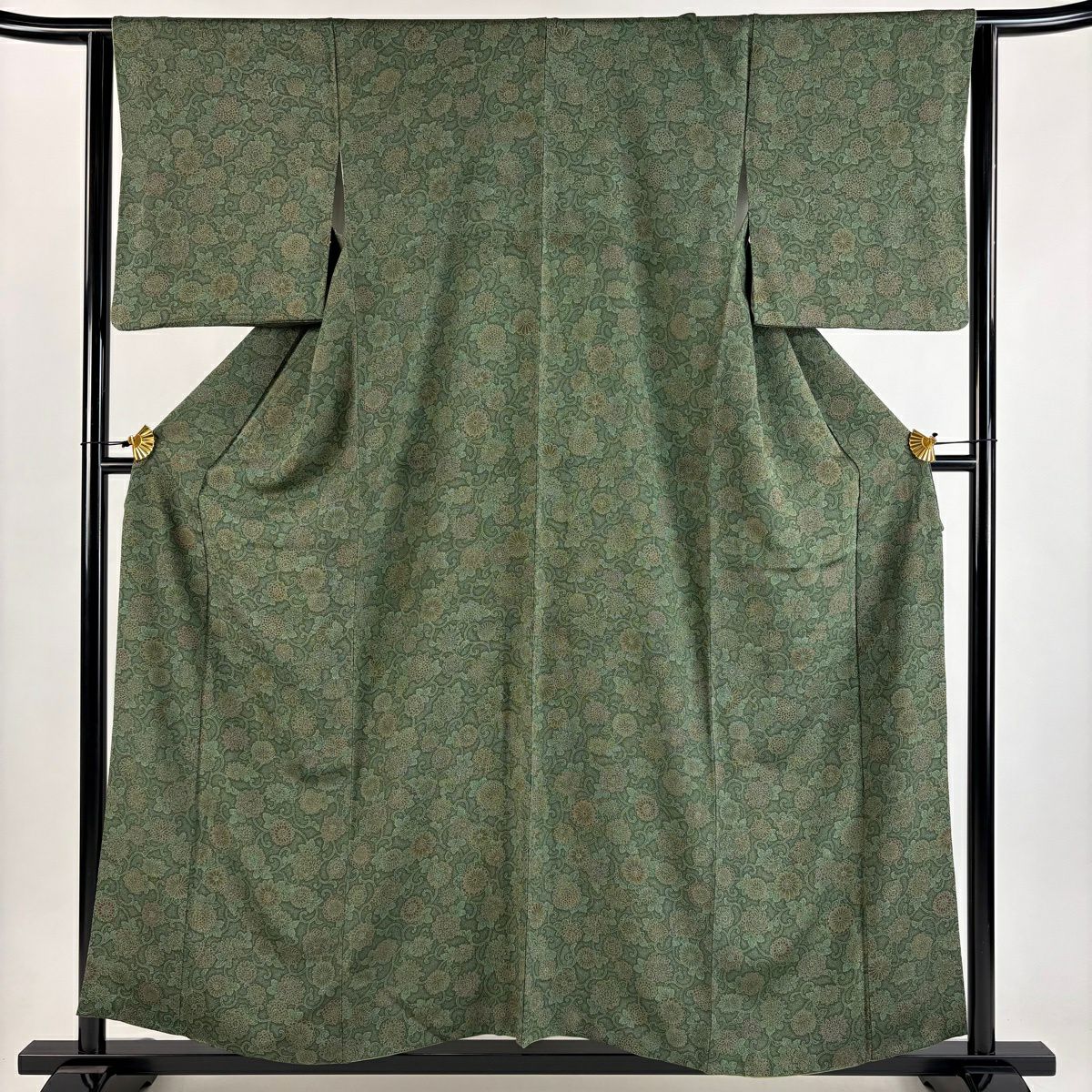 【美品】 江戸小紋 身丈156.5cm 裄丈63cm S 袷 今坂國雄 落款あり 菊花百趣 深緑 正絹 秀品