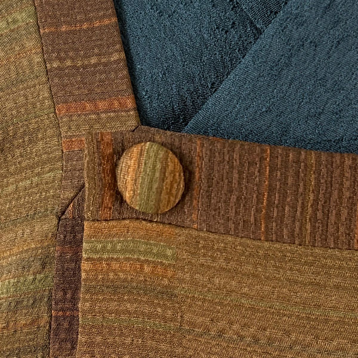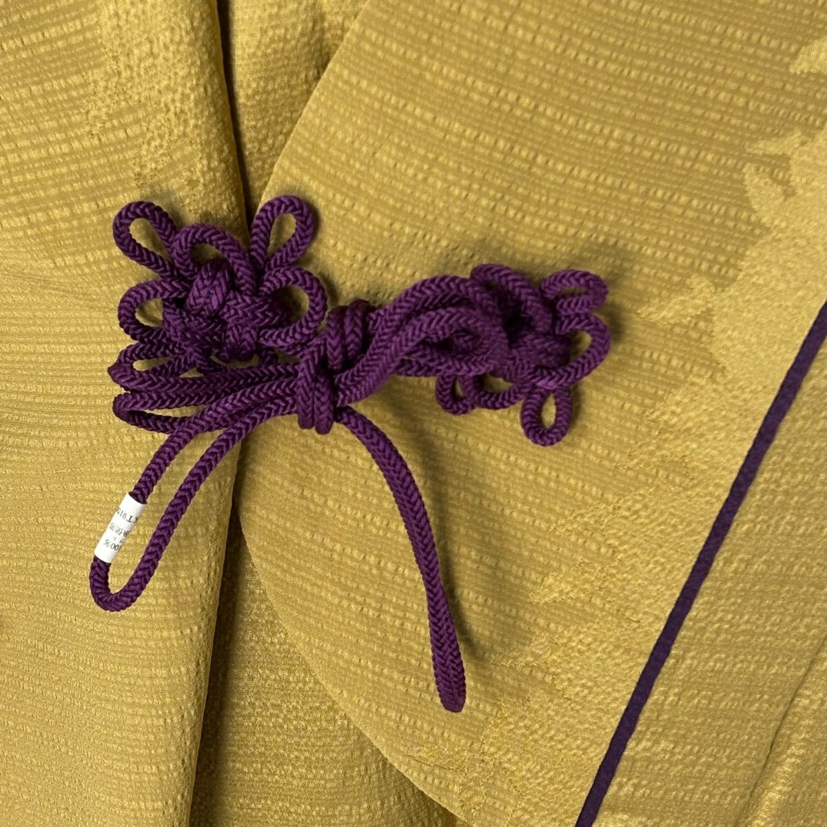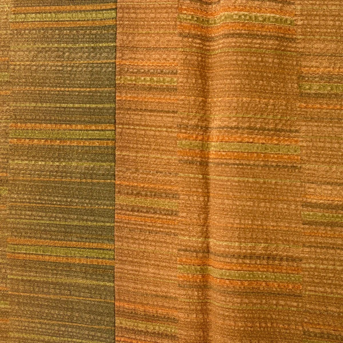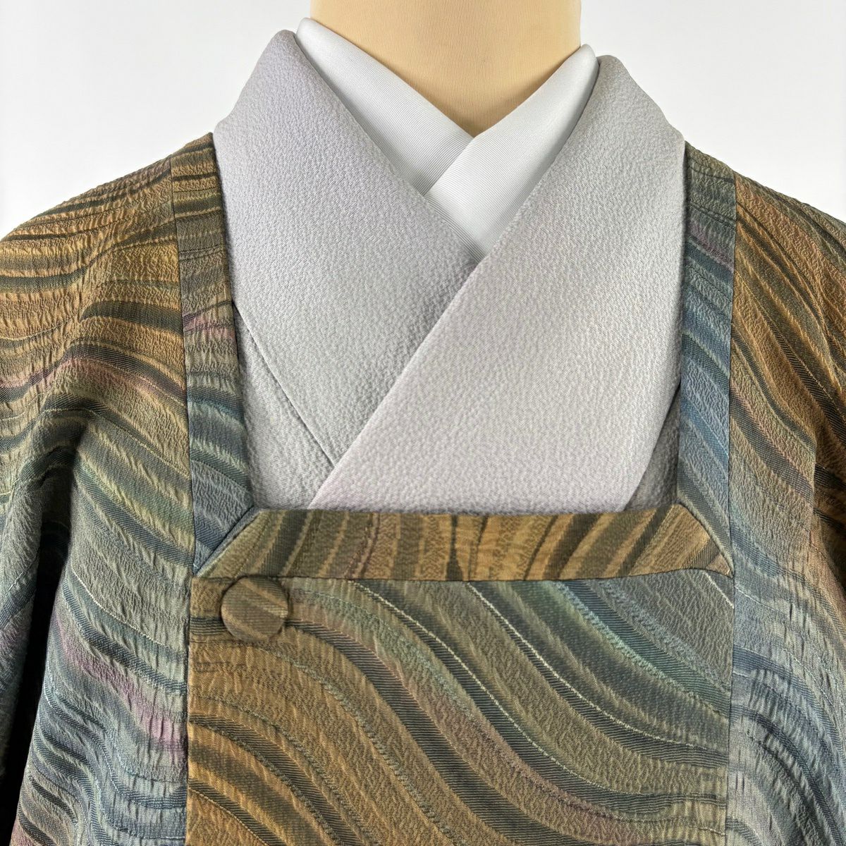 【美品】 道中着 身丈92cm 裄丈65cm M 和装コート 着物衿 シルエット 横縞 からし色 正絹 秀品