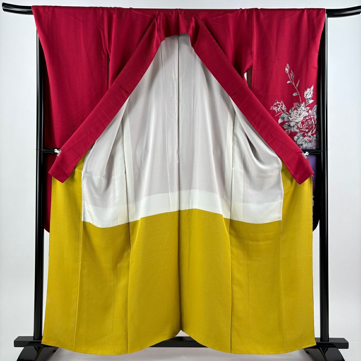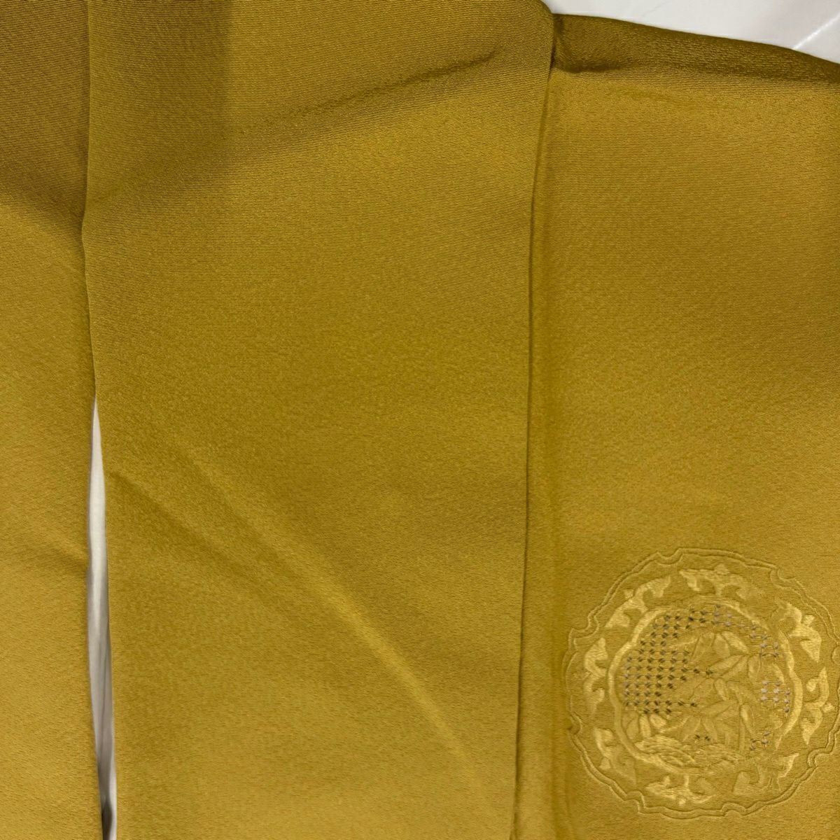 【美品】 付下げ 身丈158.5cm 裄丈63.5cm S 袷 雪輪 草花 刺繍 染め分け からし色 正絹 秀品