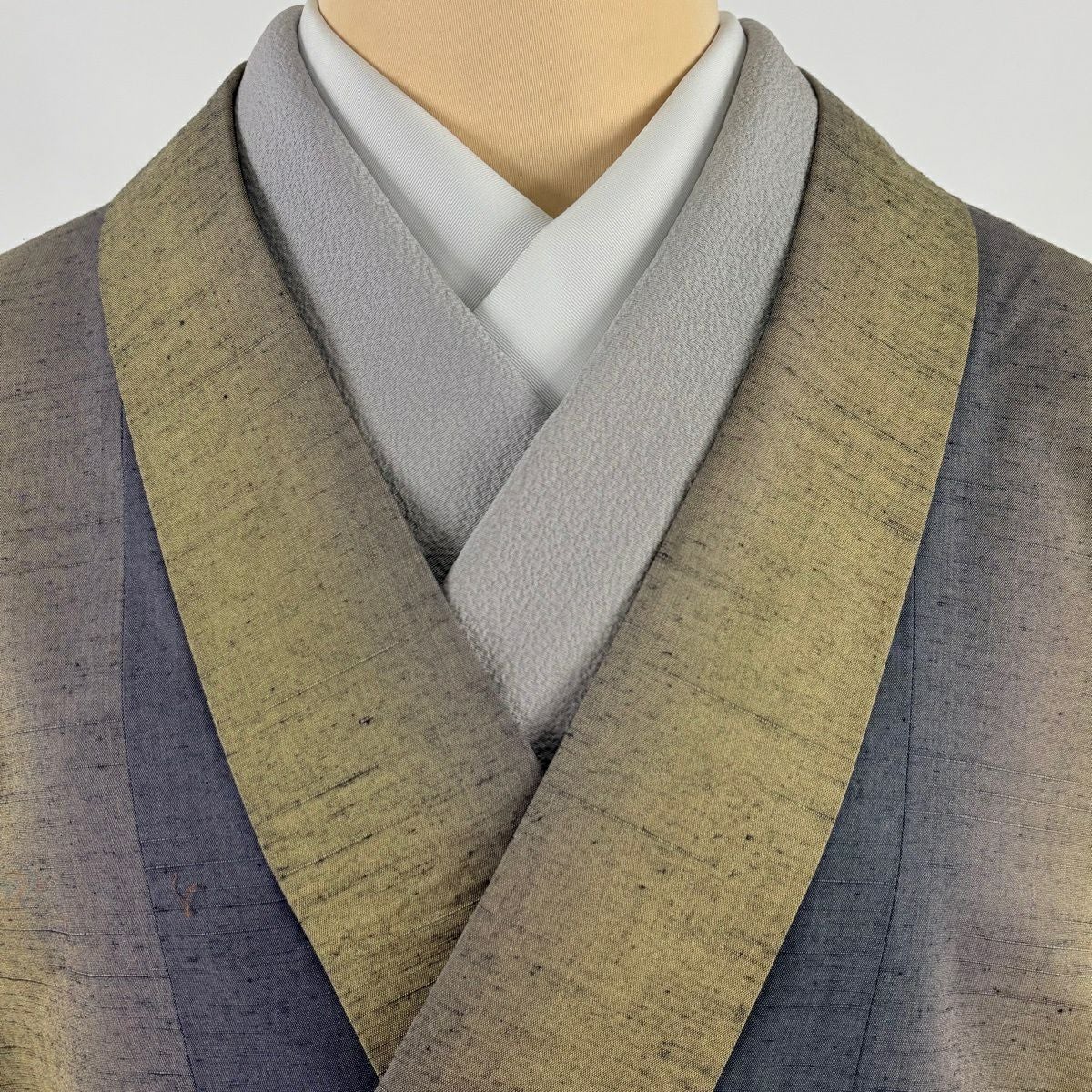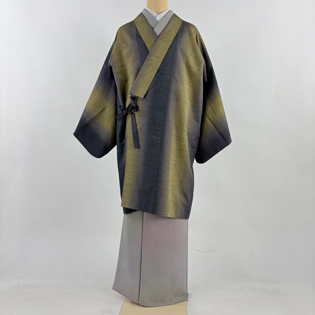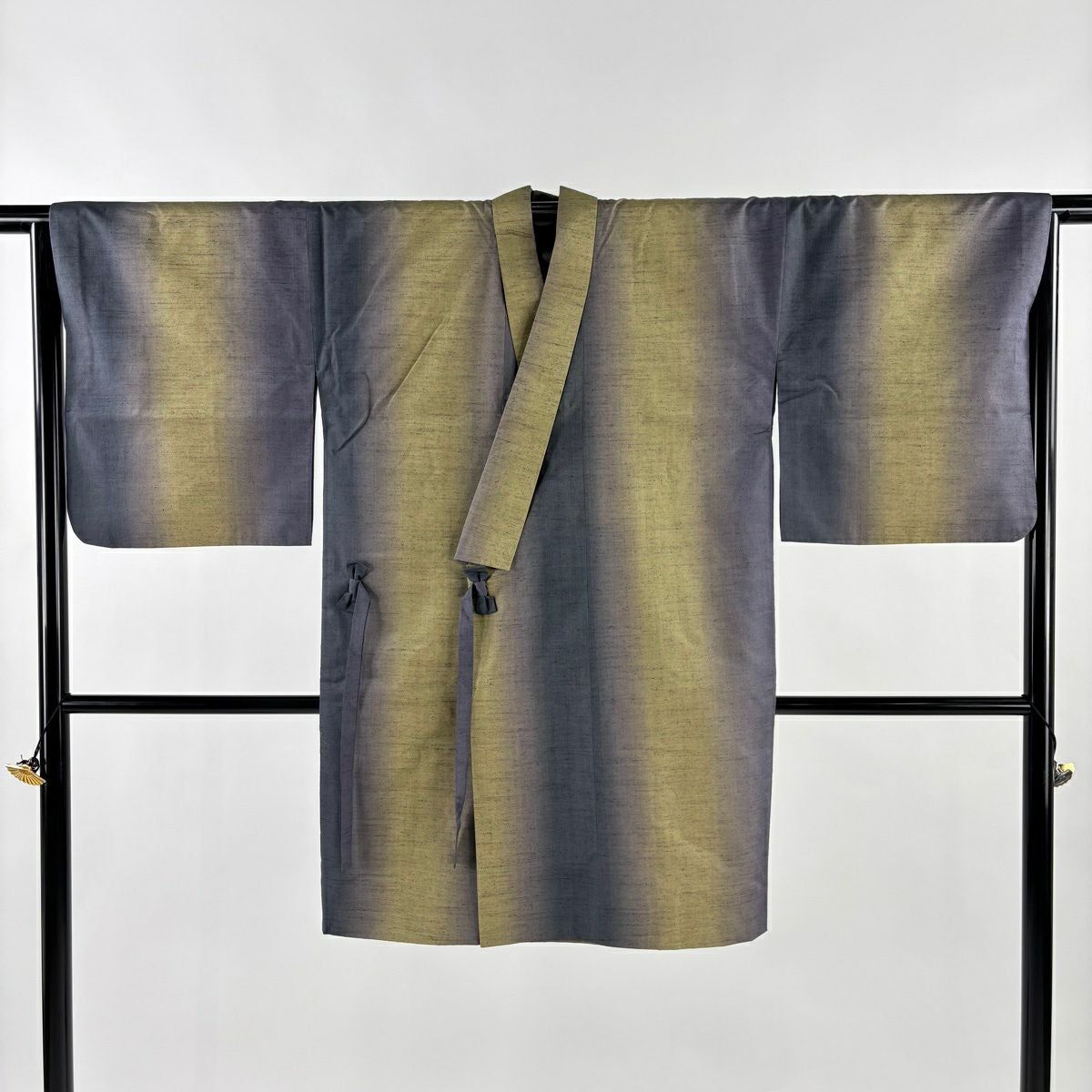 【美品】 道中着 身丈98cm 裄丈66.5cm M 和装コート 着物衿 紬地 縦ぼかし柄 灰紫 正絹 秀品
