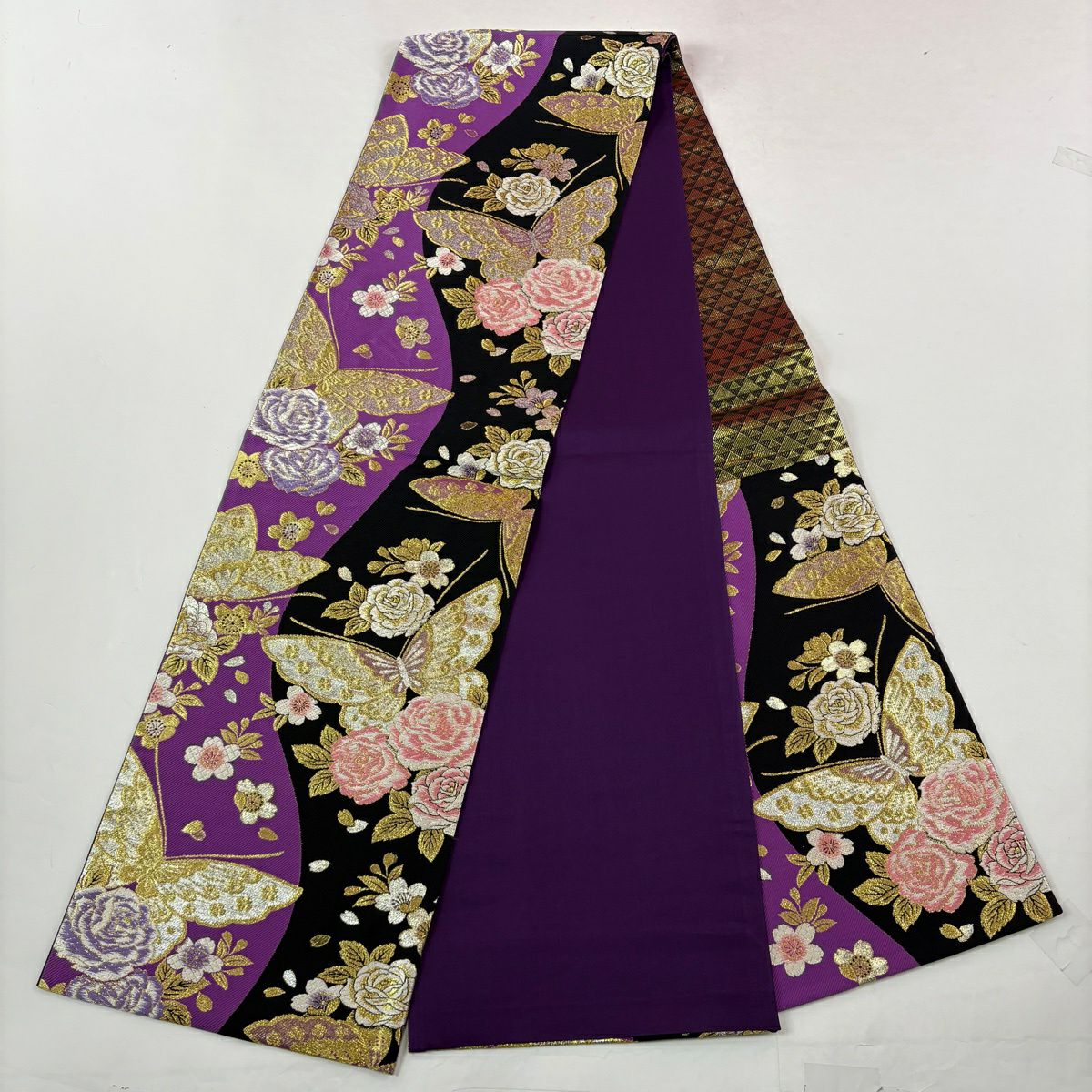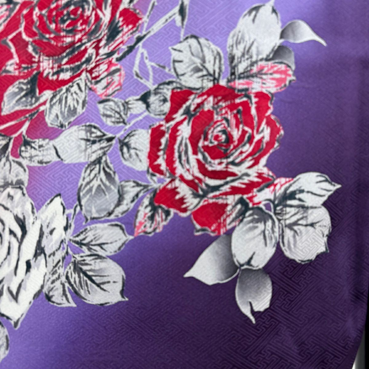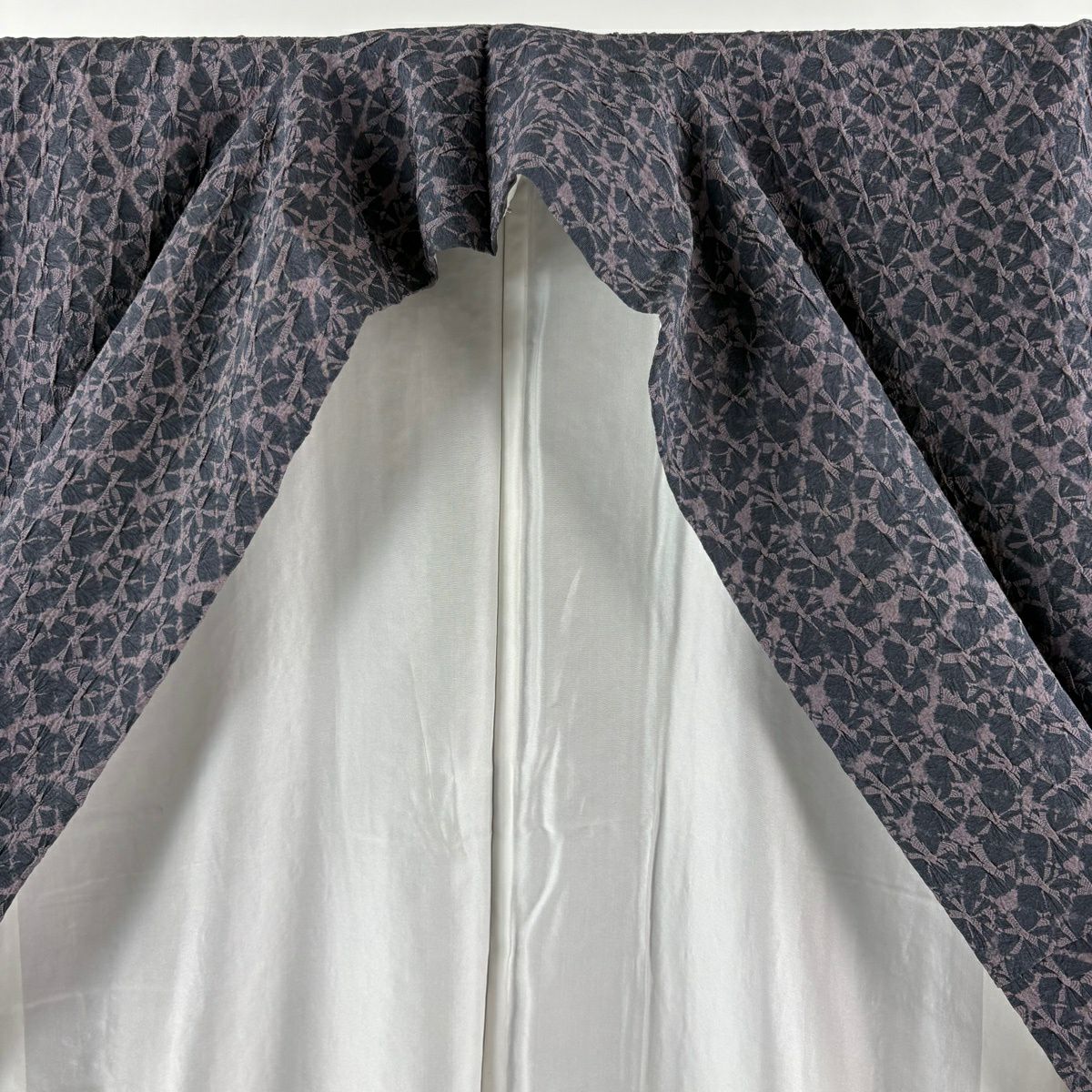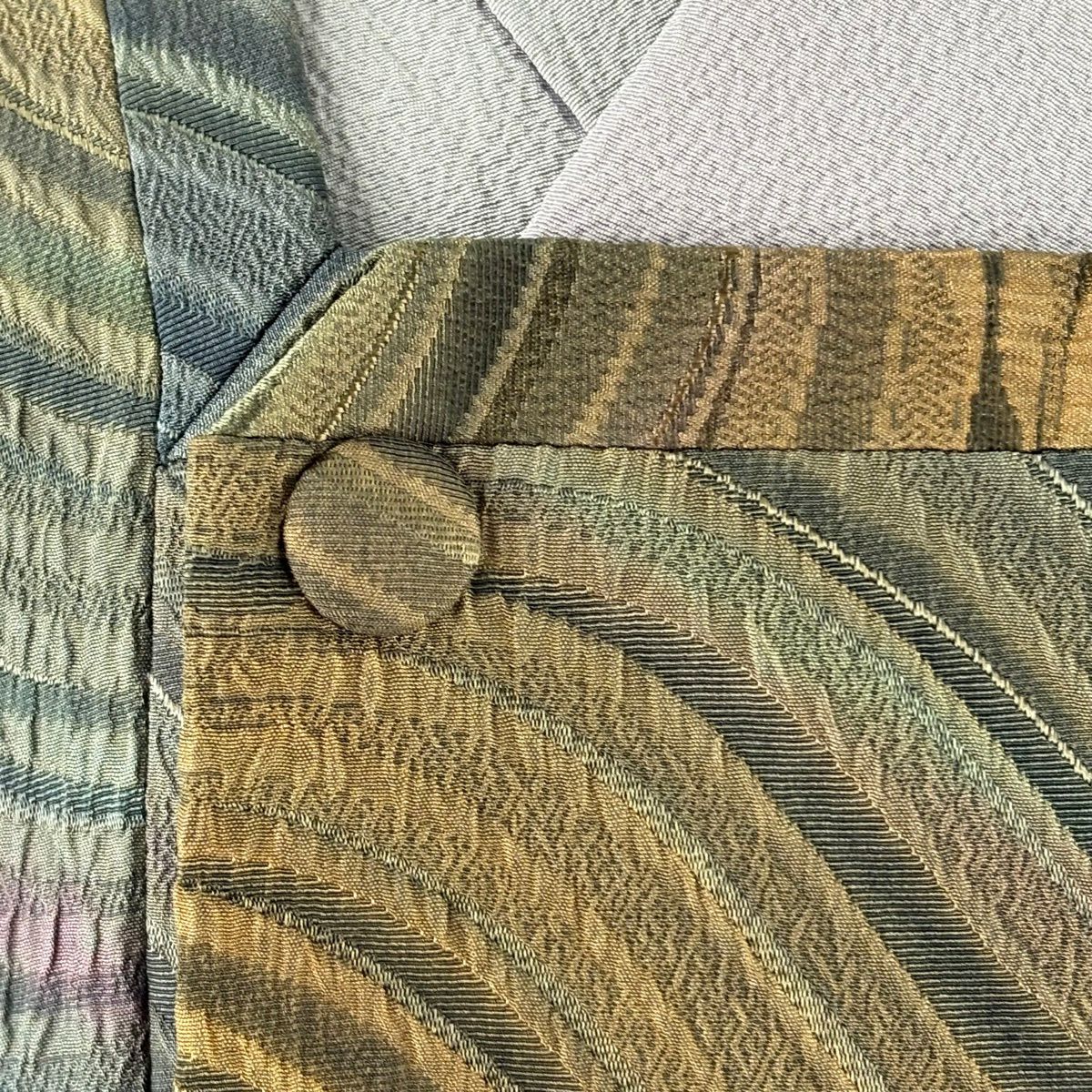 【美品】 道中着 身丈98cm 裄丈66.5cm M 和装コート 着物衿 紬地 縦ぼかし柄 灰紫 正絹 秀品
