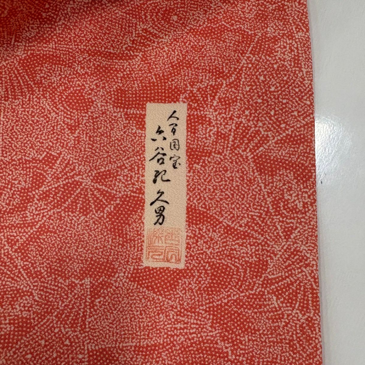 【美品】 訪問着 身丈167.5cm 裄丈66cm M 袷 草花 橘 金糸 金彩 サーモンピンク 正絹 秀品