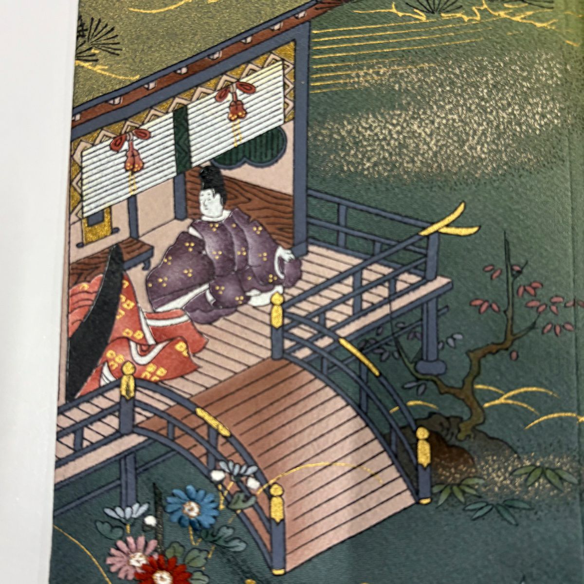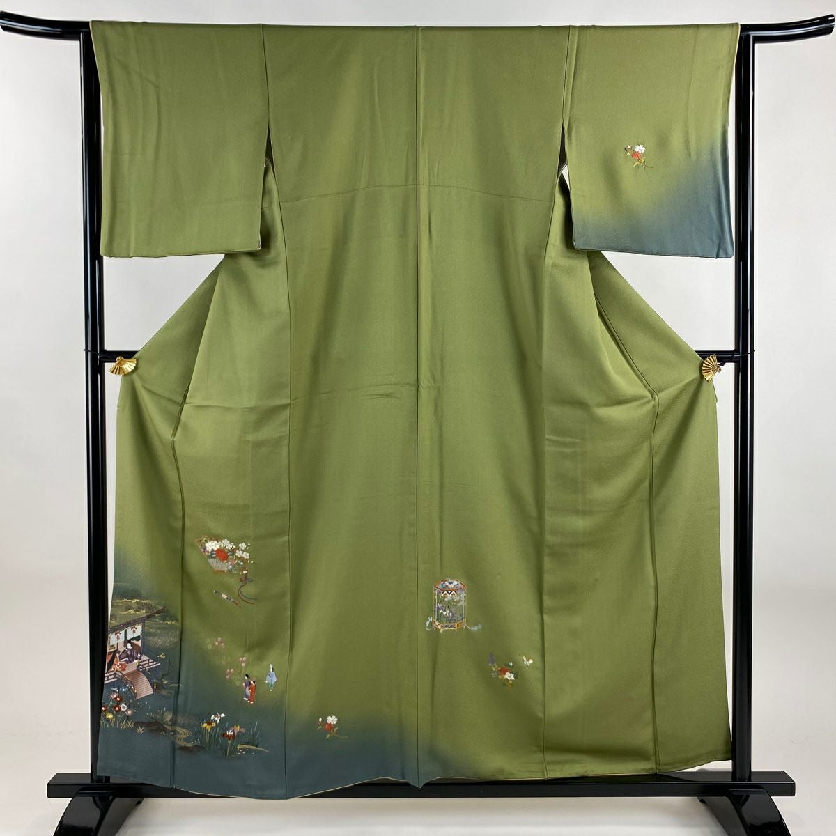 【在庫一掃】 訪問着 身丈156cm 裄丈62.5cm S 袷 落款あり 松竹梅 橋 ぼかし 緑 正絹 秀品