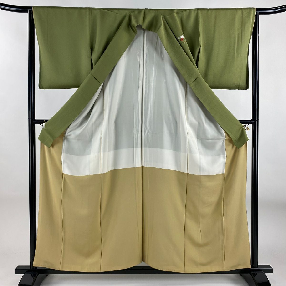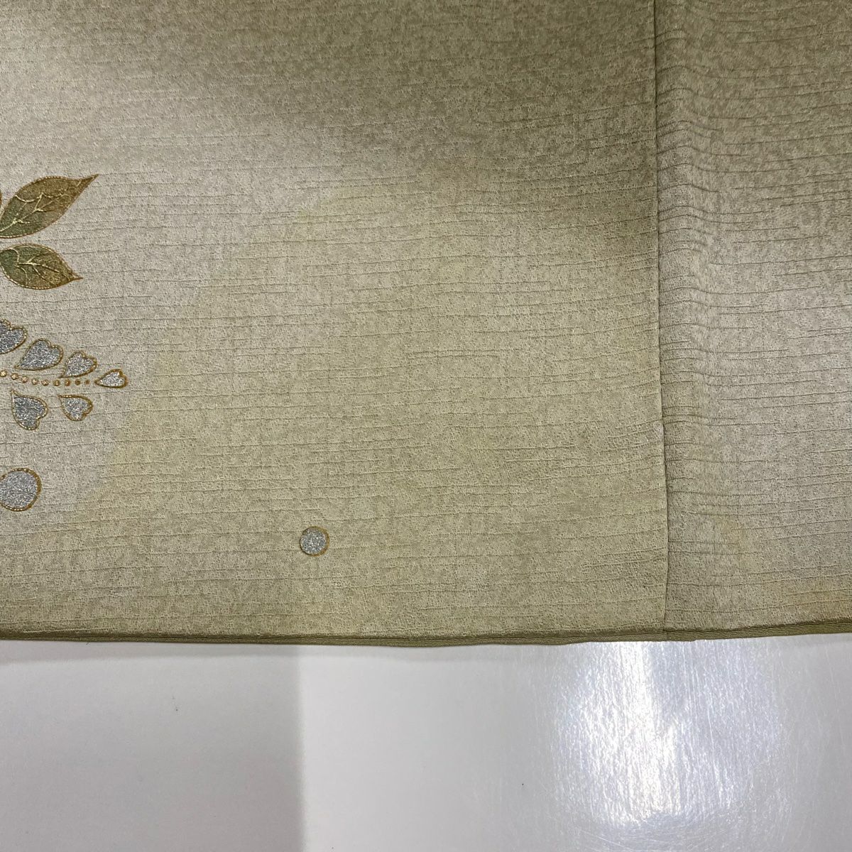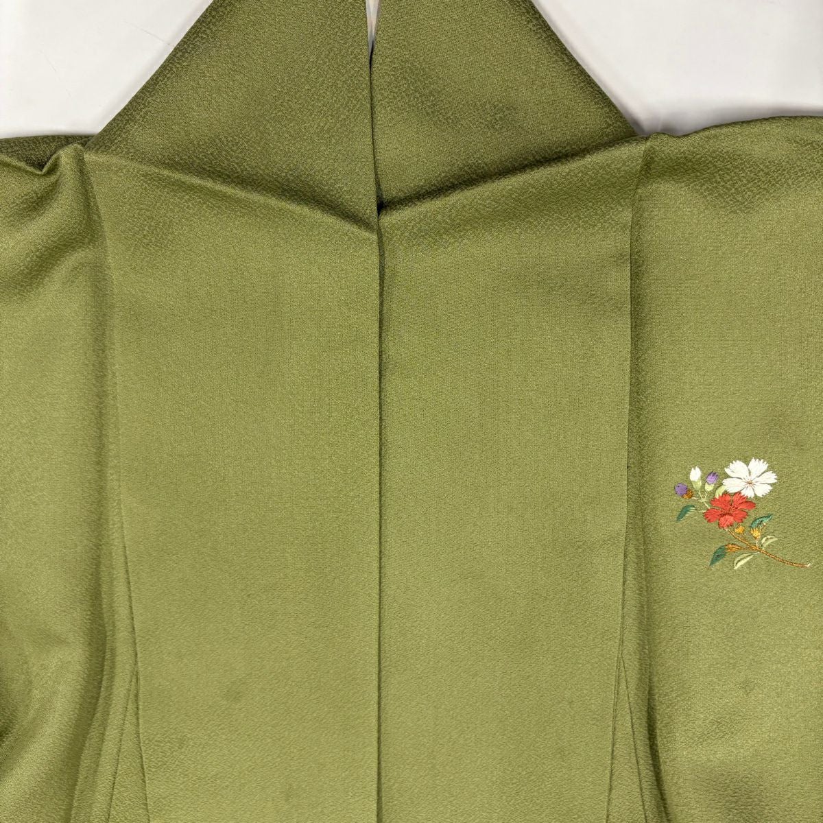【在庫一掃】 付下げ 身丈161.5cm 裄丈63.5cm S 袷 雪輪 草花 刺繍 霞ぼかし 鶯色 正絹 秀品