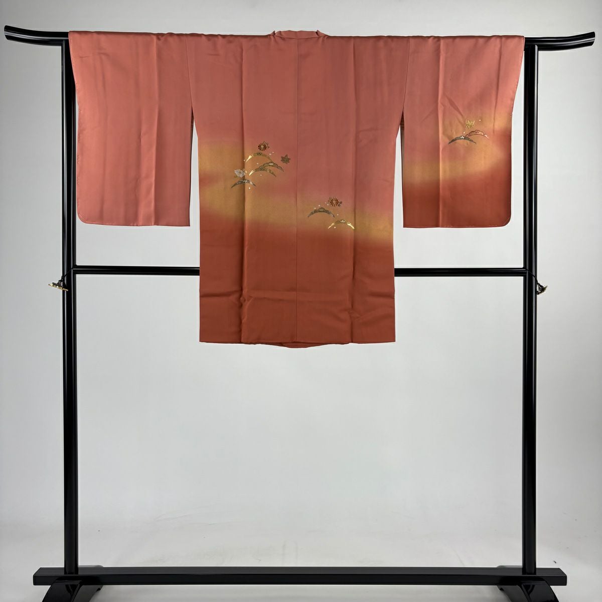 【在庫一掃】 訪問着 身丈160cm 裄丈63cm S 袷 橘 箔散らし柄 金彩 染め分け 茜色 正絹 秀品