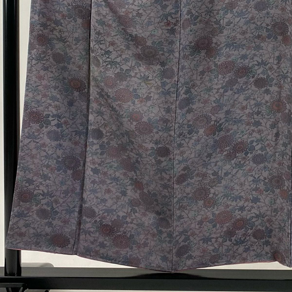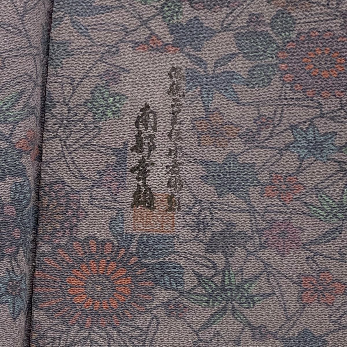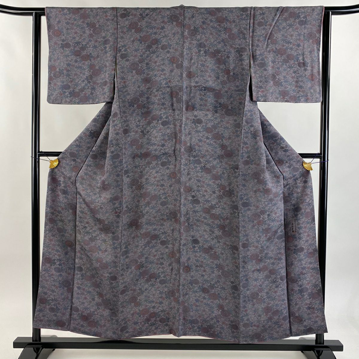 【美品】 訪問着 身丈163.5cm 裄丈65.5cm M 袷 落款あり 草花 幾何学模様 金彩 灰紫 正絹 秀品