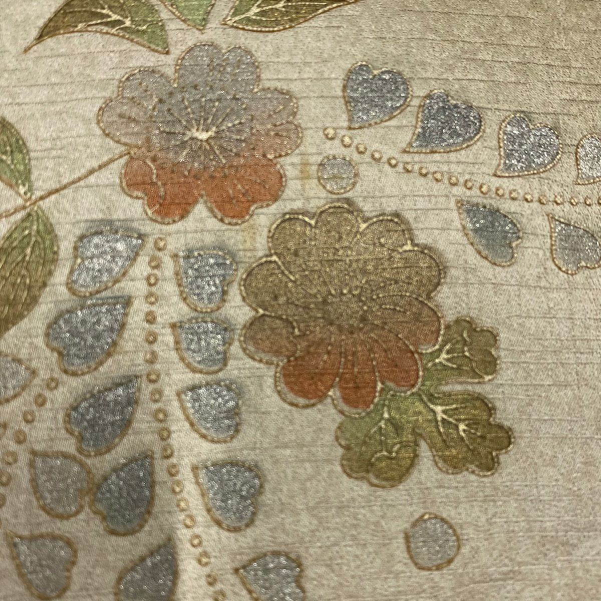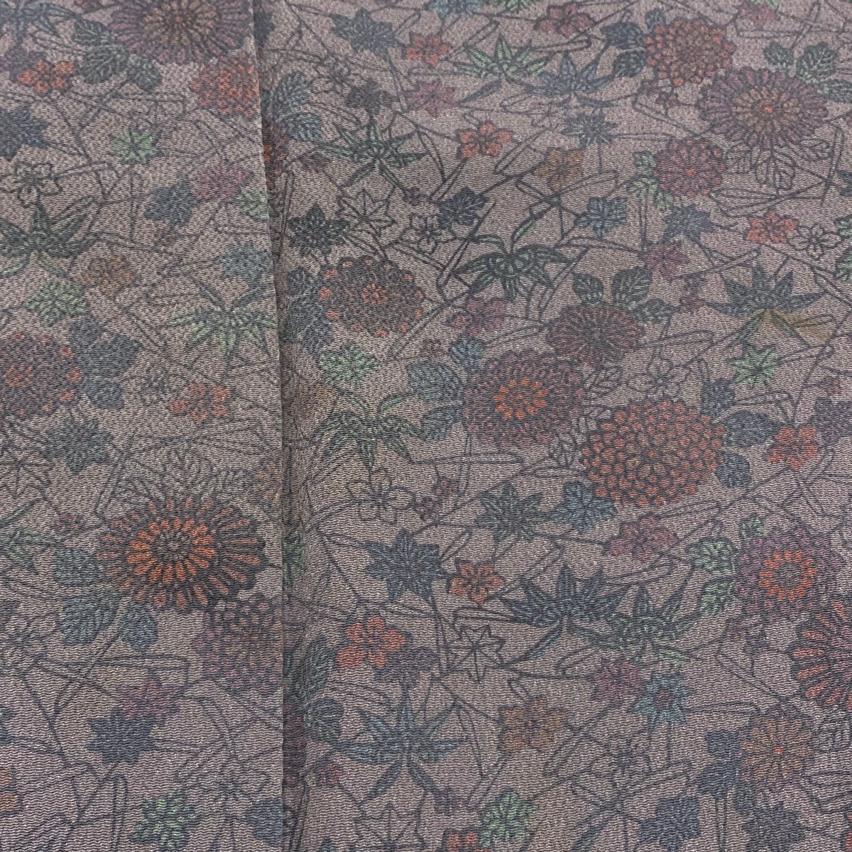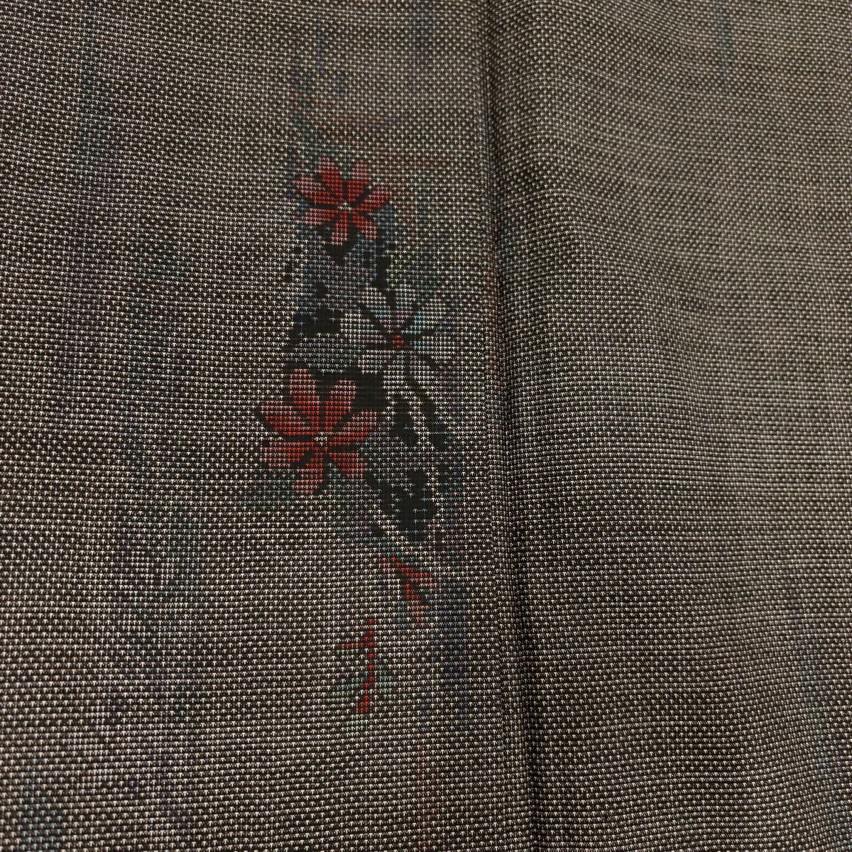 【在庫一掃】 付下げ 身丈164cm 裄丈64.5cm M 袷 紬地 落款あり 草花 金彩 灰茶 正絹 秀品