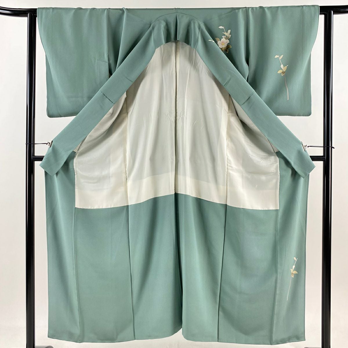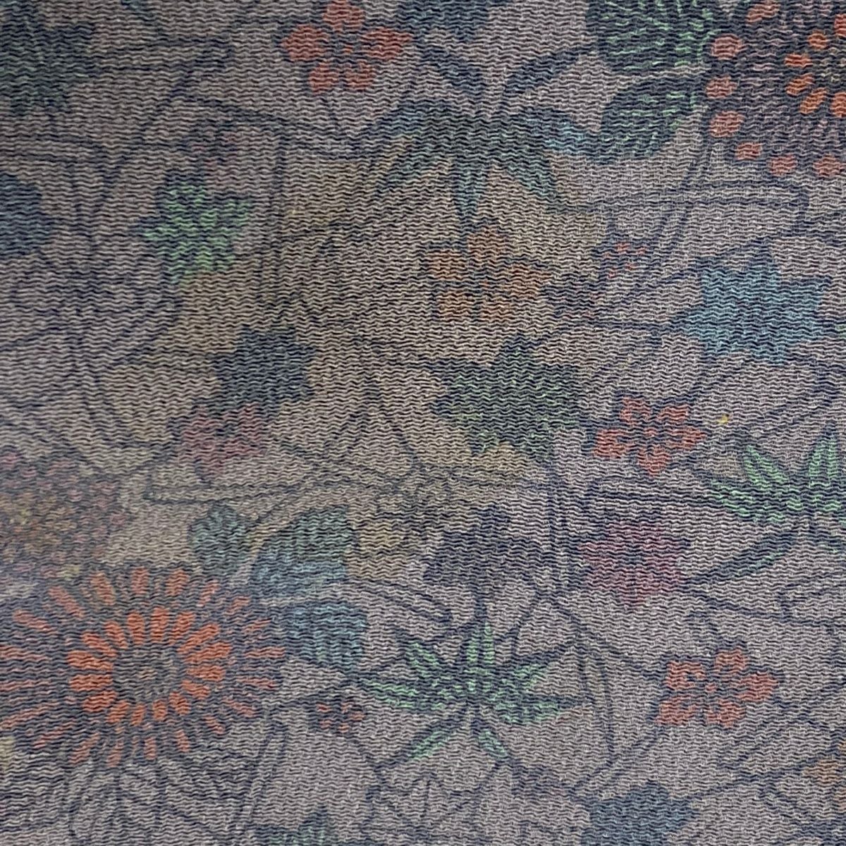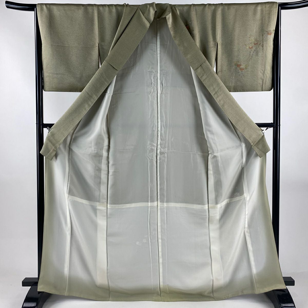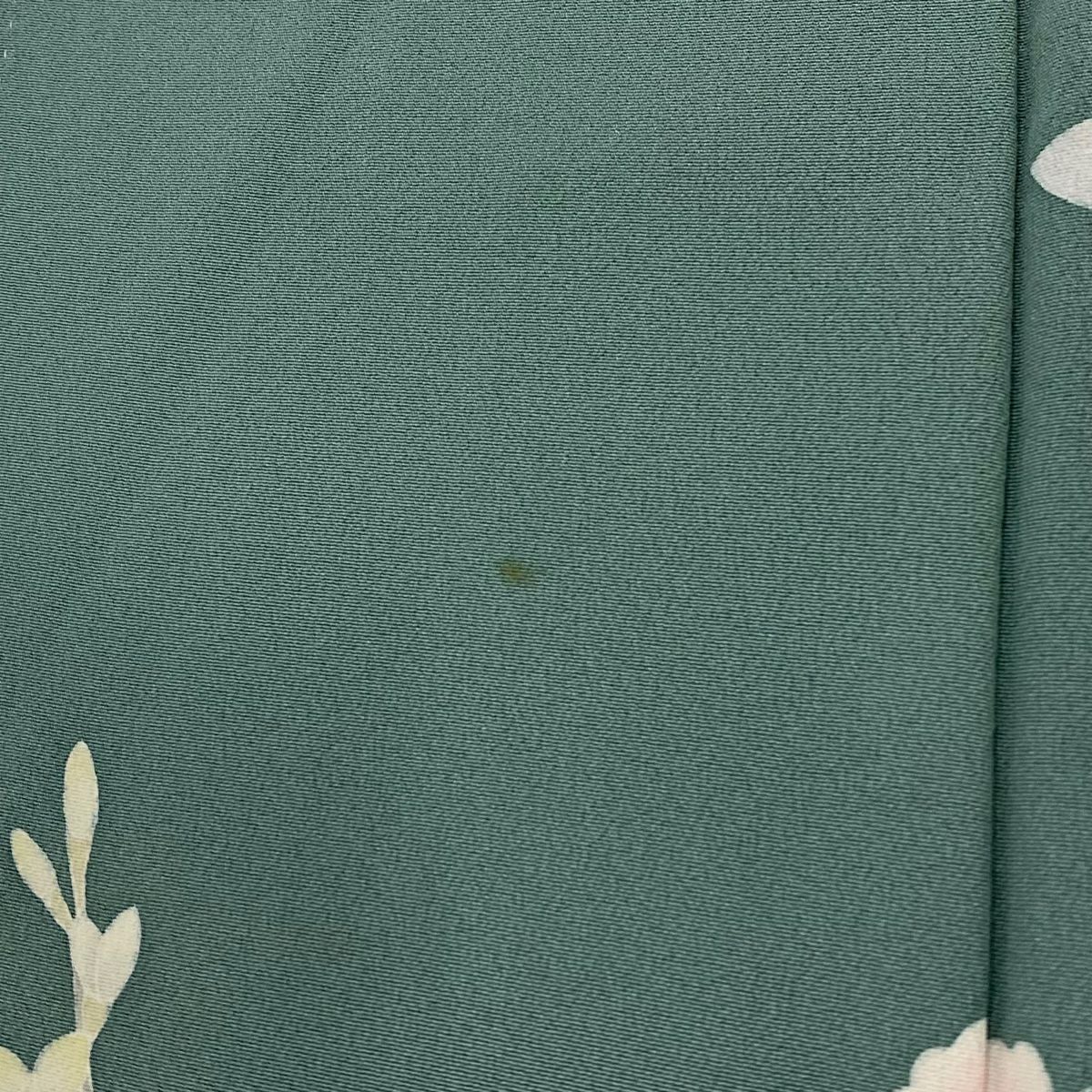 【在庫一掃】 付下げ 身丈163cm 裄丈67cm M 袷 草花 流水 刺繍 金彩 灰緑 正絹 秀品 一つ紋