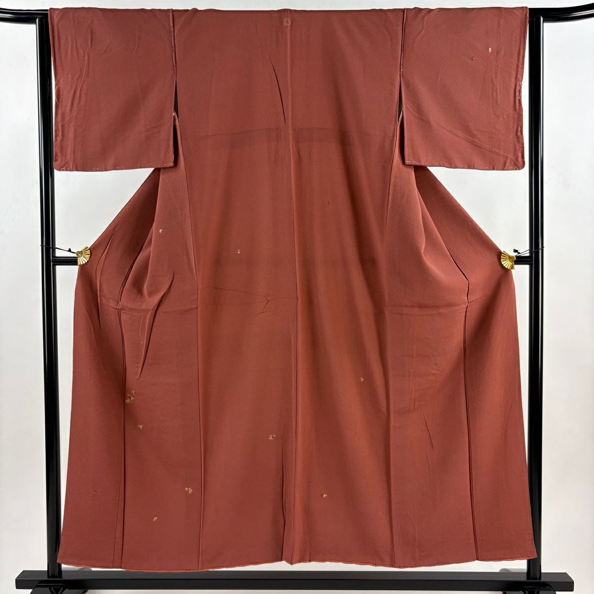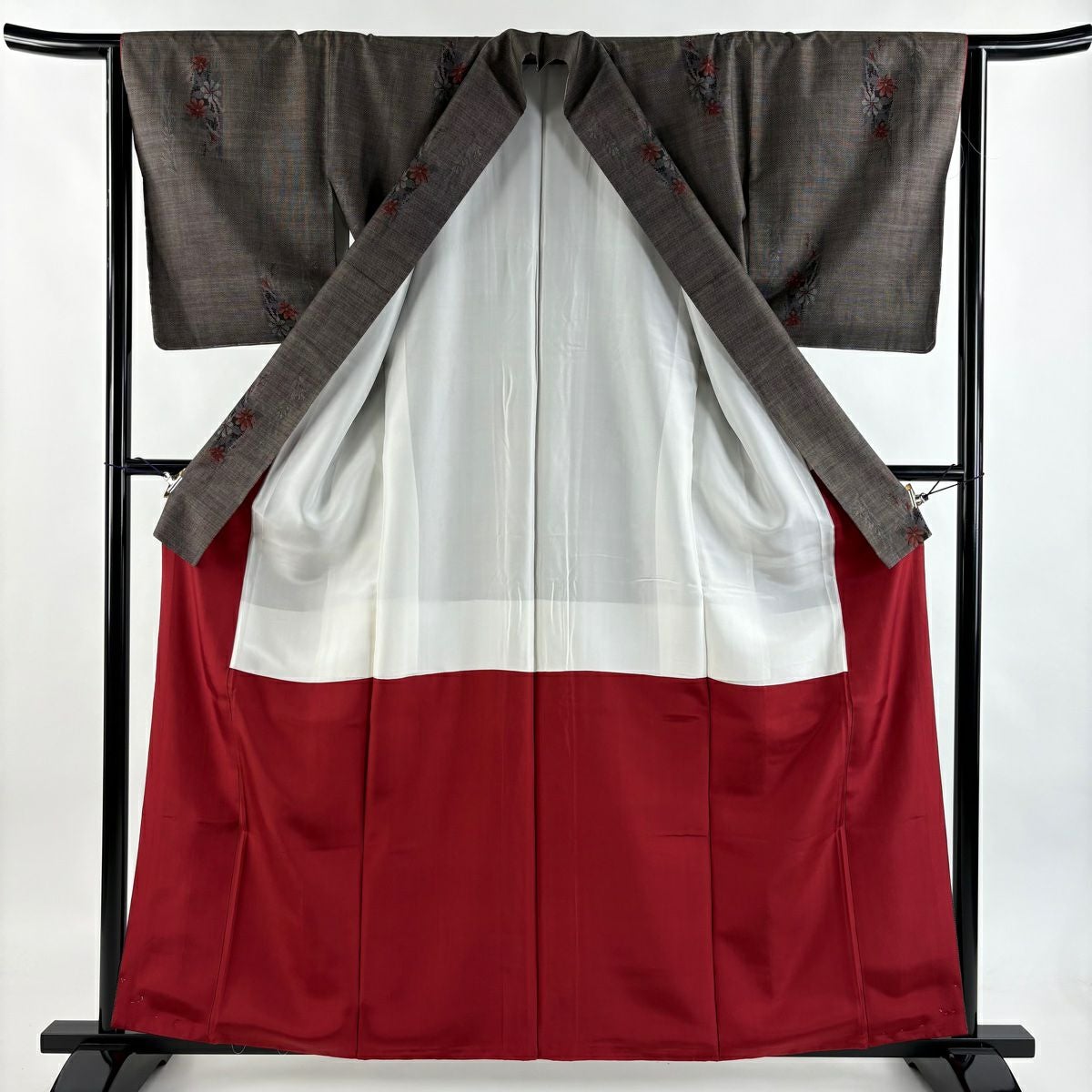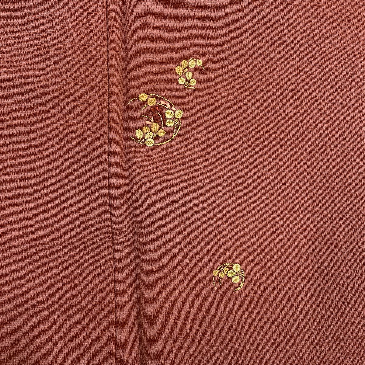 【在庫一掃】 付下げ 身丈160cm 裄丈65cm M 袷 宝尽くし 格子 刺繍 小豆色 正絹 秀品 一つ紋