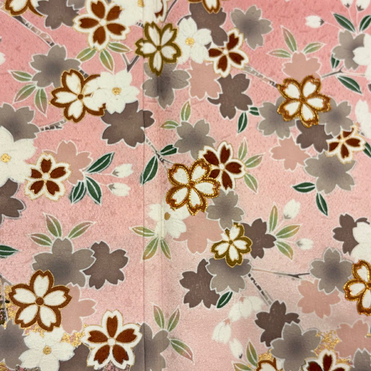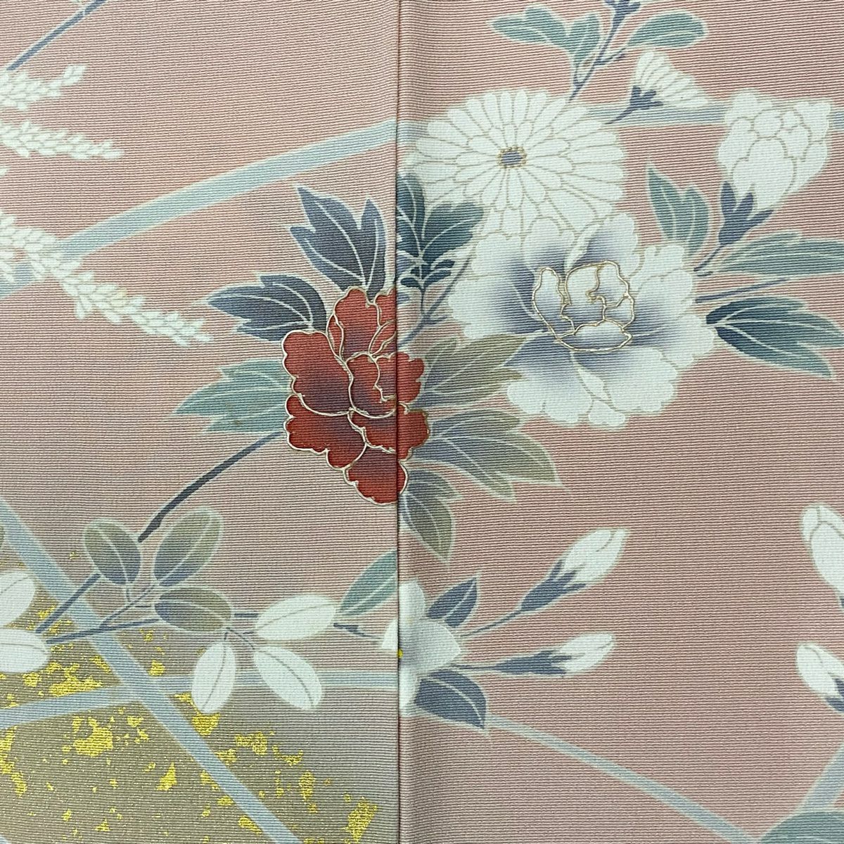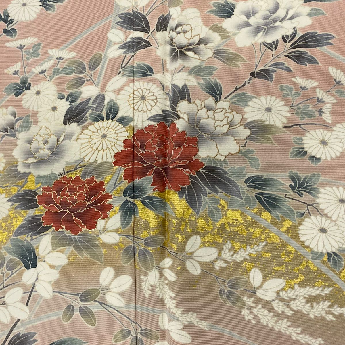 【在庫一掃】 付下げ 身丈159cm 裄丈64.5cm M 袷 秋草 扇面 金糸 金銀彩 ピンク 正絹 秀品