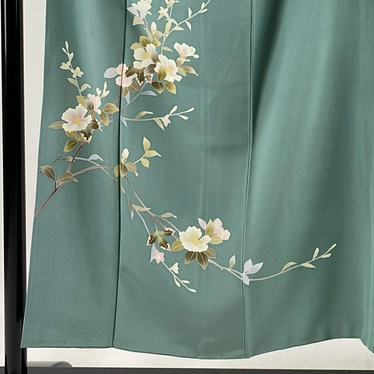 【美品】 振袖 身丈173cm 裄丈69cm L 袷 袋帯フルセット 花束 花弁 刺繍 ぼかし 深緑 正絹 秀品