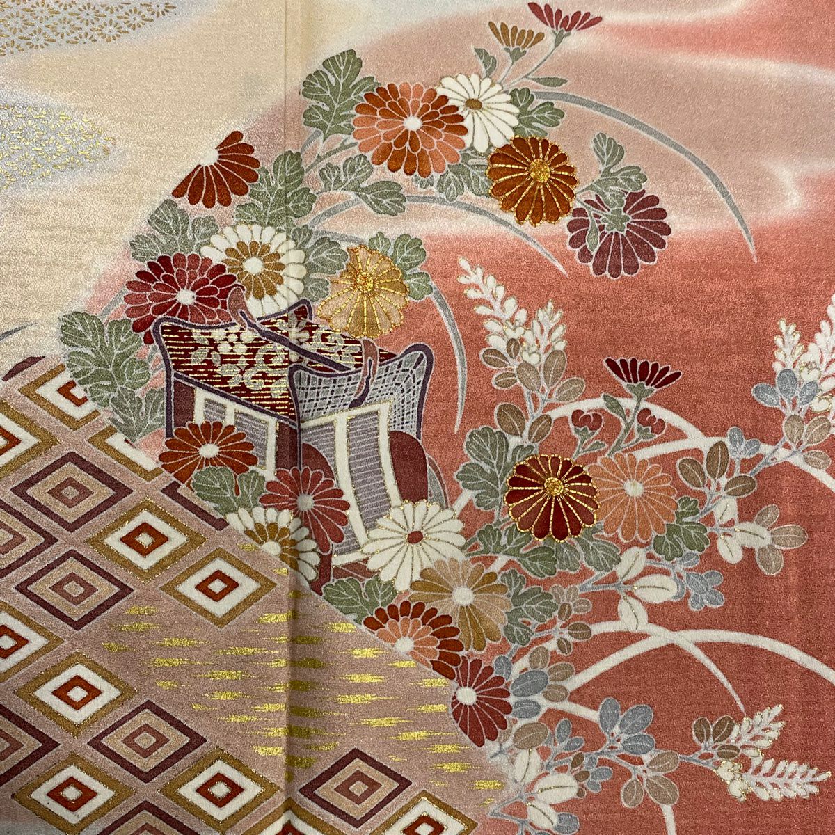 【在庫一掃】 訪問着 身丈154.5cm 裄丈62cm S 袷 菊 笛 金糸 ぼかし オレンジ 正絹 秀品