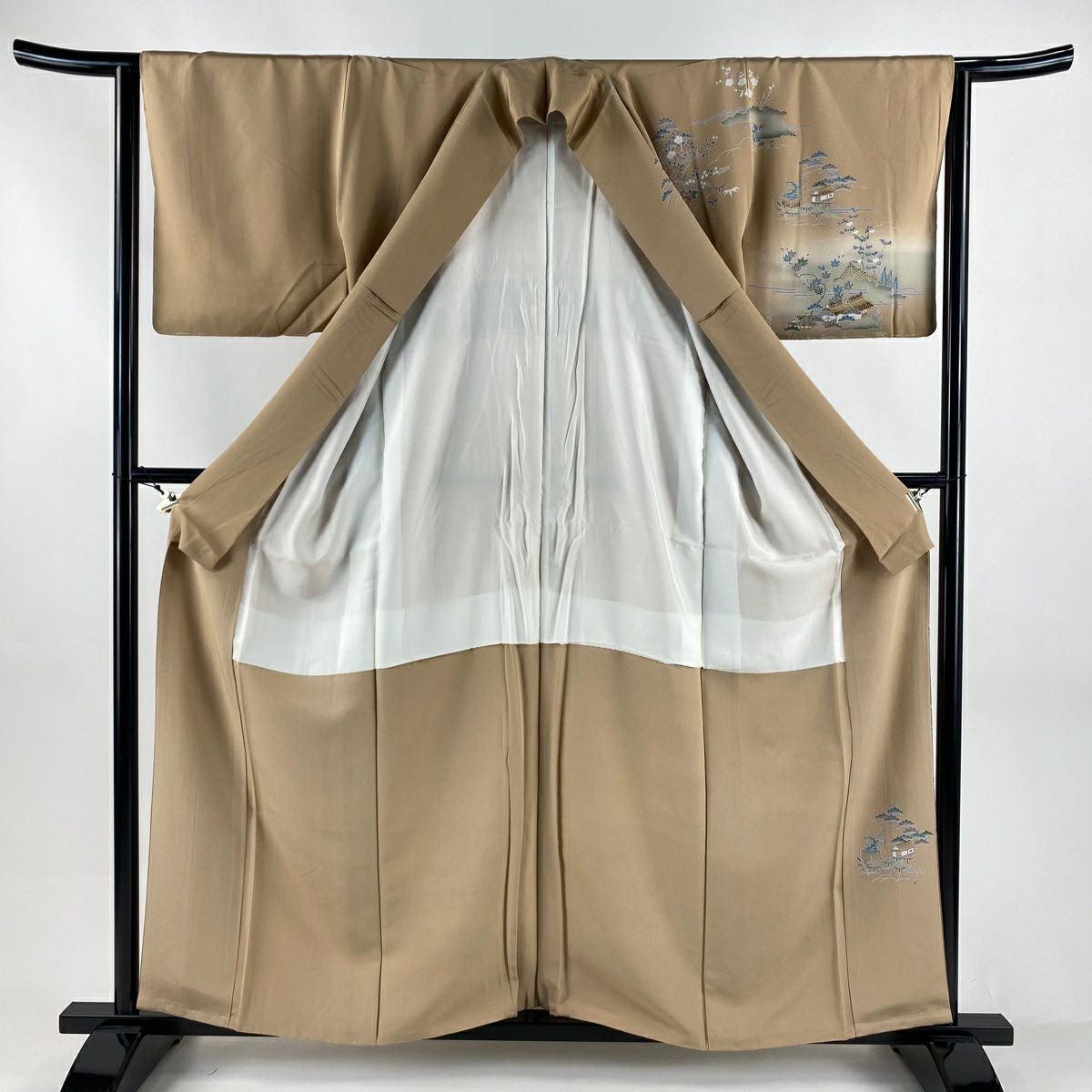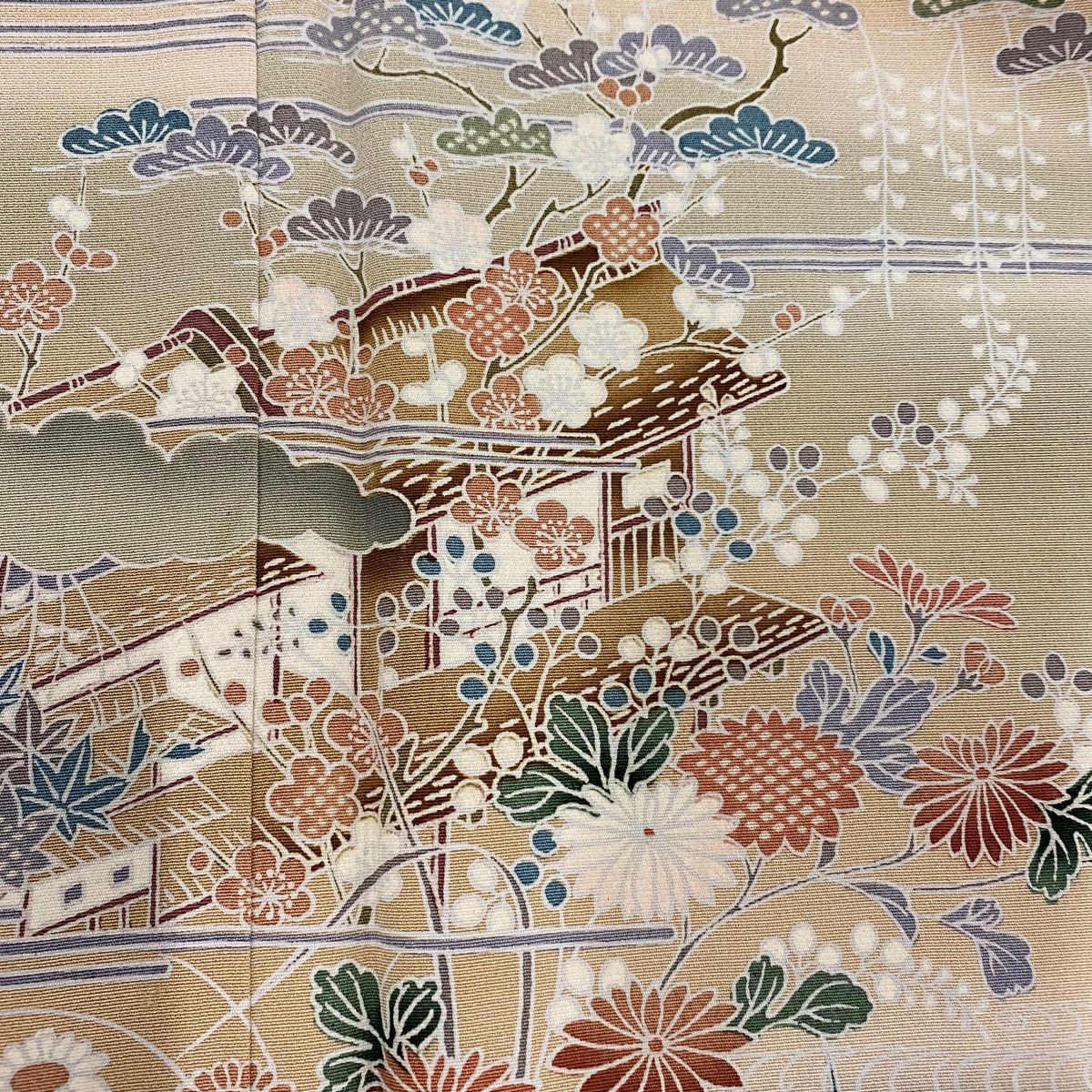【在庫一掃】 訪問着 身丈167cm 裄丈66cm M 袷 家屋 松竹梅 刺繍 金彩 薄ピンク 正絹 秀品