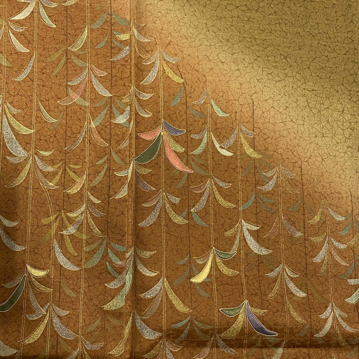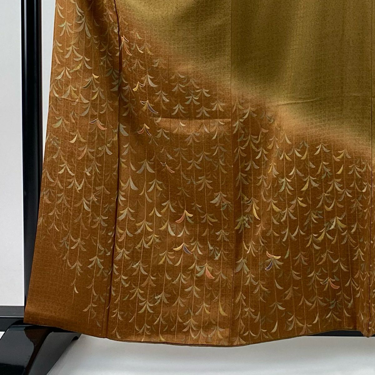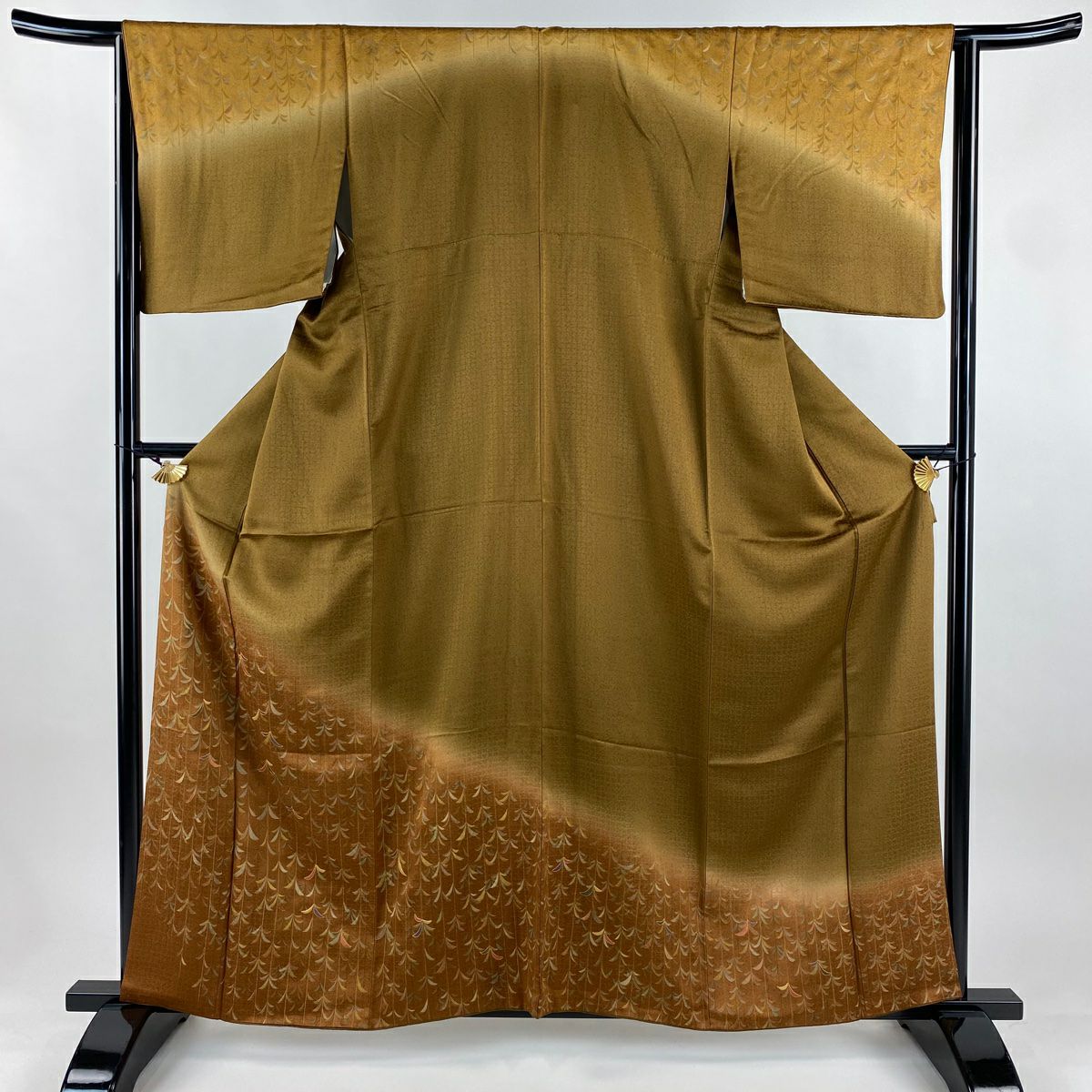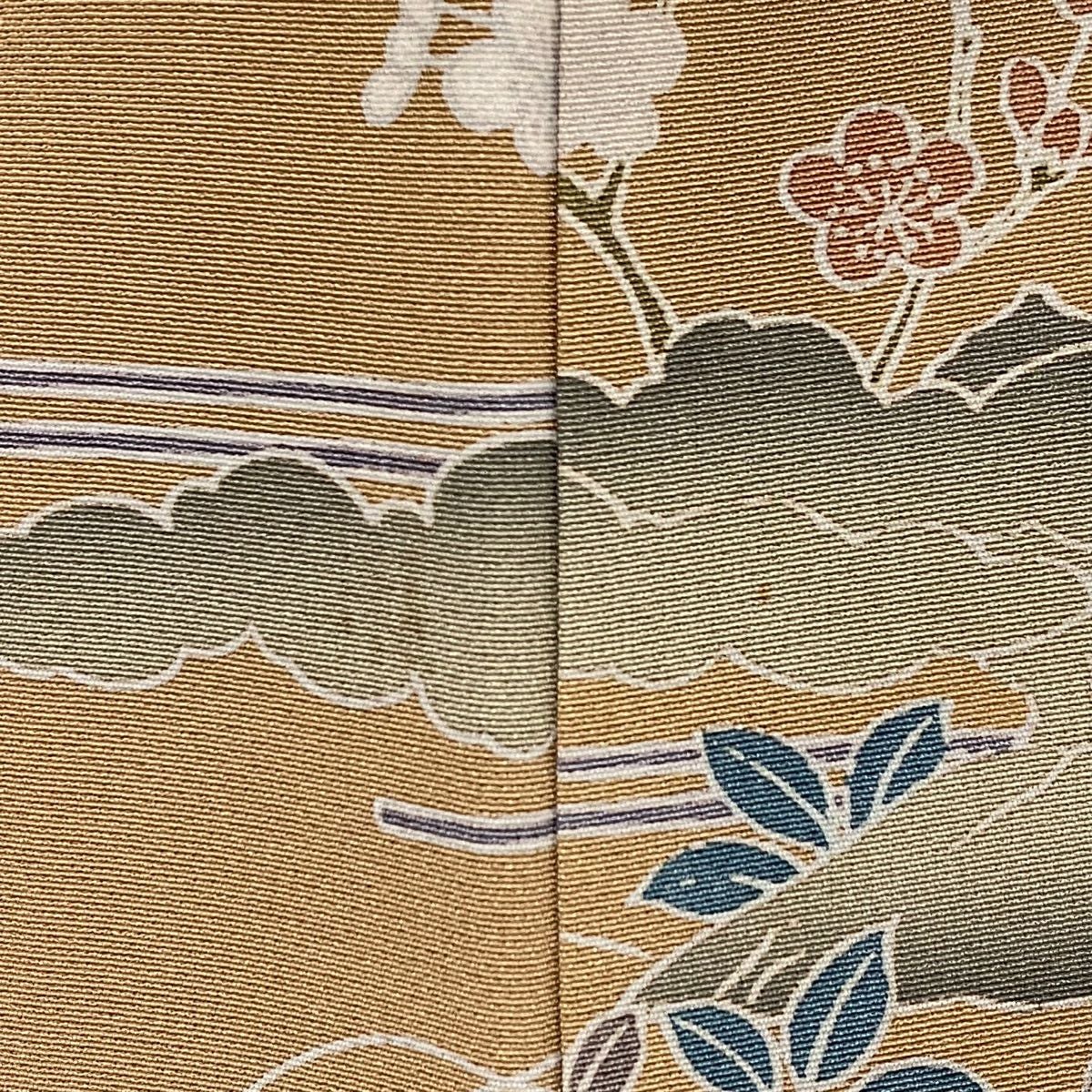 【在庫一掃】 付下げ 身丈165cm 裄丈66cm M 袷 草花 霞 ぼかし 染め分け 山吹茶色 正絹 秀品