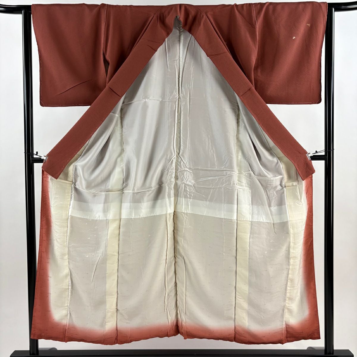 【在庫一掃】 付下げ 身丈164cm 裄丈64.5cm M 袷 樹木 霞 ぼかし 薄小豆 正絹 秀品 一つ紋