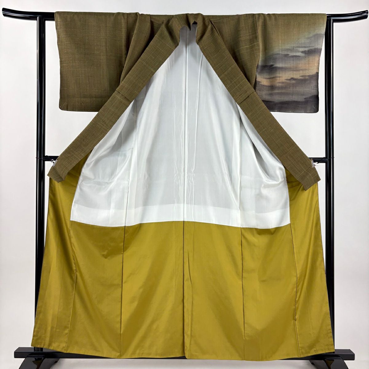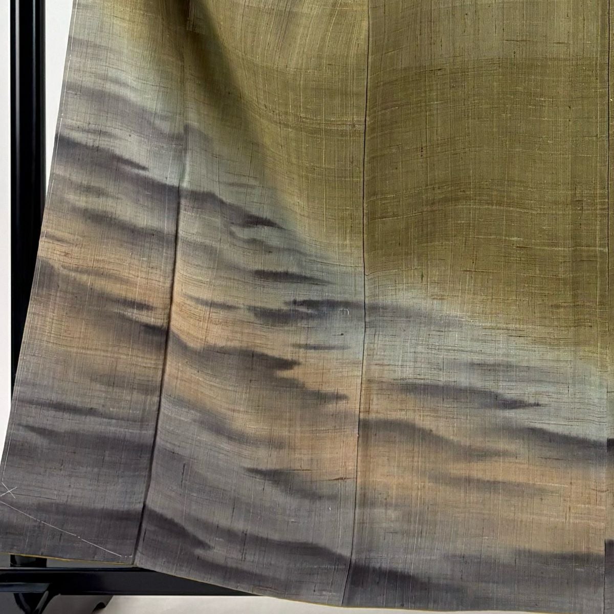 【在庫一掃】 付下げ 身丈157cm 裄丈63.5cm S 袷 霞 鮫 ぼかし よもぎ色 正絹 秀品 一つ紋