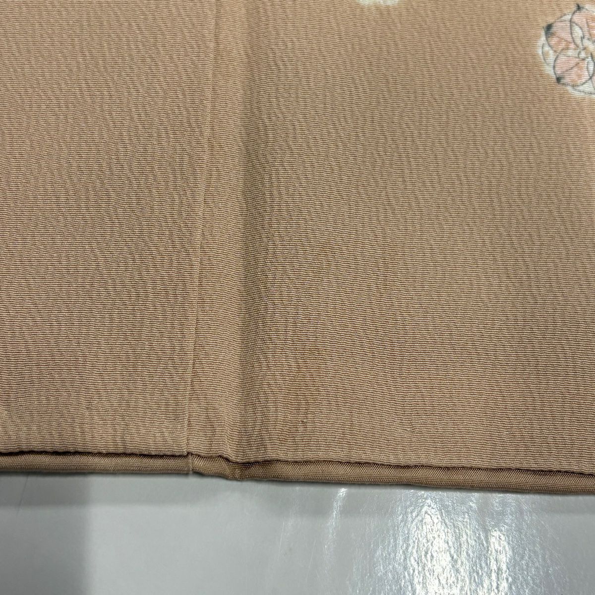 【美品】 付下げ 身丈161cm 裄丈65cm M 袷 草花 道長取り 絞り ピンクベージュ 正絹 秀品