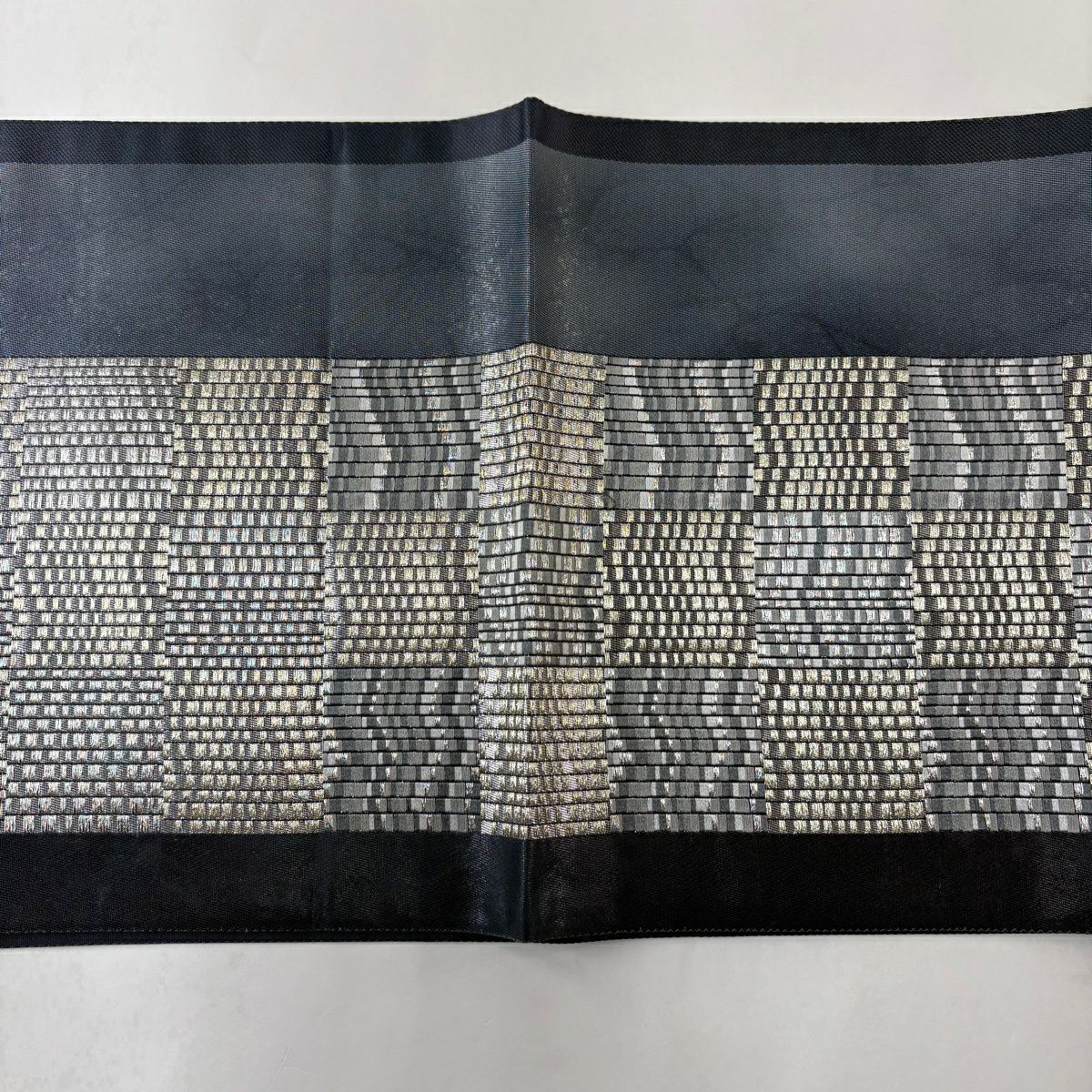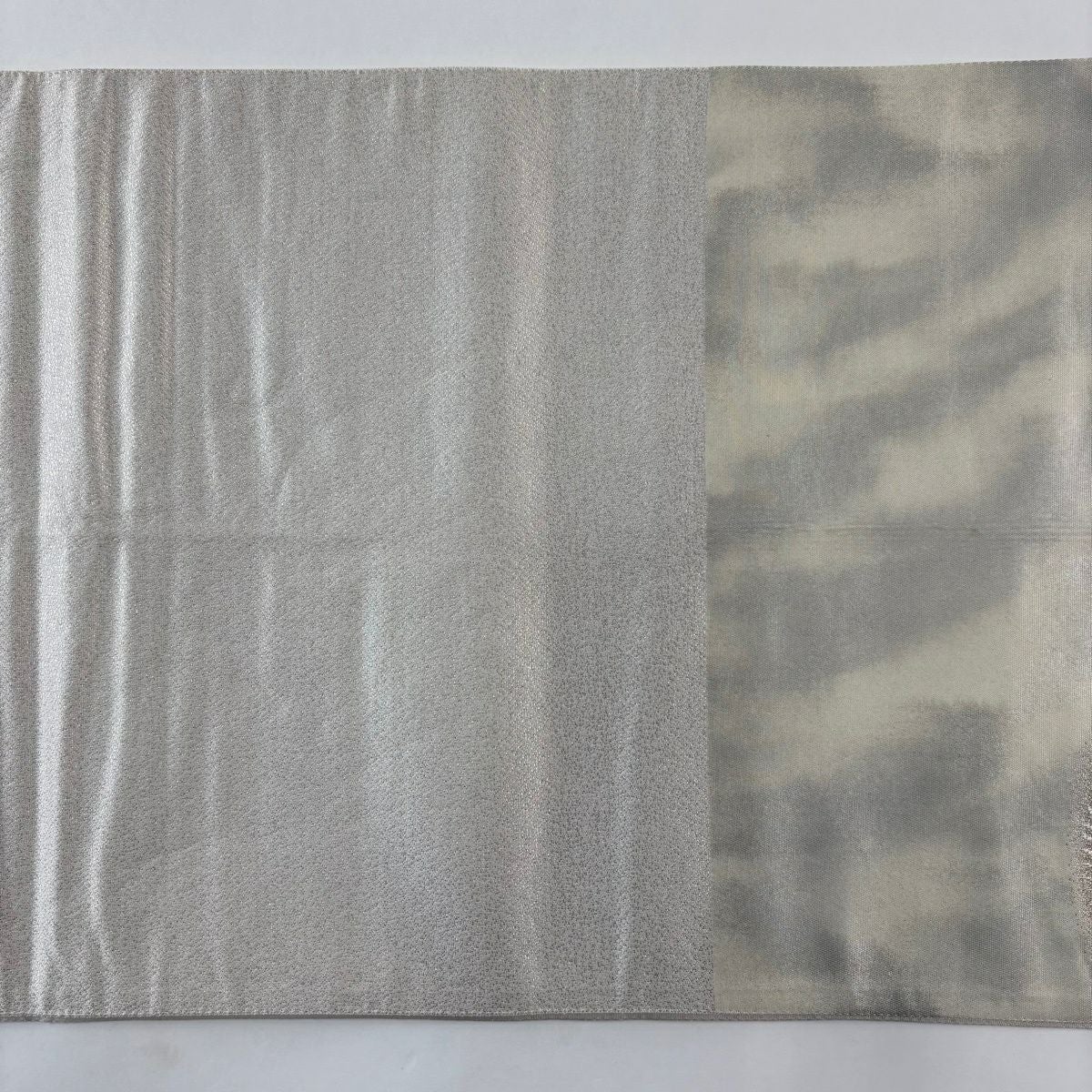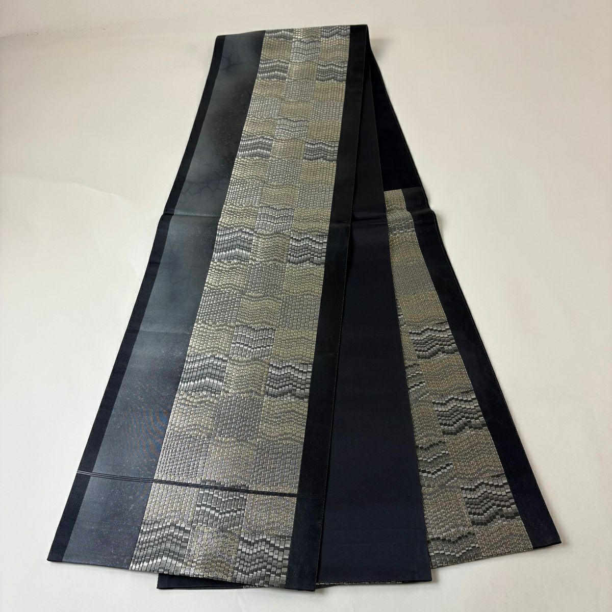 【美品】 袋帯 秀品 変わり市松 銀糸 箔 灰色 六通 正絹
