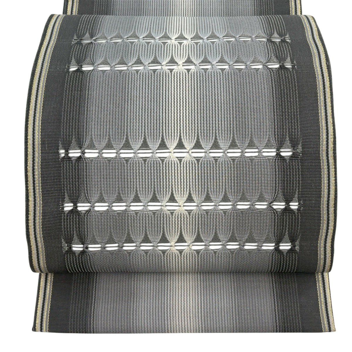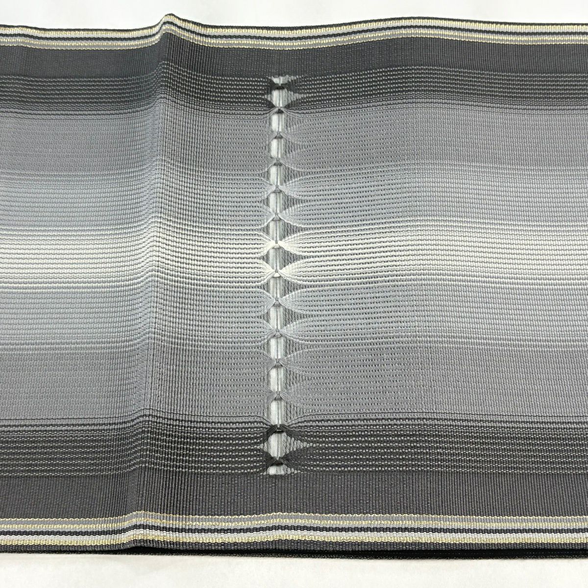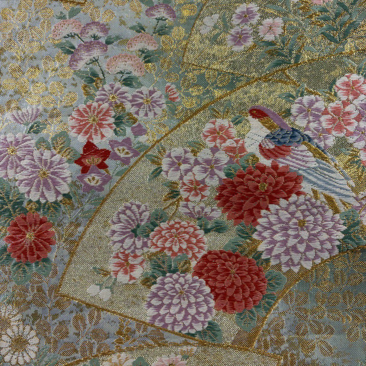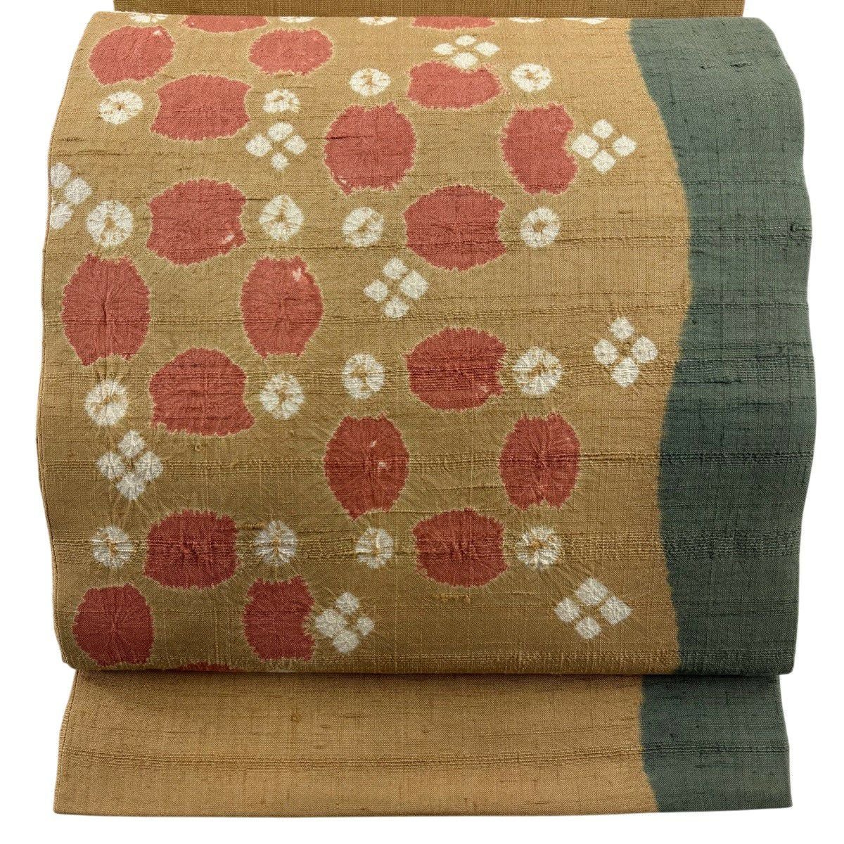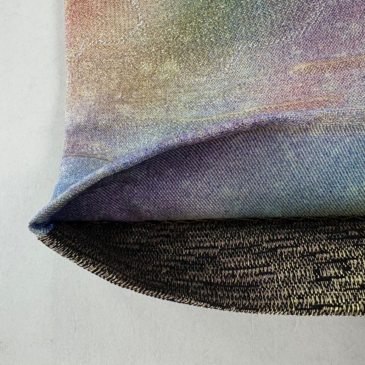 袋帯 秀品 花びら 幾何学模様 箔 ぼかし 灰緑 全通 正絹