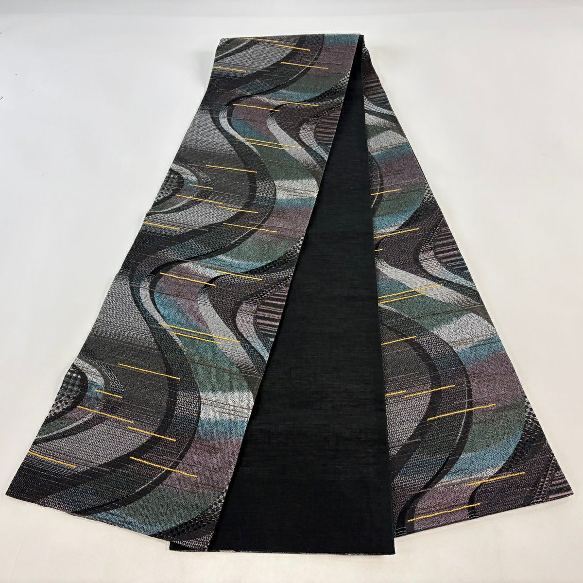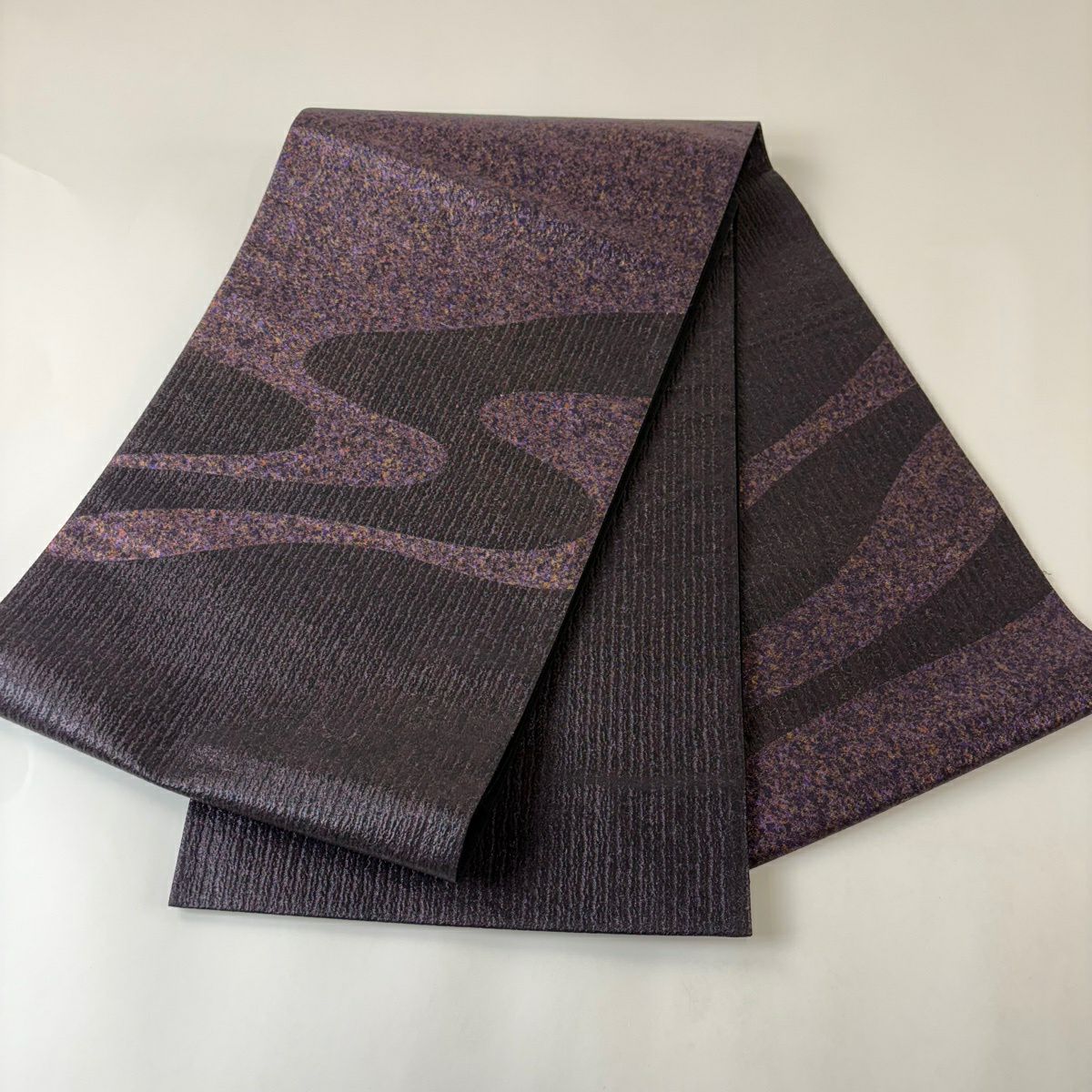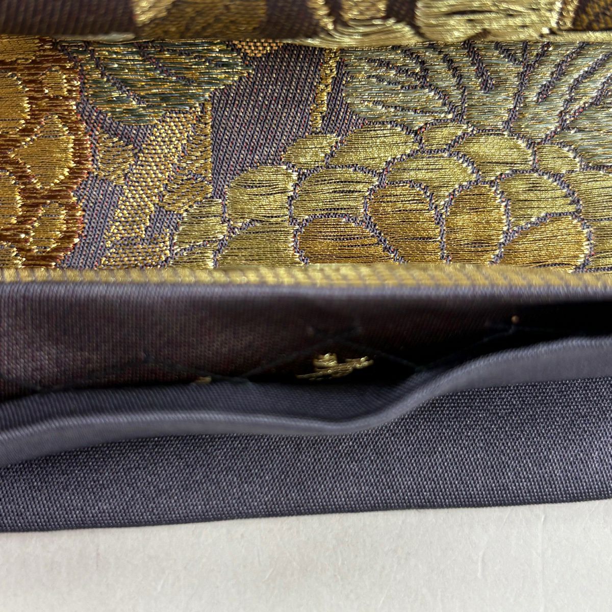 【美品】 袋帯 秀品 草花 流水 金糸 箔 灰紫 六通 正絹