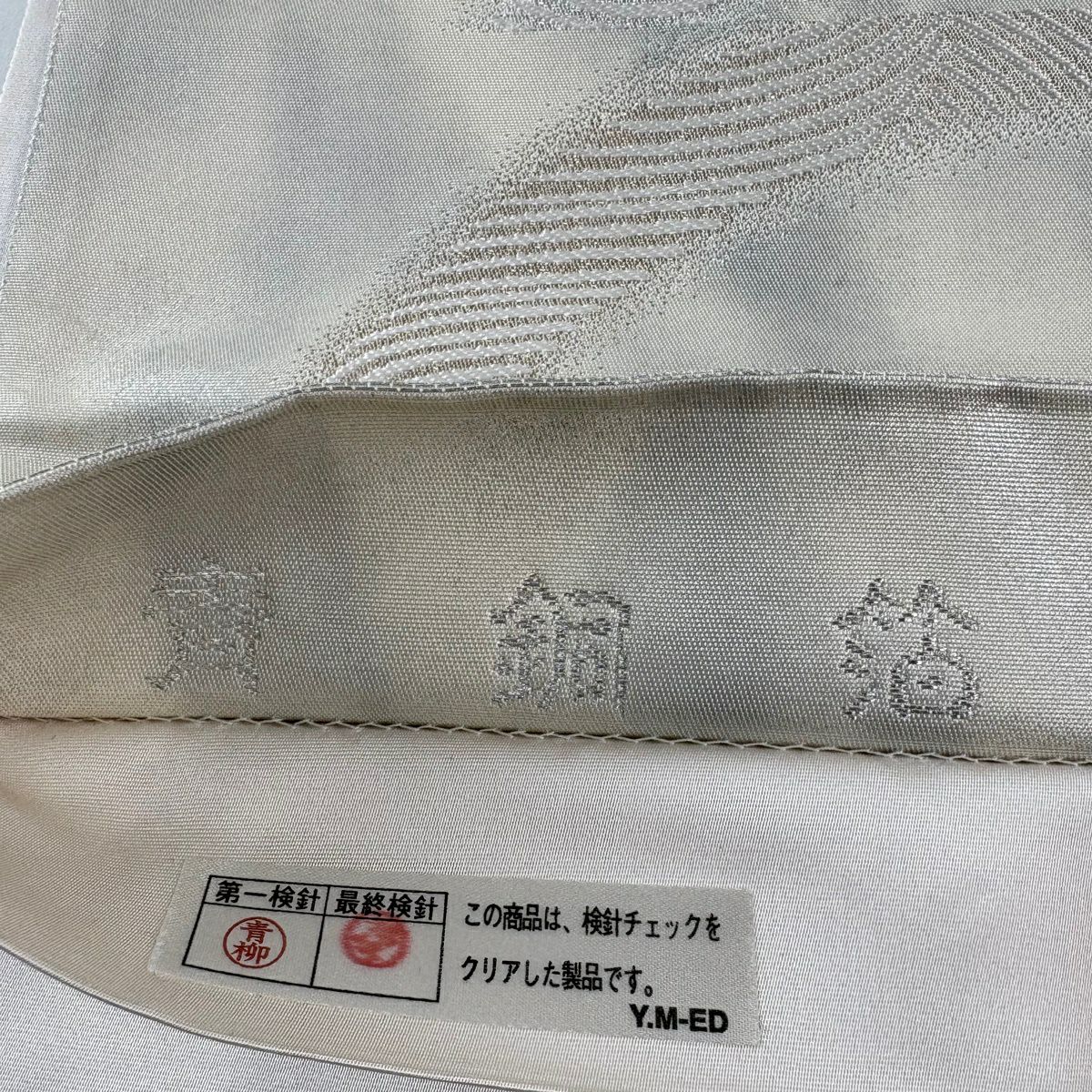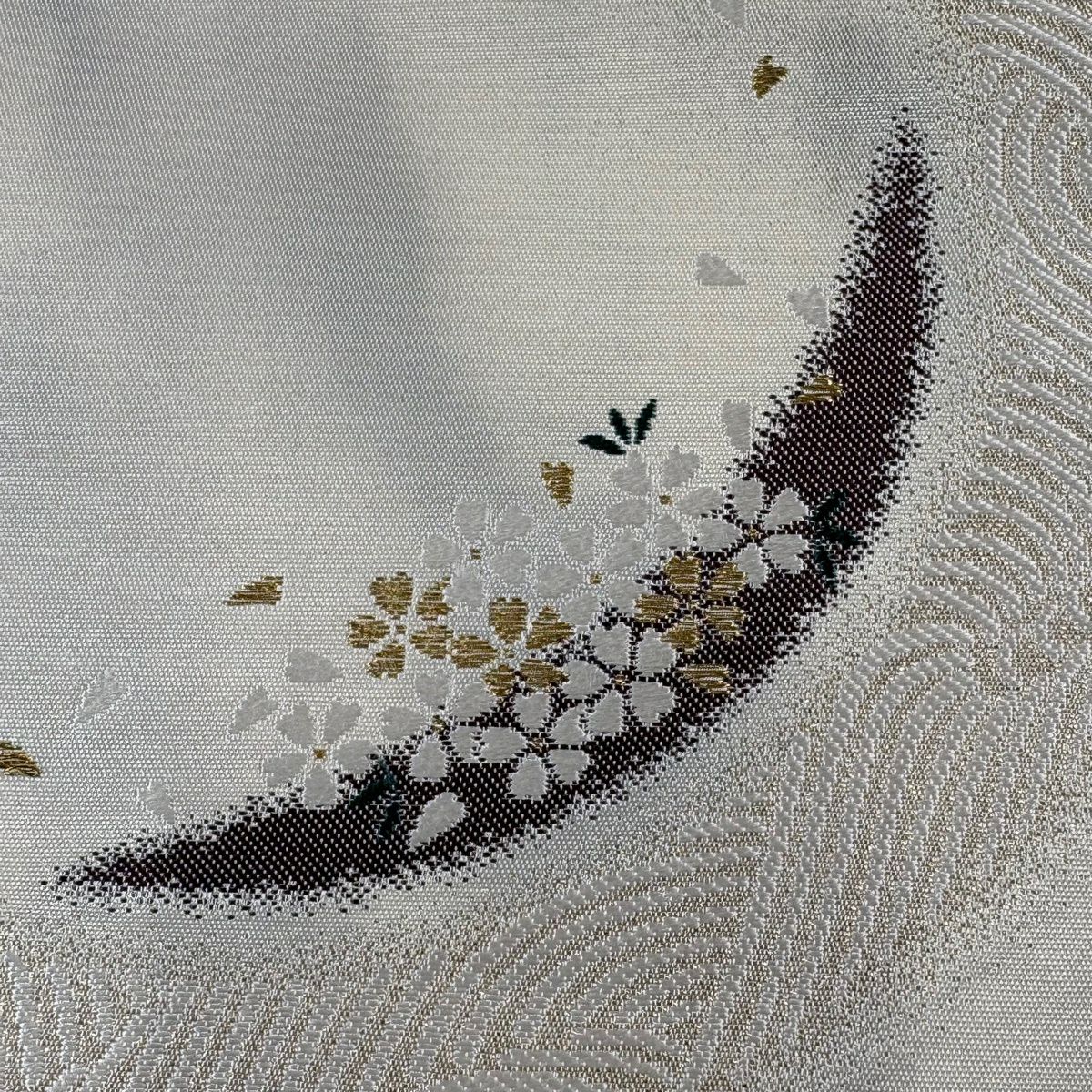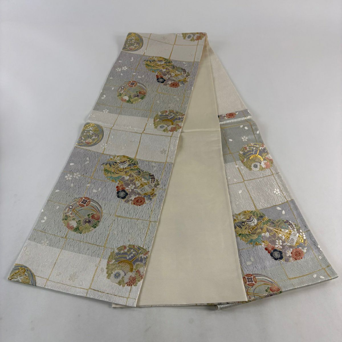 【美品】 袋帯 秀品 笠松 桜 金銀糸 箔 銀色 全通 正絹