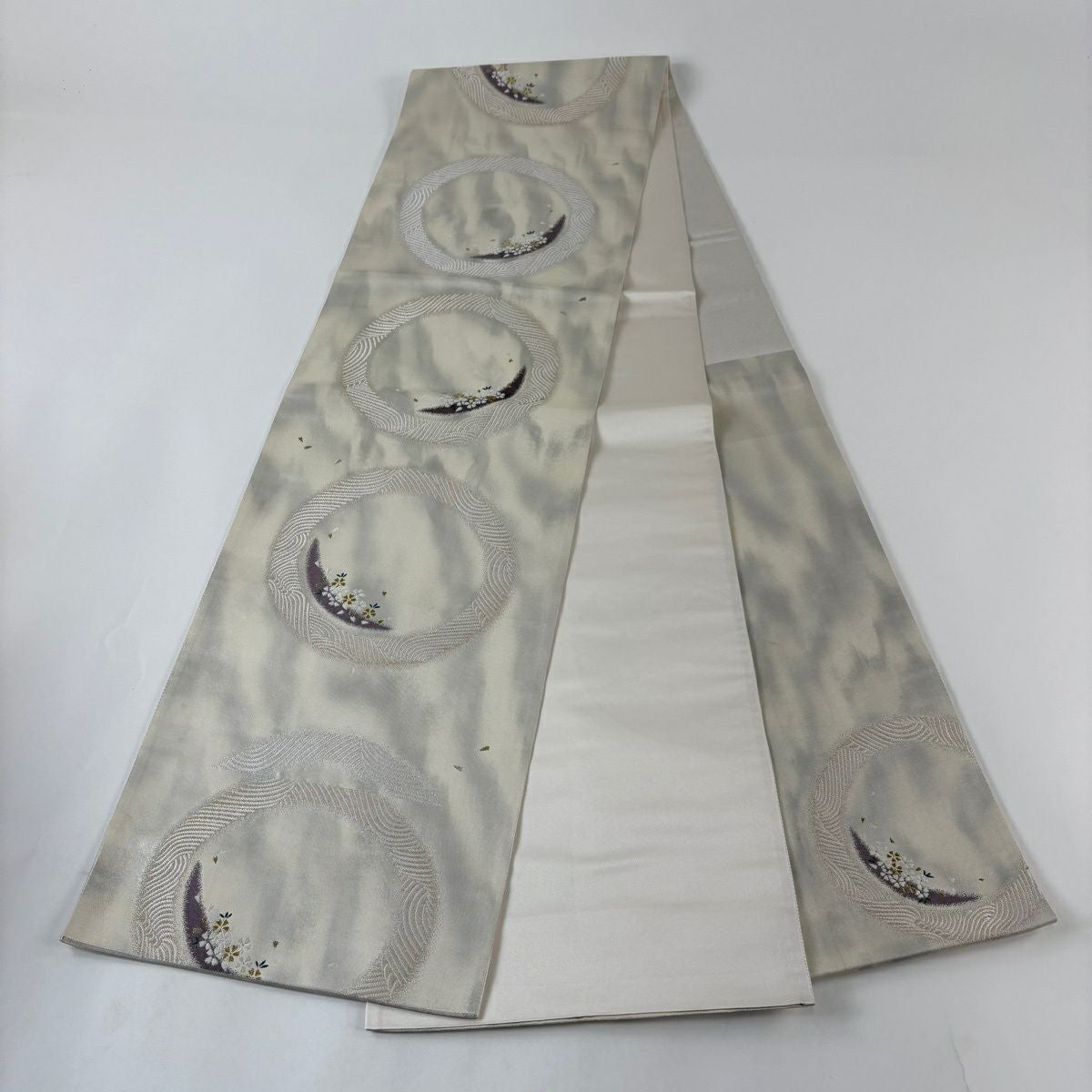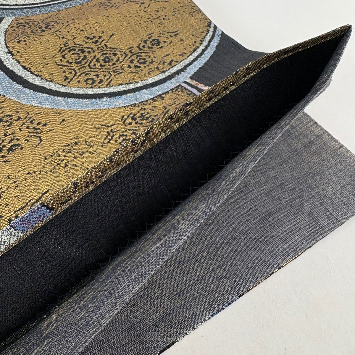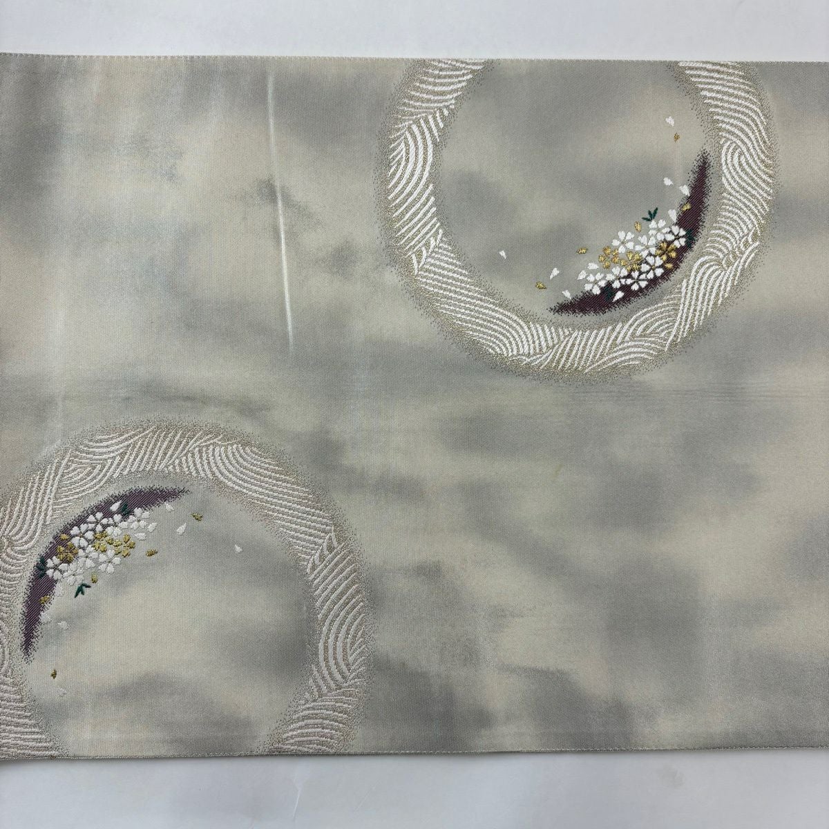 【美品】 袋帯 秀品 萩 丸文 金銀糸 箔 灰色 六通 正絹