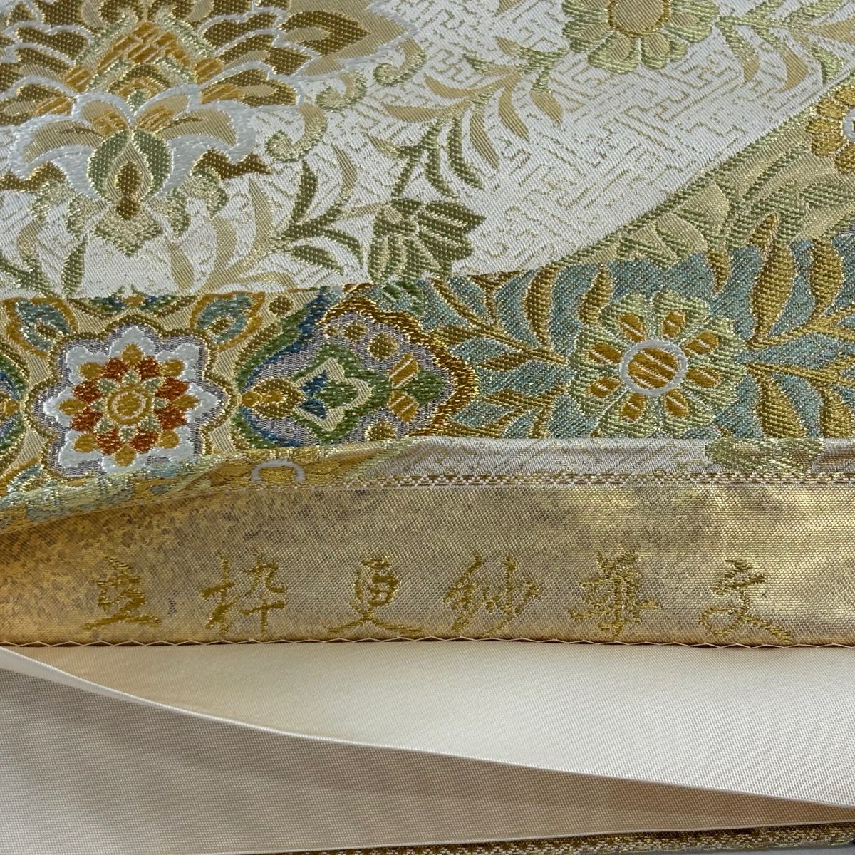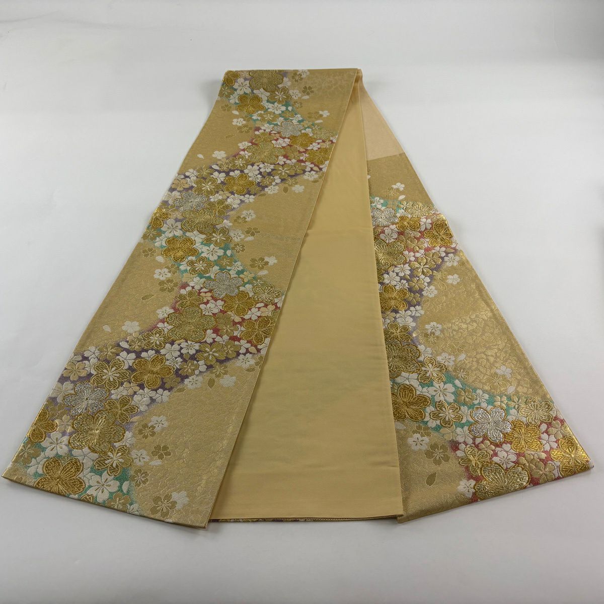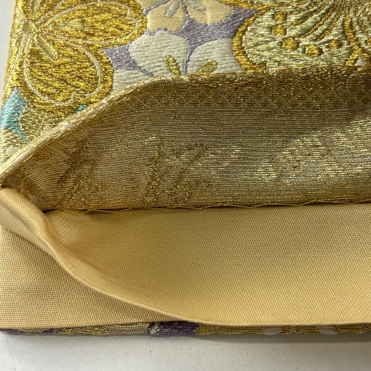 【美品】 袋帯 秀品 華文 草花 金糸 唐織 金色 六通 正絹