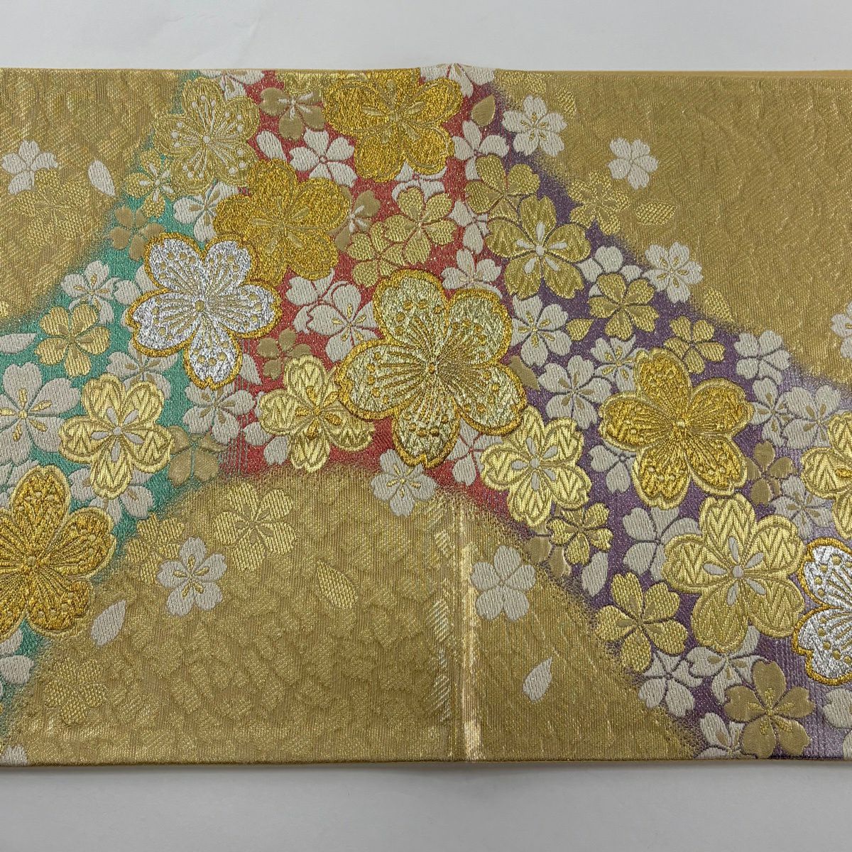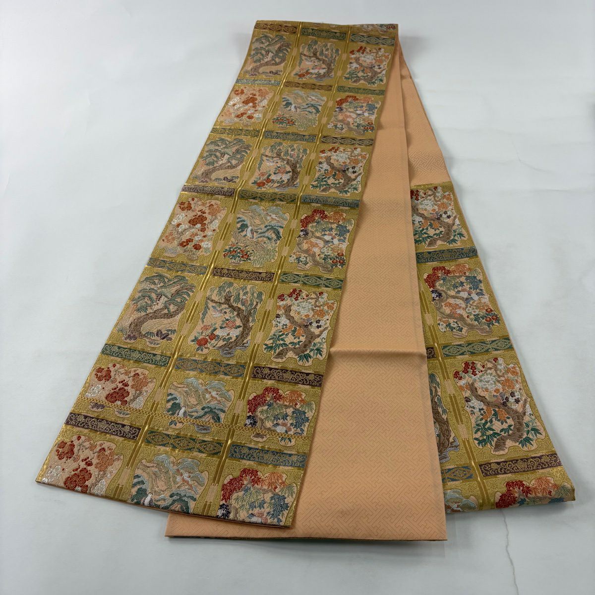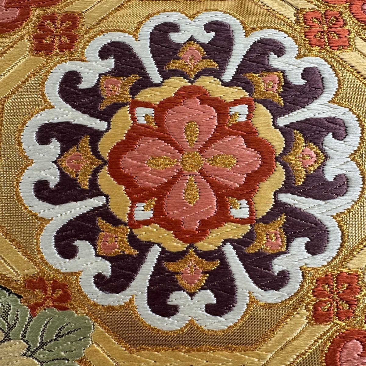【美品】 袋帯 秀品 華文 草花 金糸 唐織 金色 六通 正絹