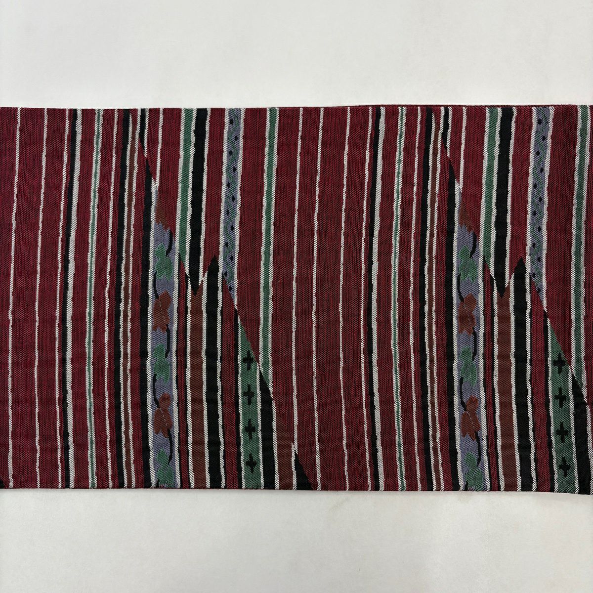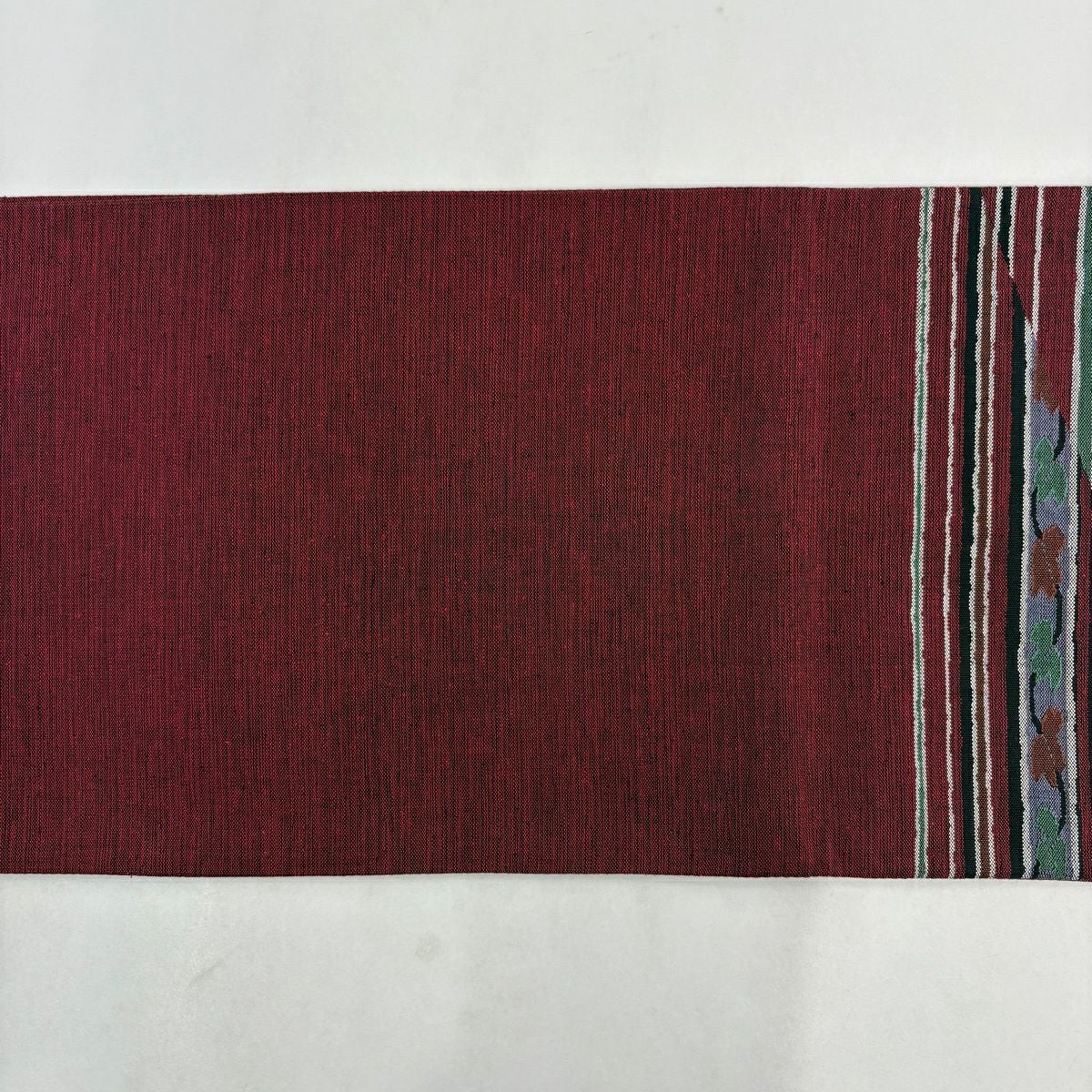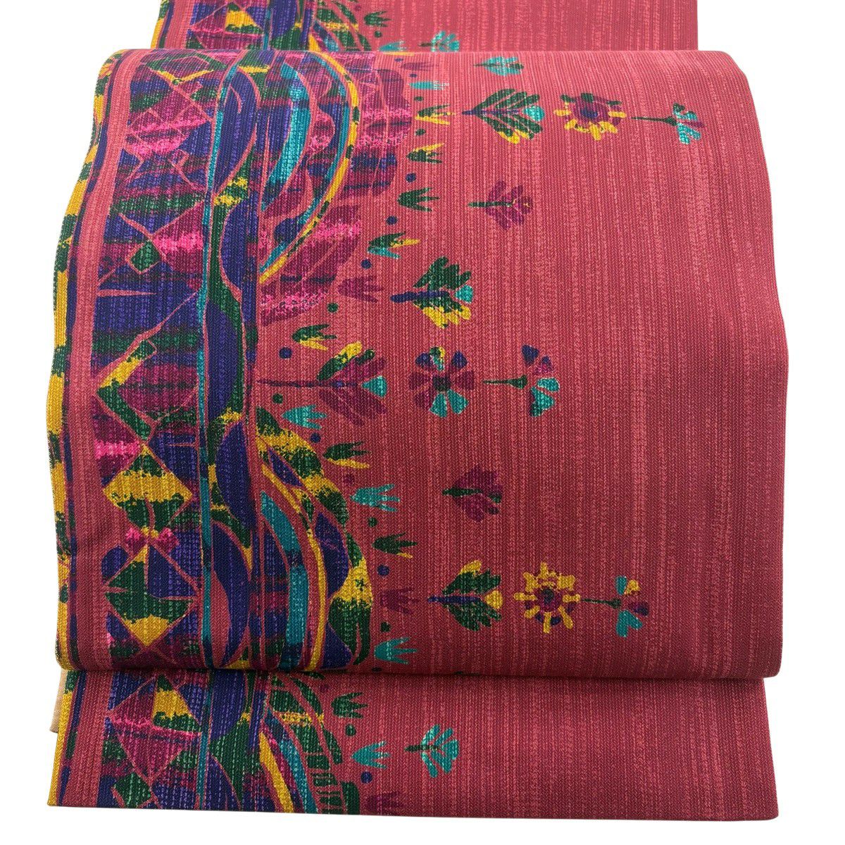 【美品】 袋名古屋帯 秀品 草花 幾何学模様 えんじ色 正絹