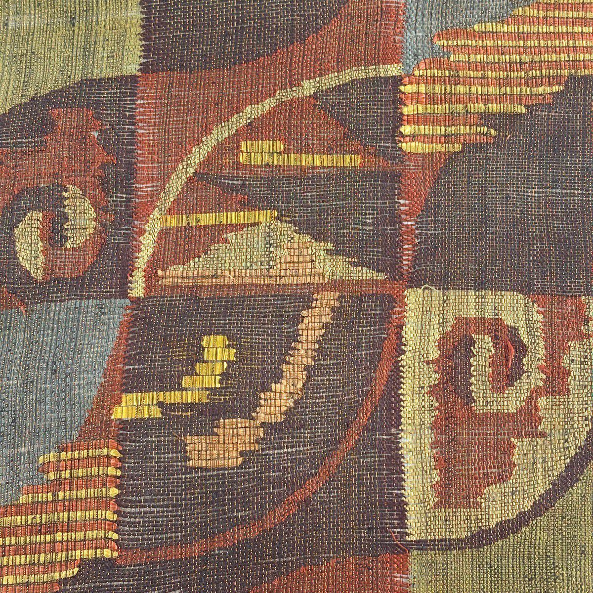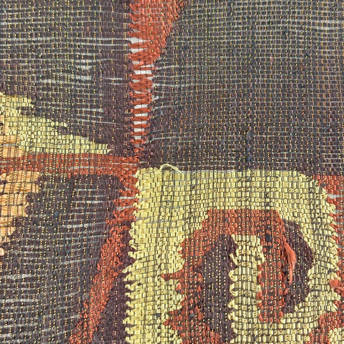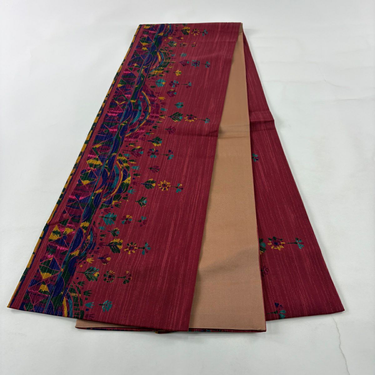 【美品】 袋名古屋帯 秀品 草花 幾何学模様 えんじ色 正絹